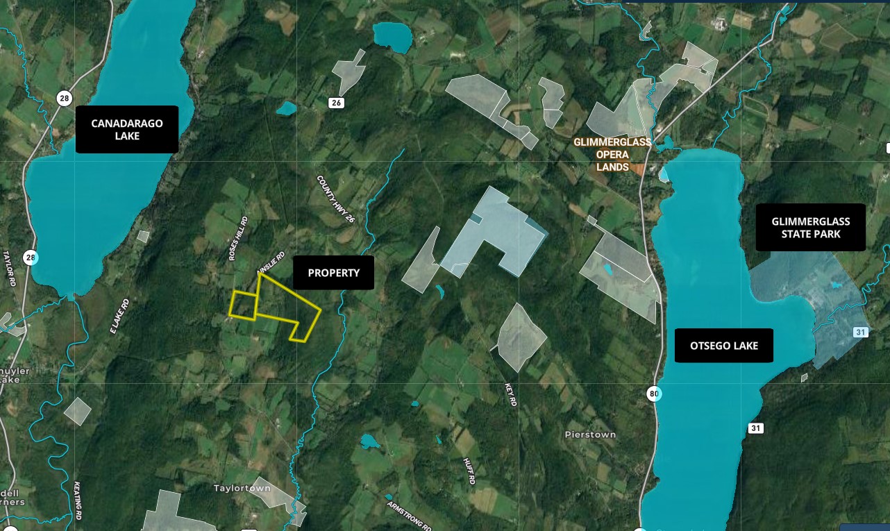 acres of pristine water, or 6.5 miles to the public boat launch on Canadarago Lake, a 2000-acre lake and the headwaters of the Susquehanna River, with both lakes featuring many species of freshwater fish including lake trout, walleye, and perch as the most popular. The Glimmerglass State Park is only 12 miles away and provides 593 acres of natural woodlands, hiking, camping, and a beautiful public beach with picnic grounds. While this property is in a beautiful country setting, amenities, shopping, restaurants, and entertainment are all available within a short drive. The town of Richfield Springs is 5 miles, while Cooperstown is only 9 miles away to the southeast. Cooperstown is world-renowned for its cultural and recreational attractions including the National Baseball Hall of Fame, Fenimore Art Museum, Farmers Museum, Brewery Ommegang, and Glimmerglass Theatre. Oneonta is 31 miles, Utica is 32 miles and Albany is 1.5 hours. NYC/George Washington Bridge is just 3.5 hours from this property.