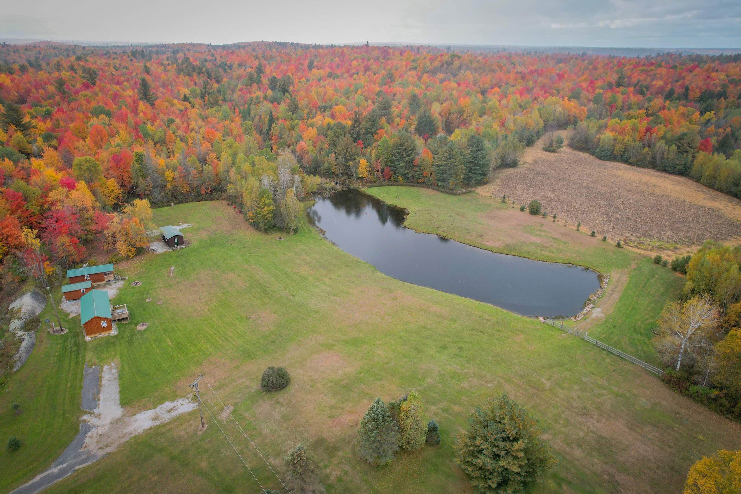 Rewriting the story of the Northwoods outdoor experience this property delivers a thrilling narrative filled with bucks, birds, bass, and bears. A true sanctuary of the north, the contemporary camp features two custom cabins and a man cave in striking view of a large, well-stocked mirror-like pond. Purpose-built to unite the traditional “going to camp” mantra without sacrificing the comforts of home, each cabin features full electricity, water, and septic with its own bathroom, bedroom, kitchen, and living area custom designed to provide exceptional comfort and camaraderie while sharing the rituals of hunting the game-rich land with family and friends. The camp sits within access to electricity and cell phone coverage yet provides relief from the rigors of the 21st century just a short walk from the cabin’s doors. Etched among the shifting landscape are a number of pre-established food plot locations all carefully prepared and custom planted in proven blends of greens and grains in anticipation of the 2022 season opener. Deer, bears, and turkeys frequently tread the open spaces taking advantage of the abundant food provided by the series of timber breaks nestled among the service of the surrounding thick cover. Like a timeless ritual, this property’s population of quality bucks and bears reveal themselves each fall, while providing shot opportunities to the skilled and patient. A well-established forest trail system provides excellent access to all reaches of the property while creating additional openings and shooting opportunities among the sometimes jungle-thick wooded expanse or hard and softwood trees. Enrolled (in 2021) in the NYS 480a forestry management program the property includes a 10-year management plan to help further enhance the quantity and quality of the property’s forest lands while also providing a substantial tax reduction as an added benefit to program participation. A true turn-key opportunity the sale includes the all deer stands, blinds and a series of planting equipment to help the new owners hit the ground running this year while continuing to manage the property with adequate equipment in the future. Ideally located close to the recreational paradise of NY’s Adirondack and Thousand Islands regions this property is uniquely settled between St Lawrence and the mountains making it the ideal retreat for enthusiasts of all types. Additional area highlights include access to local snowmobile and ATV trails as well as the thousands of acres of public lands provided by the California Road State Forest, Cold Spring Brook State Forest, St. Lawrence Forest Preserve, and Toothaker Creek State Forest. Additional unnamed NYS Reforestation lands also dot the surrounding landscape with a nearly 50-acre landlocked parcel that adjoins this property to help expand its already generous footprint. Don’t miss this opportunity to enjoy the true spirit of camp up north and write memories that will last a lifetime. Please no drive-bys. Per the seller’s requirements, all interested parties must show prequalification or proof of funds to schedule a showing and all showings must be accompanied by a real estate agent. Contact us today to schedule your own private showing of this enchanting inholding.