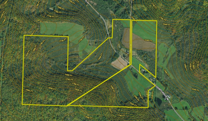 Build a home or enjoy farming on land with beautiful valley views that stretch for miles. Deer, bear and turkey abound here with timber, creek bottoms and fields. This old farm is waiting for someone to restore it to its original charm. The land is a wonderful blend of rolling hills and elevation that allow building a new home or multiple homes while still maintaining a farming lifestyle with over 165 acres of tillable ground and pasture. There is an old farmhouse on the corner intersection that needs to be removed and there is a large barn that needs improvements. However, there is a power pole with a nitrogen lamp and electricity in the yard to start your re-build. County Route 99 is a quiet country road that is just minutes from the edge of the town of Woodhull and just a few miles further to Addison, NY. The south side of CR 99 is a large parcel that has approximately 122 acres of timber that, in a few years, will have some marketable hardwoods ready. This side of the road is where the elevation is and we noted several locations where a spectacular building location could be located and enjoy the vista scenery. Pastures, hayfields and a creek bottom complete the make-up of the south side, and a dozen deer were noted on our photo tour. The north side of the road currently has corn in production and the northeast corner field would additionally be another building location with southern exposure for more valley views. There are no designated wetlands on the property. However, a creek does meander through the property and runs with a good flow for ample water sources for livestock. With over four thousand feet of road frontage, there is ample access to almost all of the farm from the road, giving you multiple opportunities to develop this property with your own creativity for building lots or merely select the perfect location for your own home. Steuben County is one of Western New York’s prettiest counties, rural and quiet with charm and known for exceptional deer and turkey hunting. Check this farm out; large parcels like this don’t come by very often. Priced well to sell.