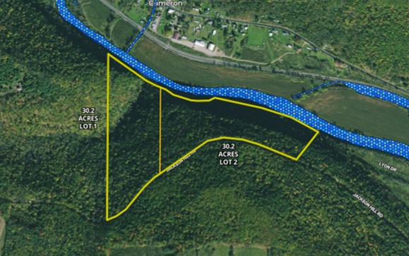 Looking for a place to build a cabin or enjoy deer season on a hilltop tract of land? This one may be it. Located in well-known Steuben County, the number one deer county in NY, big buck roams these ridges and hilltops looking for does and hiding in the hollows between them. Unique to this property is over 2000 feet of river frontage on the Canisteo River opposite the town of Cameron. The deer sign is abundant here, with an old logging trail defining lazy travel corridors east and west across the face of the bluff that forces deer to funnel in strategic pinch points for stand locations. The are several logging road expansion points that are convenient for a hunting or recreational cabin location, and from these same trails, easy access to navigate to your tree stands. There is a sister lot next door, which is also 30.2 acres; joining this property that may be an option to expand your opportunity and footprint to over 60 acres. Priced well to sell, these lots are a great location to drag home a big buck and enjoy a quiet mountain retreat for all the other months of the year. Check it out. -