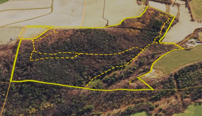 We are pleased to present a Steuben County hunting property with trails, plots, timber and topography. Deer and turkey hunters will enjoy the variety of habitat and over two miles of ATV trails providing access throughout the property. This property is accessed with ta deeded right of way named Pfitzenmaier road. The road leads to the base of a gently sloped west side that greets you with a long food plot running parallel to the hillside. Apple trees and hidden corners make this a perfect opportunity and location to attract deer and turkey. Mixed conifers and hardwoods make up the construction of the woods providing a variety of mast food and bedding cover. A small creek meanders through the bottom of the parcel, giving a water source and early succession cover to all wildlife here. There is a reported $40,000+/- of timber value on the property, and was observed as already identified and marked. The crown of the hill is planted in ag fields, which enhances the hunting opportunity and attractiveness to deer. The Lower fields are also planted in ag fields giving food choices for wild game. The far corner of the lower field would be a great pace for a hunting cabin or place to park a trailer for deer season and not disturb he property. Check this one out. Priced well to sell in a prime area of Steuben county. ADDITIONAL INFORMATION: Timber rights convey, Timber value @ $40,000+/-, Deer hunting, Turkey Hunting, ATV trails, Pond, Food plots, Cabin locations, Electric at the road. Taxes $2508 (2023), 1.29 miles to Howard, NY, 8.4 miles to Bath , NY, 7.1 miles to Hornell, NY, 6.4 miles to Canisteo, NY, Sold AS IS.