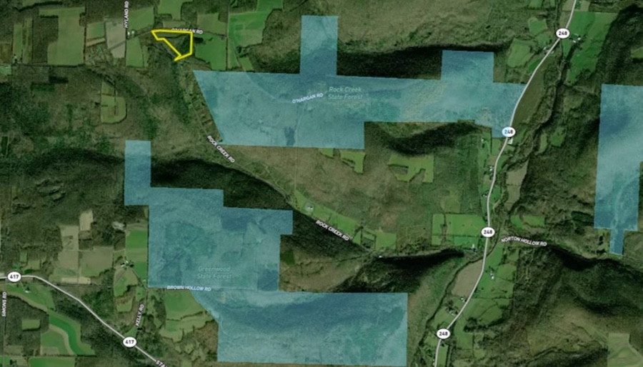 We are pleased to present a beautiful property with two rustic cabins near Greenwood, NY. Located on a quiet road and close to the 704 acres of Rock Creek State Forest in WMU 8, this property has two rustic cabins for weekend getaways or stays during deer camp. The first cabin is the cook cabin and living space, complete with a fridge, wood stove, sink and shower. The second cabin is the bunkhouse, ready for 5 to 6 people, with the restroom just outside, separate from the sleeping quarters. The land presents with a mix of hardwoods (Oaks), some hemlock near the creek and a large field for a mix of habitat that is excellent for deer hunting. A high house platform for a hunting blind is being included with this property. The new owners will enjoy the conveniences of having 20 acres of their own land to manage with fields, food plots, and apple trees while having an expanded hunting opportunity a mere 800 feet away from the state land. From your front door, O'harigan Road courses 1.4 miles through the north parcel of Rock Creek State Forest for easy access. Cleverly created for a great deer and turkey camp, this is an opportunity to own a state land border property. Call us today for a showing. ADDITIONAL INFORMATION: GMOs convey, 1,821 Feet of Road Frontage combined, Electric, Well, Septic, Window A/C, Wood Stove, Fridge, Food plot, Creek, Apple Trees, Deer Hunting, Taxes $965, 6.5 miles to Andover, NY, 3.2 miles to Greenwood, NY, 6.9 miles to Canisteo, NY, 6.4 miles to Rexville, NY. Agents must be present for showings. Sold AS IS.