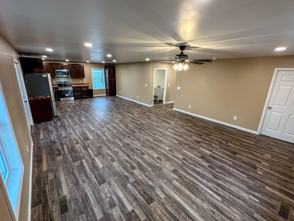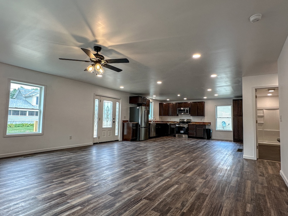 - Open concept kitchen and living area