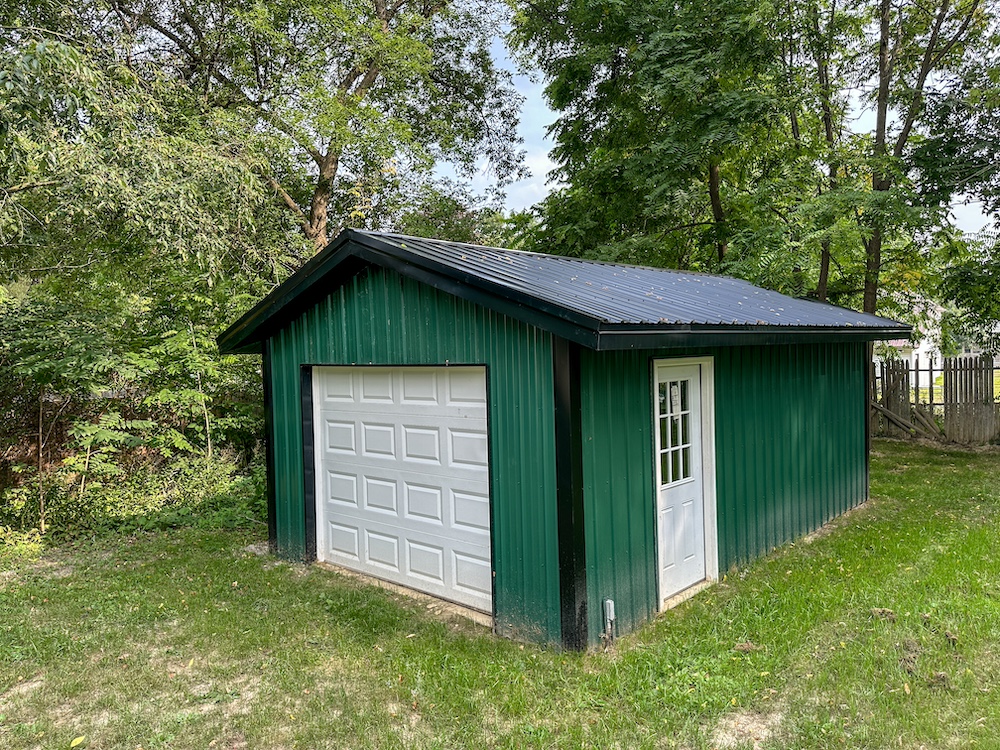 - One-car garage and gravel driveway