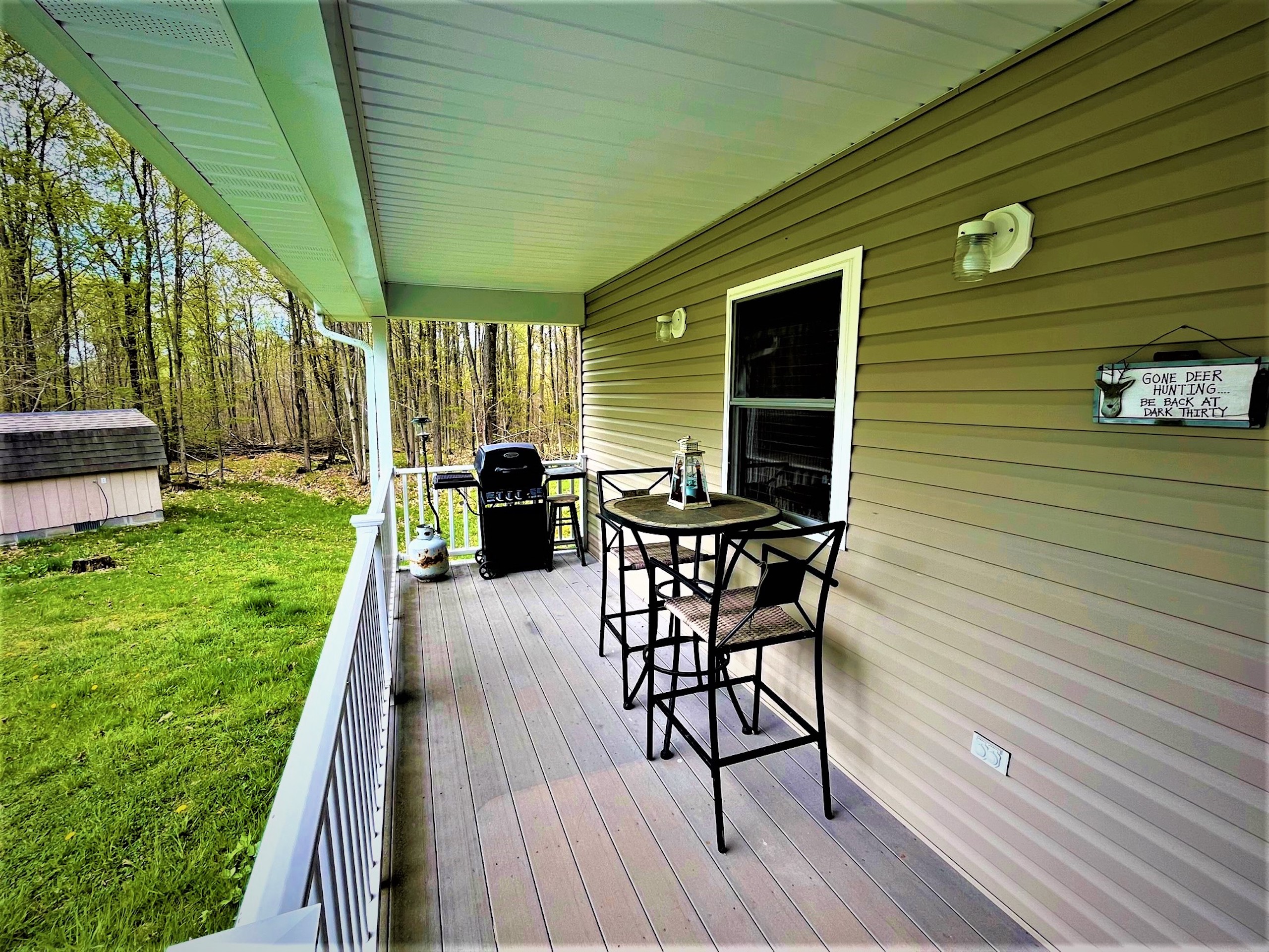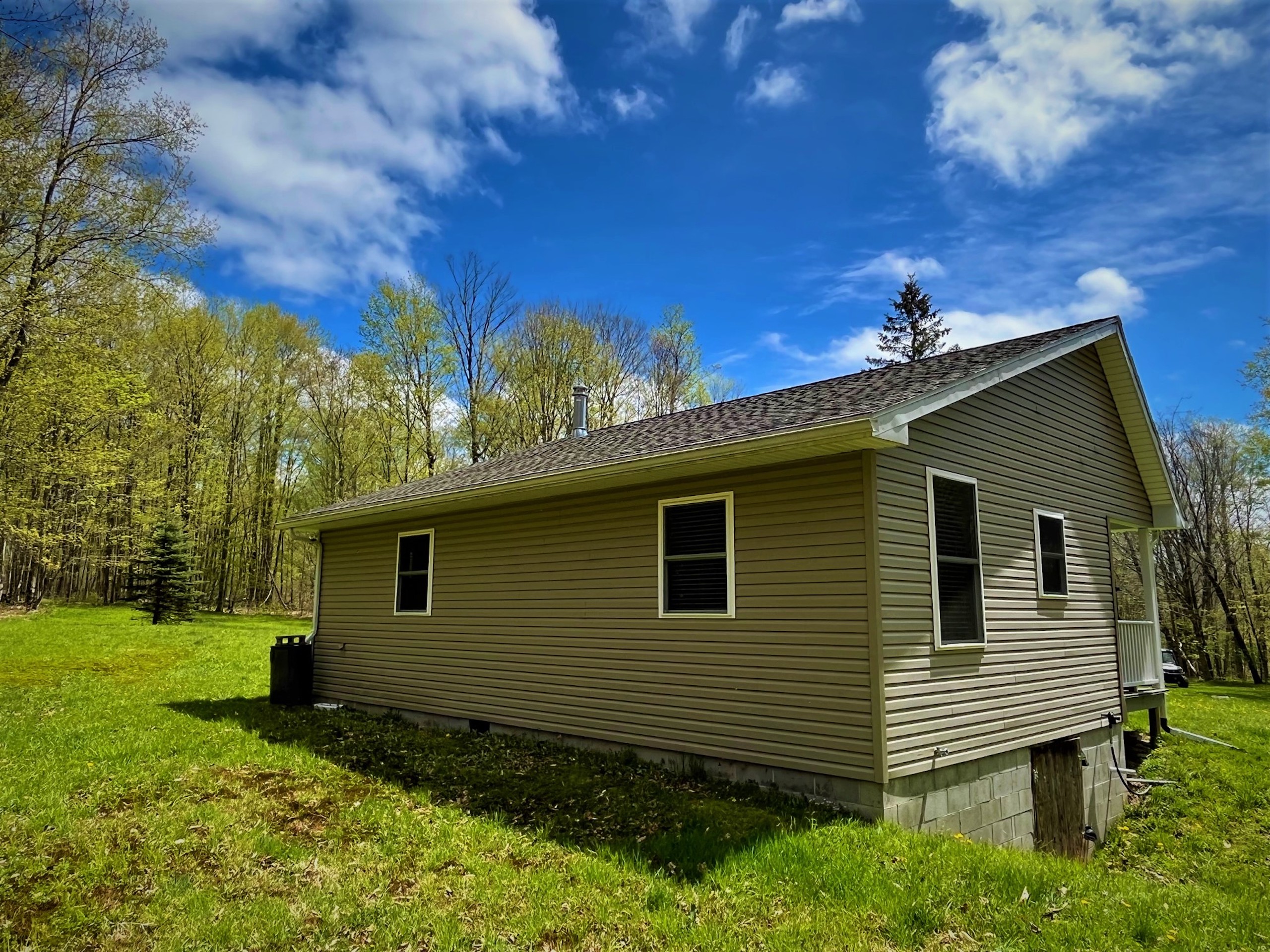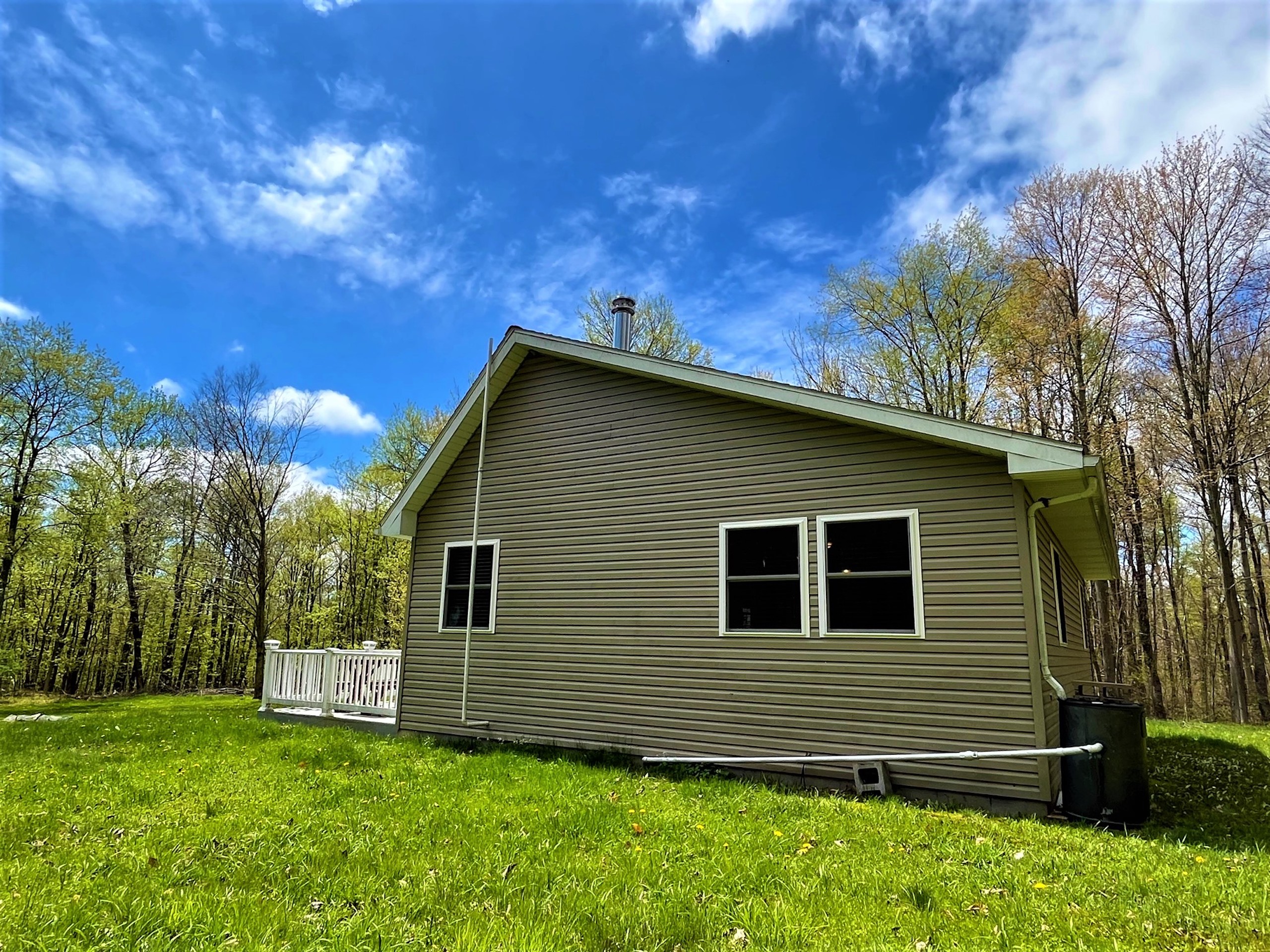 Looking for that private get-away spot to camp, hunt, or just enjoy during all four seasons? This cabin is the perfect get-away or place to call home while deer hunting or simply enjoying time away! The parcel is secluded and is accessed by a private driveway from Shamrock Road. Deer and turkey signs throughout the property make it obvious this parcel would be enjoyed by any hunter. The cabin has a 100 amp electric service that is powered by a generator system from outside in its own dedicated shed that doubles for storage for ATVs and tools. The cabin features propane heat, on-demand hot water, and a gravity-fed 250-gallon water holding system. The cabin was built in 2011 and includes a septic system, oak cabinets, a propane stove, propane fridge, propane oven, and a murphy bed for extra guests. There is a large single bedroom and bathroom, a covered porch, a deck, vinyl siding, and a block foundation with crawl space. Also on the property is a secluded bunkhouse that can be hooked up to a generator and is also heated by propane. There is also a privately owned 500-gallon propane tank. The landscape provides easy access for anyone to walk or ride ATVs throughout the property with a perimeter trail that loops over a mile with a myriad of secondary interior trails for total access to all corners of the property. A good mixture of tree species and obvious transition areas provide great habitat and obvious signs of deer and turkey. Several locations can be planted as food sources for wildlife and two shooting houses will remain on the property. A quiet, secluded, unique, must-see cabin on acreage.