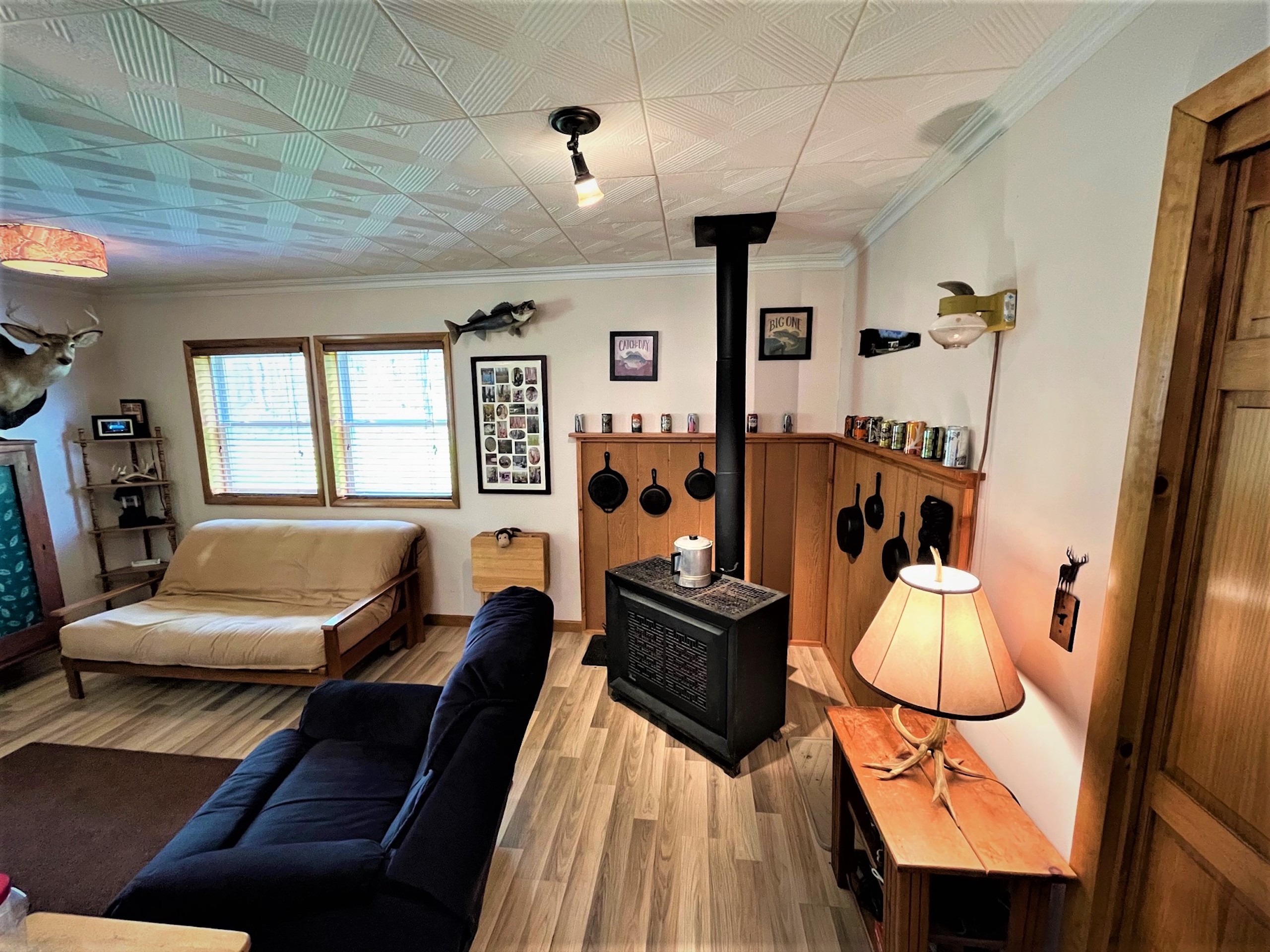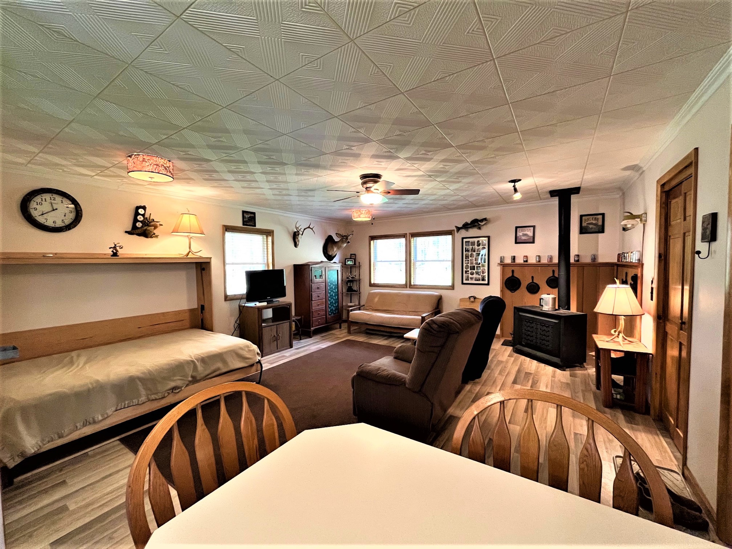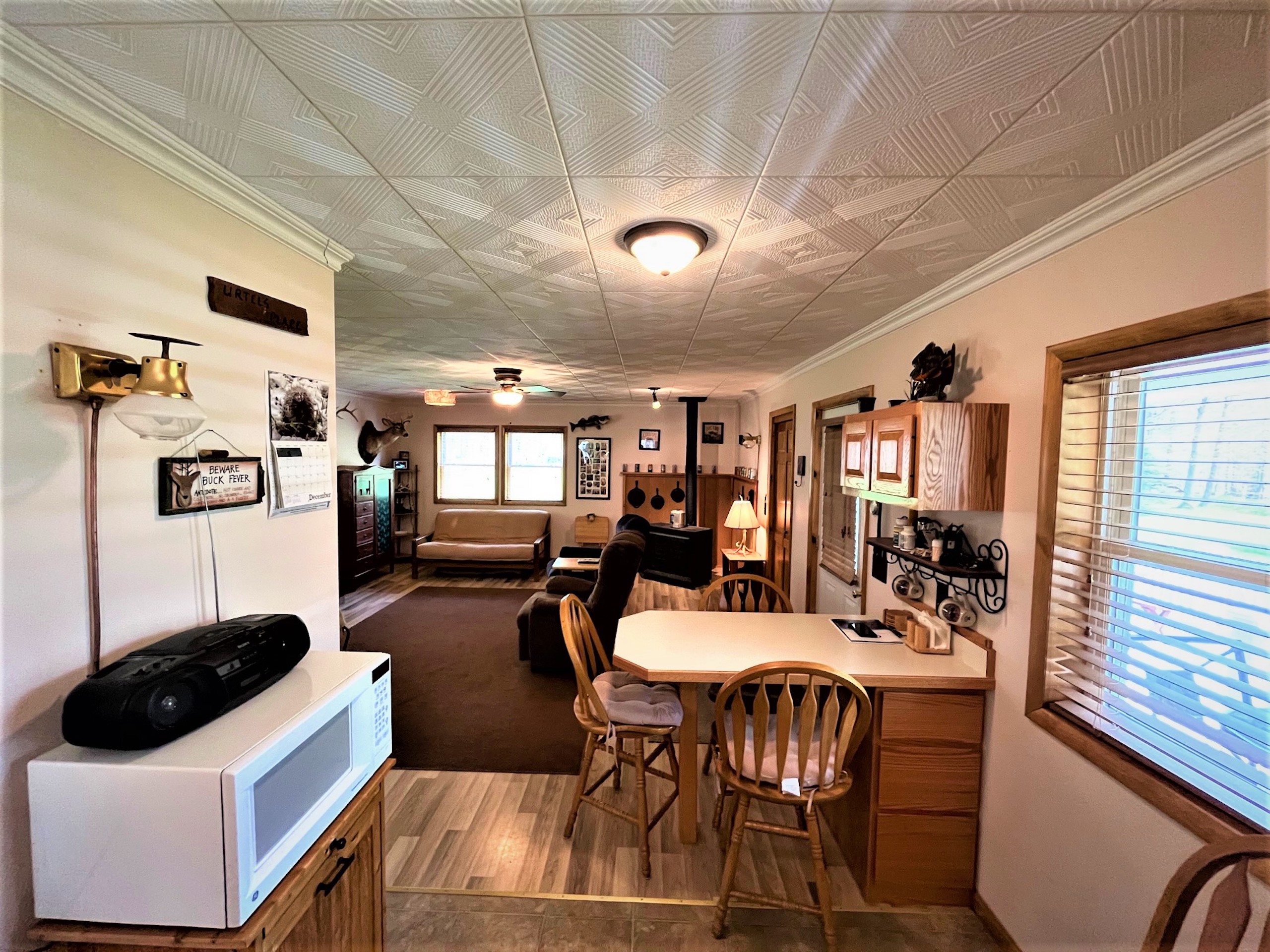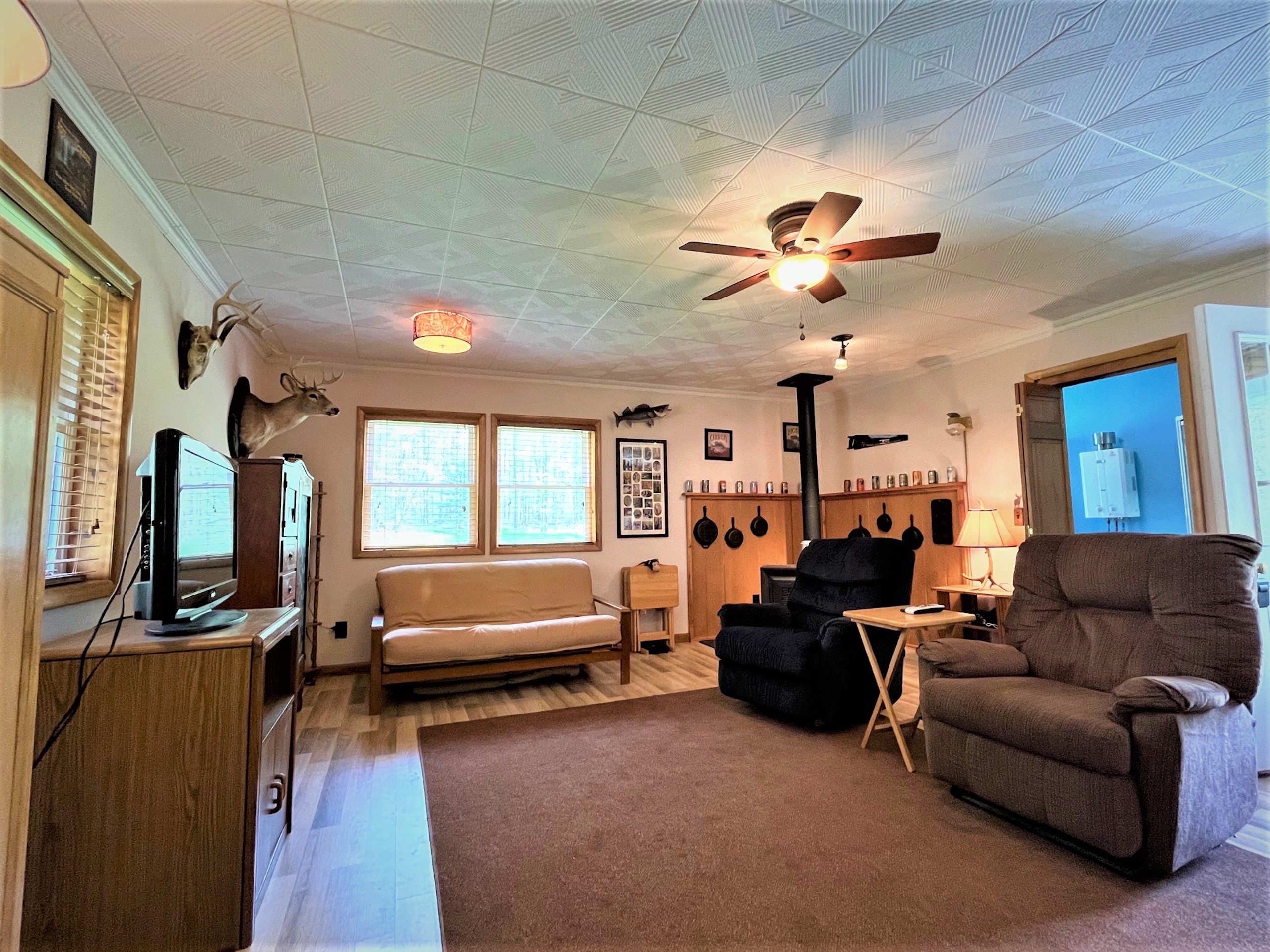 Looking for that private get-away spot to camp, hunt, or just enjoy during all four seasons? This cabin is the perfect get-away or place to call home while deer hunting or simply enjoying time away! The parcel is secluded and is accessed by a private driveway from Shamrock Road. Deer and turkey signs throughout the property make it obvious this parcel would be enjoyed by any hunter. The cabin has a 100 amp electric service that is powered by a generator system from outside in its own dedicated shed that doubles for storage for ATVs and tools. The cabin features propane heat, on-demand hot water, and a gravity-fed 250-gallon water holding system. The cabin was built in 2011 and includes a septic system, oak cabinets, a propane stove, propane fridge, propane oven, and a murphy bed for extra guests. There is a large single bedroom and bathroom, a covered porch, a deck, vinyl siding, and a block foundation with crawl space. Also on the property is a secluded bunkhouse that can be hooked up to a generator and is also heated by propane. There is also a privately owned 500-gallon propane tank. The landscape provides easy access for anyone to walk or ride ATVs throughout the property with a perimeter trail that loops over a mile with a myriad of secondary interior trails for total access to all corners of the property. A good mixture of tree species and obvious transition areas provide great habitat and obvious signs of deer and turkey. Several locations can be planted as food sources for wildlife and two shooting houses will remain on the property. A quiet, secluded, unique, must-see cabin on acreage.