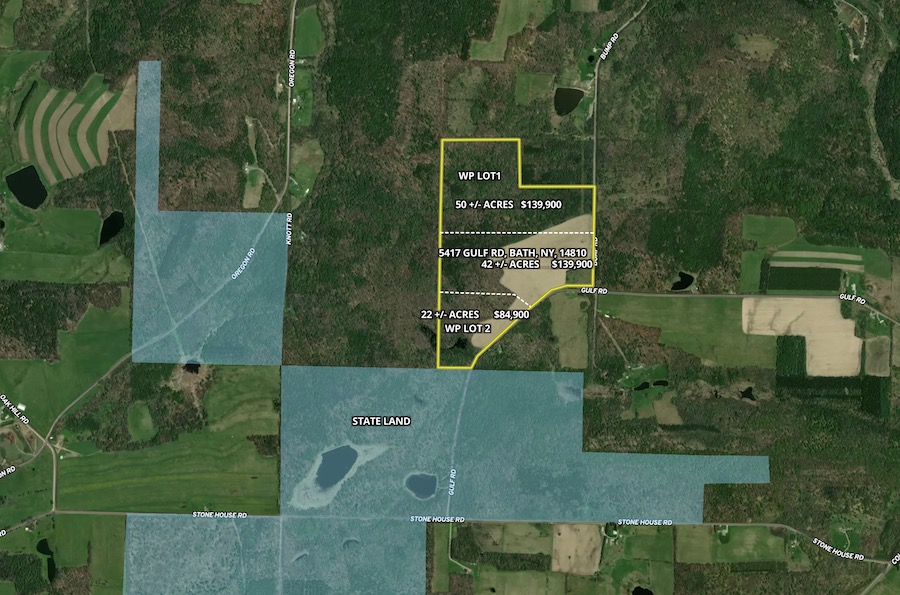 In the central part of Steuben County, NY, is this recreational property comprised of road frontage, an open area of field and a wooded lot that adjoins Cameron State Forest. This newly surveyed 22-acre parcel has electricity available at the roadway and an area near the roadway favorable for an RV, cabin, or home build site. Comprised of a healthy diversity of different tree species, this land could boast some excellent hunting and other recreational uses. There is a natural water source near the center of the property that provides a unique feature that attracts an abundance of wildlife. Gulf Road has year-round maintenance by the Township. All Gas, Mineral, Oil, Timber and Surface Rights convey. Please inquire about the neighboring acreage that may be available. A new survey from 2024 will be conveyed from the seller. The sale will be contingent upon a new parcel number being approved and assigned by the Town and County. We look forward to showing you this vacant land opportunity. Please call today to schedule your private tour!