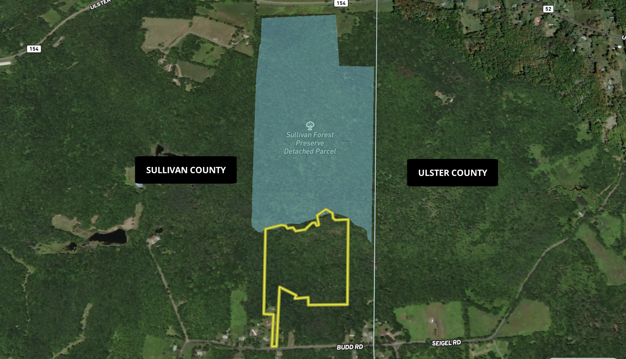 - Bordering state land (Sullivan Forest Preserve Detached Parcel)