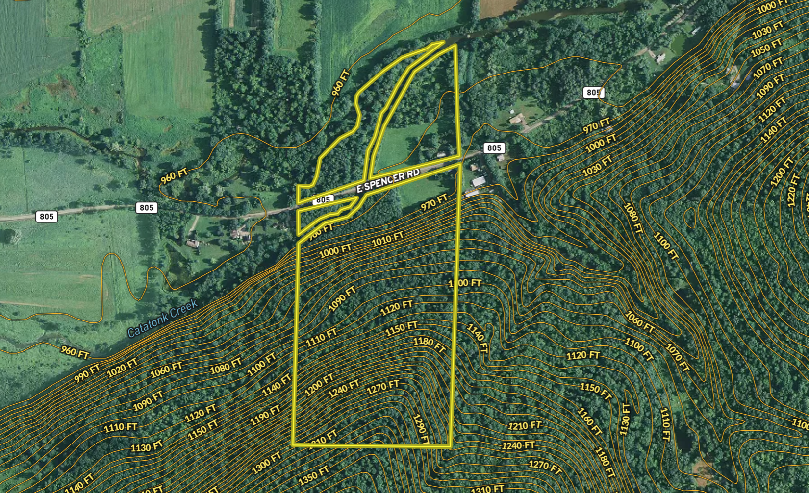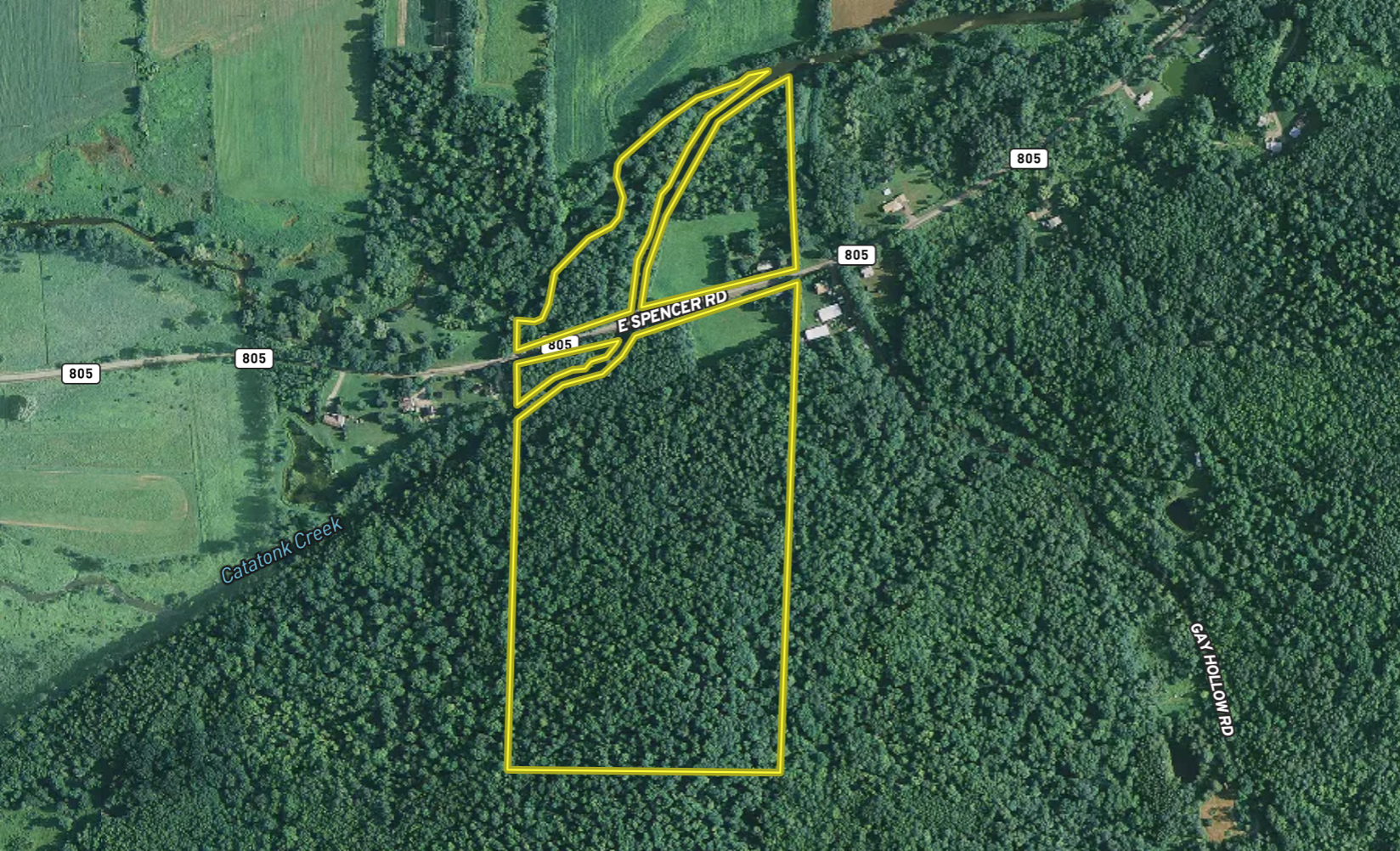 Occupying two sides of the road with a wide-range of habitat and access the possibilities of this parcel are nearly endless. Hunting, fishing, a homestead, subdivision, and general recreation are all possible on the quiet expanse of these country acres. The north side is occupied but a thicket that provides excellent cover and bedding for deer as well as a tall timber stand on the western portion. Over 1,000 feet of the trout-stocked Catatonk Creek bisects this section before turning east and acting as a division between the neighboring agricultural fields to the north. The site of an old homestead is now occupied by a well-manicured open field ideally suited for a new home site. South of East Spencer Rd is an additional open field that creates additional opportunity to build a home or camp before ascending the wooded hillside. A series of well-established and easily navigable trails traverse the elevations to provide easy foot travel and effortless access for ATVs, bikes, horses etc. There are several apple trees along the field edges that are currently heavy with fruit. Additional food and forage is found among the abundant browse and scattered oaks. An additional 500+ feet of Catatonk Creek flows through the NW corner of this parcel under the shaded canopy of a tall stand of trees. Within a reasonable driving distance from New York City and the metro area as well as Ithaca, Elmira and Binghamton this parcel offers tremendous possibilities for those seeking to find seclusion among the peace and quiet of nature. Contact me today for more information or to schedule your own private showing.