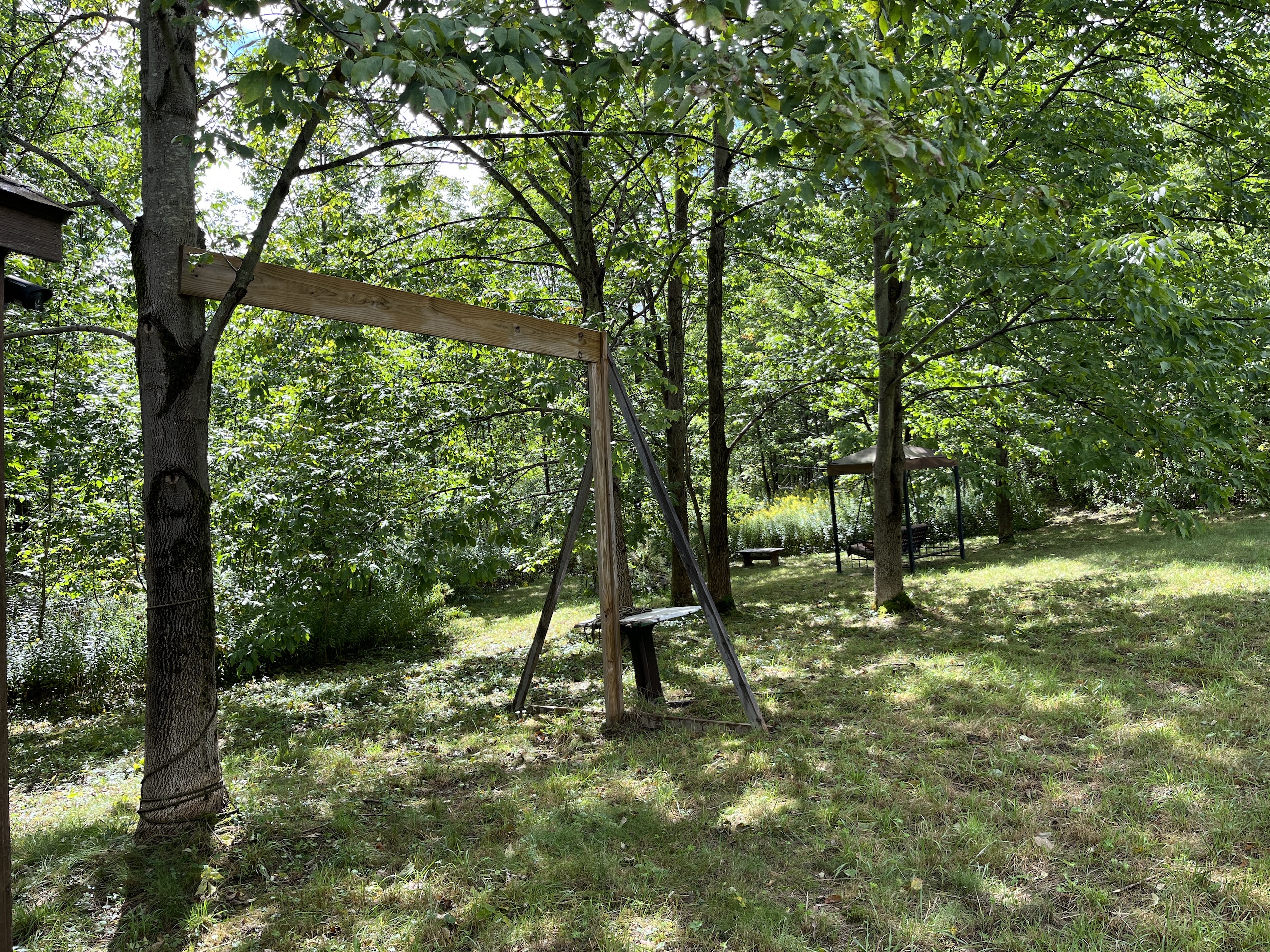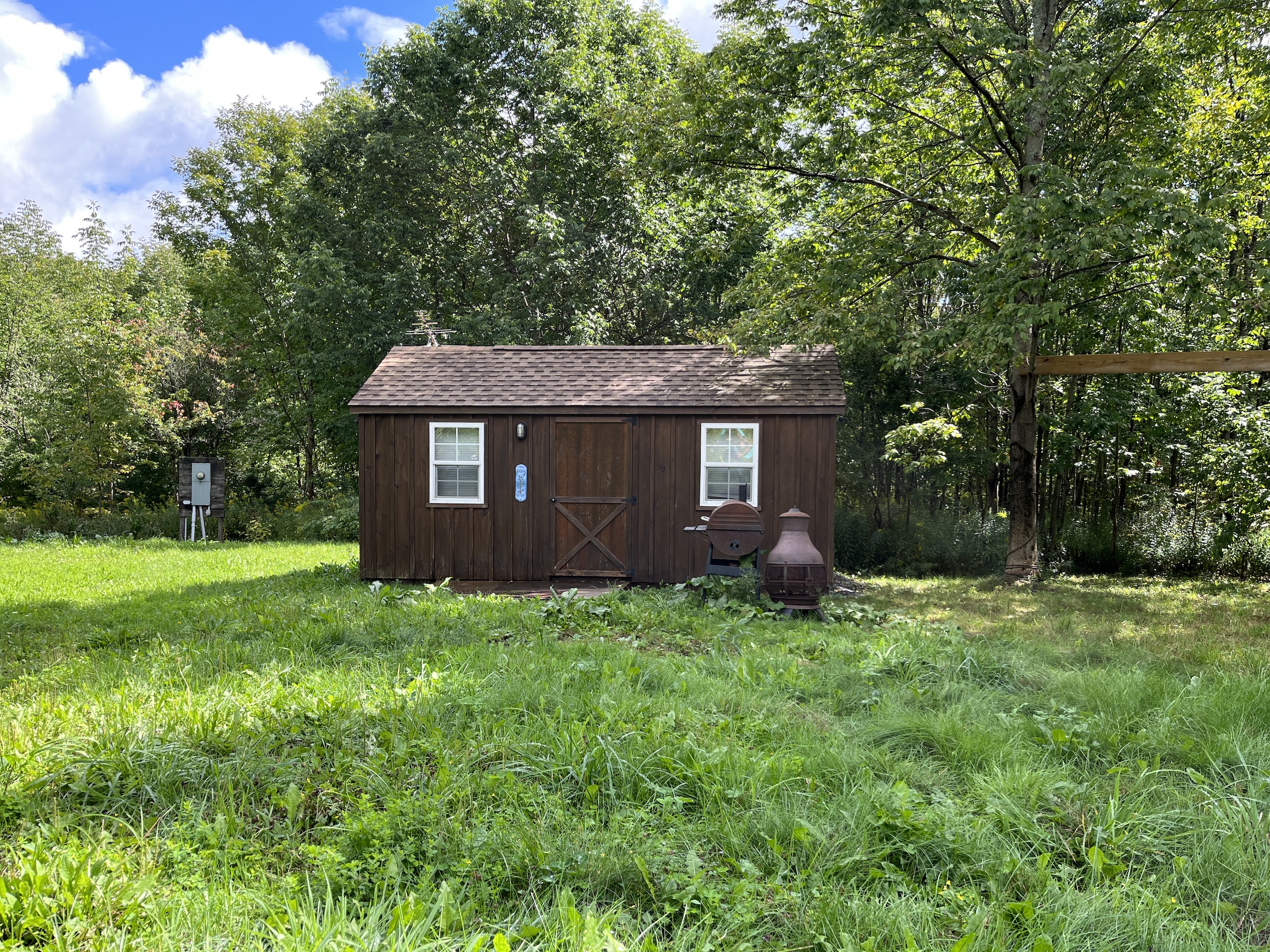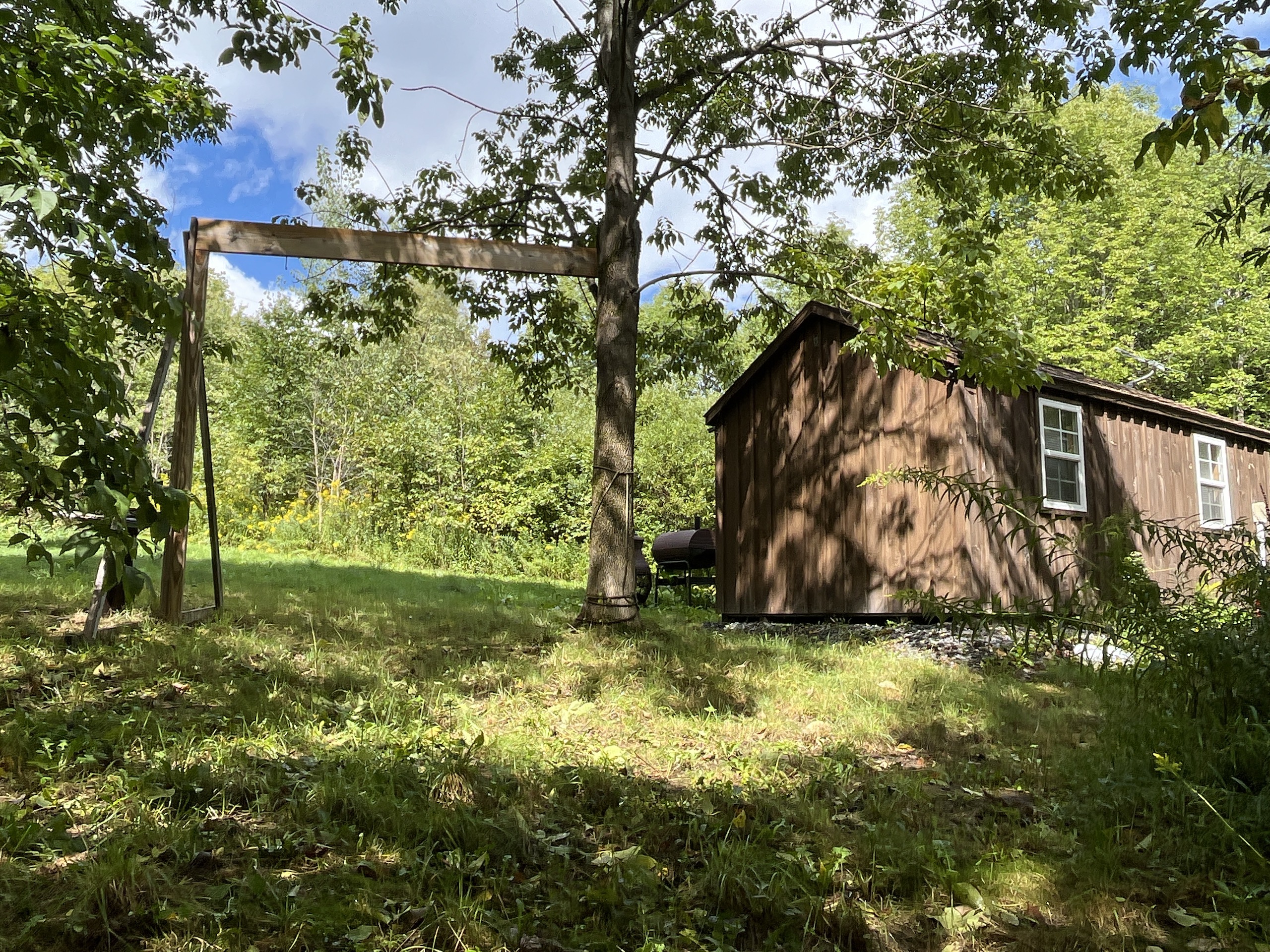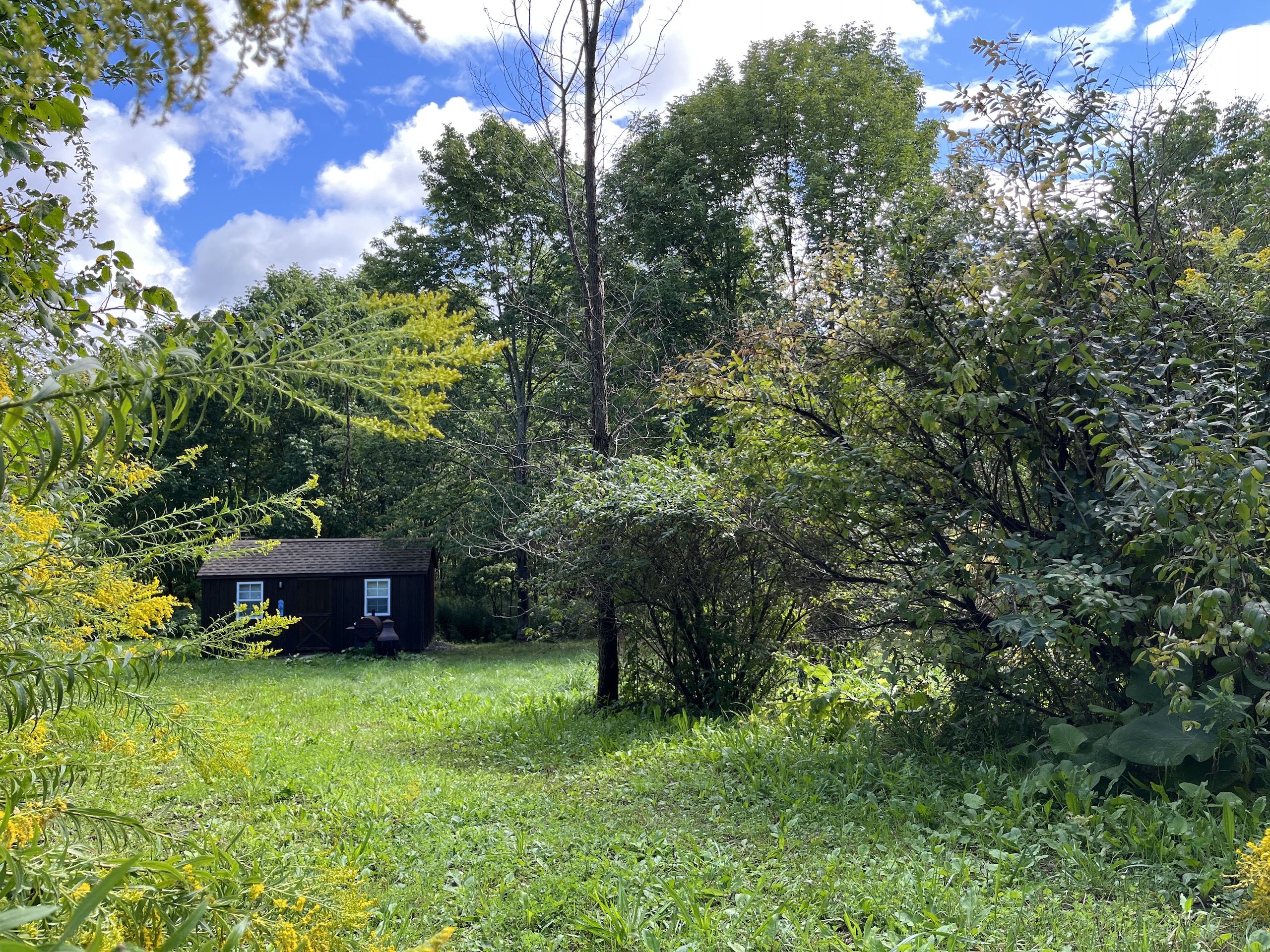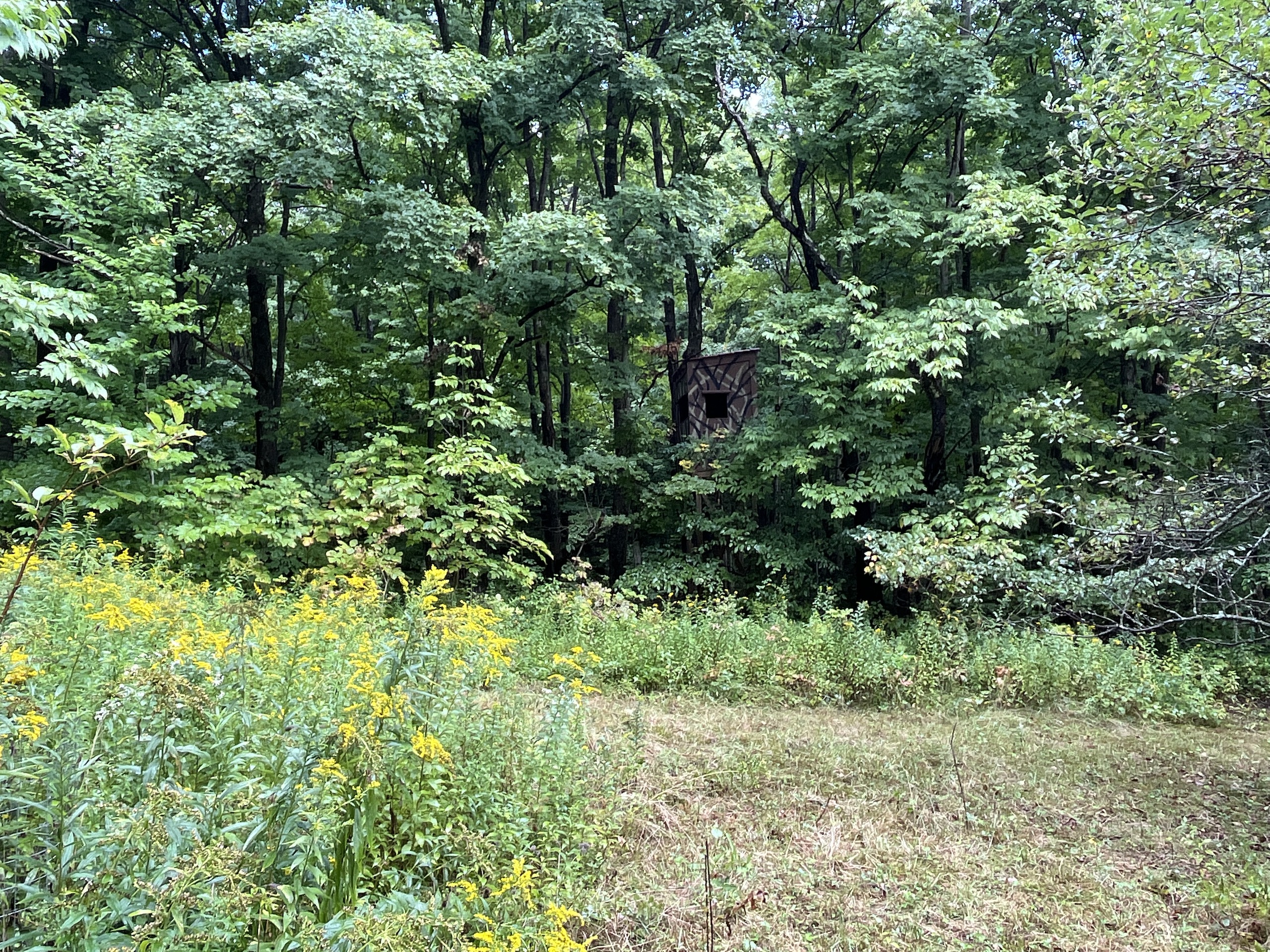 Beyond the gate and set back from the road lies a private, flat potential building lot currently occupied by an upgraded shed that was transformed into a quaint heated lodge. Perfect for a few overnight visits to allow for an early wakening to start the day off in the woods, ready for the sunrise and the wildlife to appear. A sturdy custom-built blind has been thoughtfully placed alongside one of two seasonal streams winding their way through the property. Four separate paths were created for walking or ATV to explore the entire property. Several clearings can easily be adaptable to plant food plots or additional apple trees to encourage the animals to stay and enjoy the habitat. Several other types of trees reside here, including oak, walnut, maple and birch. Watch the vibrant leaves change color in the fall season and take advantage of the cool brisk nights surrounding the fire pit with your family or friends. Park a camper or pitch a tent for additional shelter. All Oil, Gas, Mineral and Timber rights convey. There is 200 amp electric on site ready for building possibilities or keep it simple and cozy as it has been used for several years: secluded location but less than 30 minutes from Ithaca's conveniences. Don't hesitate to contact us today to set up a time to explore this property's potential. Permission is needed to view the property, and the seller requests that an agent must be present for all showings during hunting season.