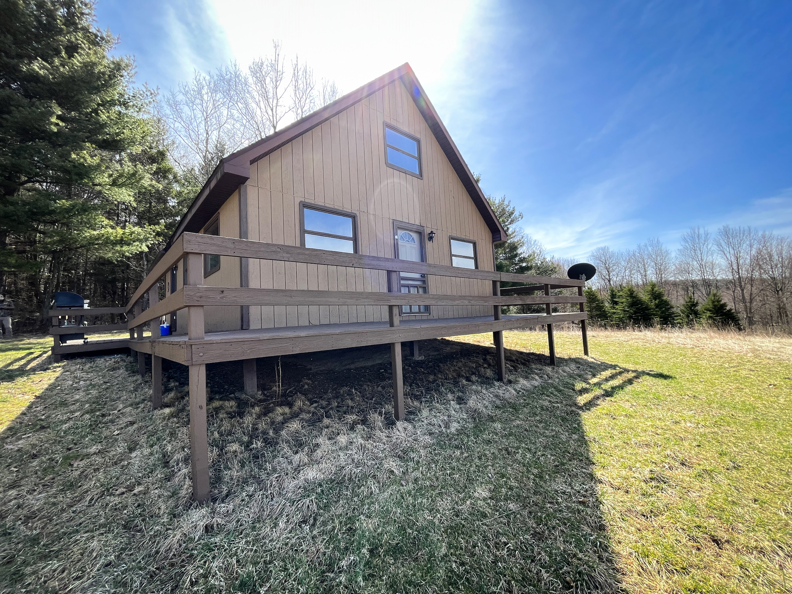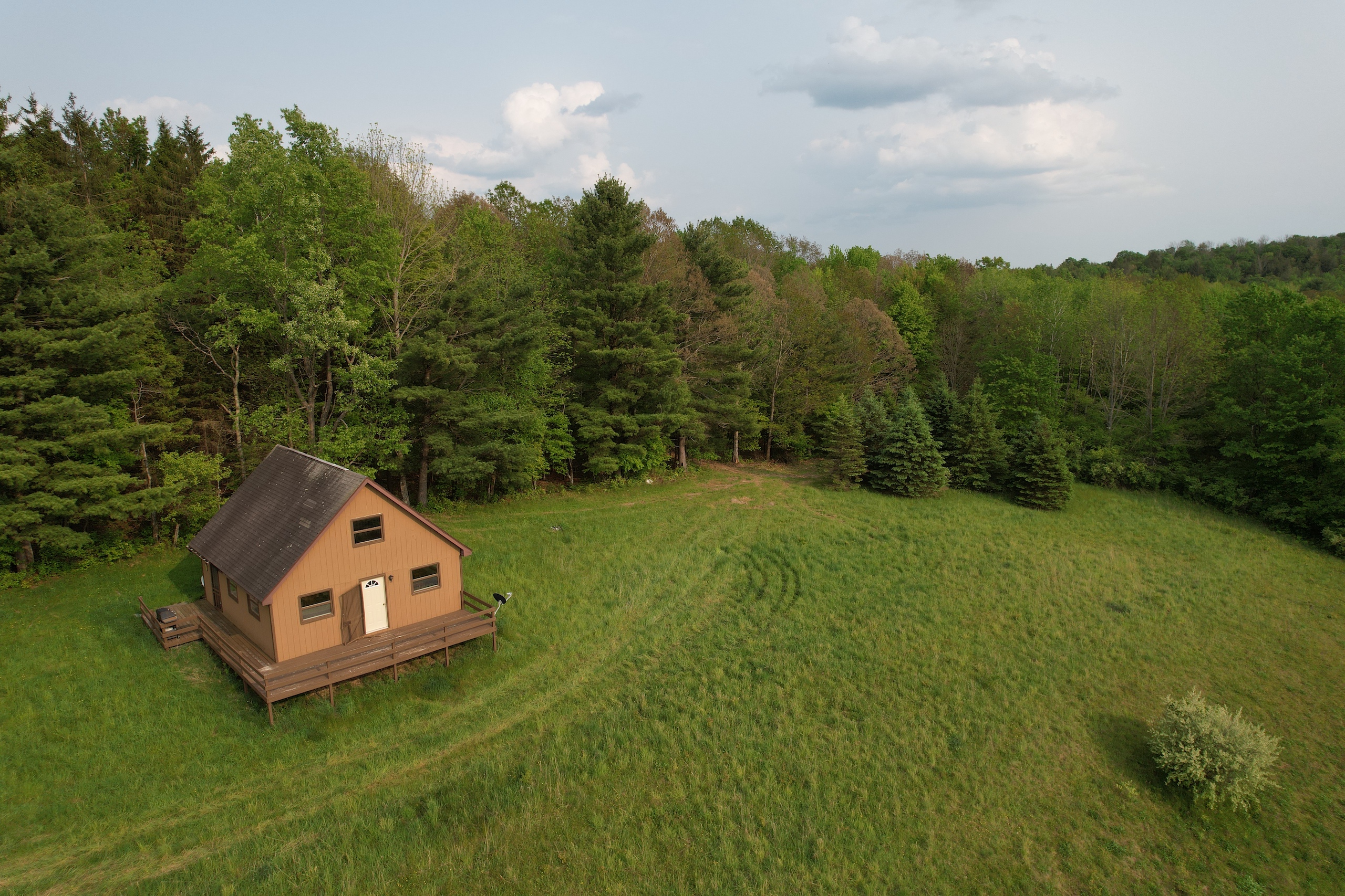 If seclusion and serenity with an opportunity at big bucks are on target, then settle your aim here. This large-acreage private retreat sets the stage for a one-of-a-kind outdoor experience. Situated ¾ of the way down a four-season, dead-end, town road the remote nature of this unique property lets you disconnect from the hustle and bustle of real-life and melt into the surrounding wood line. Highlighted by a lofty cabin perched in the breath-taking view of the valley below, the sweeping panorama is worth the price of admission. Though off-gird the cabin’s configuration leaves little to sacrifice with creative systems designed to aid in the use of electricity and water. Propane tanks provide heat and gas for cooking in the sun-filled open space of the large great room. A small bedroom and loft space grant plenty of room to sleep, with multiple guests. An exceptional seasonal destination the property features access to the West Branch of Owego creek, that according to the DEC website, “is a very popular trout stream that is heavily stocked and supports wild trout”. For those who prefer fur over fish, this property’s layout has provided excellent deer hunting over the years with many trophy-class bucks having been taken from its diverse mix of topography and habitat. Tree species include hemlock, maple, oak, beech, birch, ash, and several others occupying the well-stocked timber stand. Several food plot locations dot the wooded expanse and allow for additional food and hunting opportunities from the otherwise unbroken large stretches of forest lands. Two additional fields along the road also provide the opportunity to plant additional food or potentially lease to a local farmer for hay or crops. Access to the cabin and majority of the property is provided by a dirt drive that’s navigated easily by a side-by-side or ATV, with potential truck use during dryer conditions. Additional access comes by way of an extensive series of logging roads that reach all corners of the property and each of the food plots. All seller Oil, Gas, Mineral, and Timber rights convey. Please do not enter private property without a prior appointment. The seller requires all potential buyers to be prequalified and accompanied by a real estate agent to enter the property.