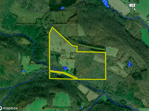 - Serene acreage located off a seasonal road with over 3000+/- feet of road frontage on one side and nearly 1500 +/- ft on the other