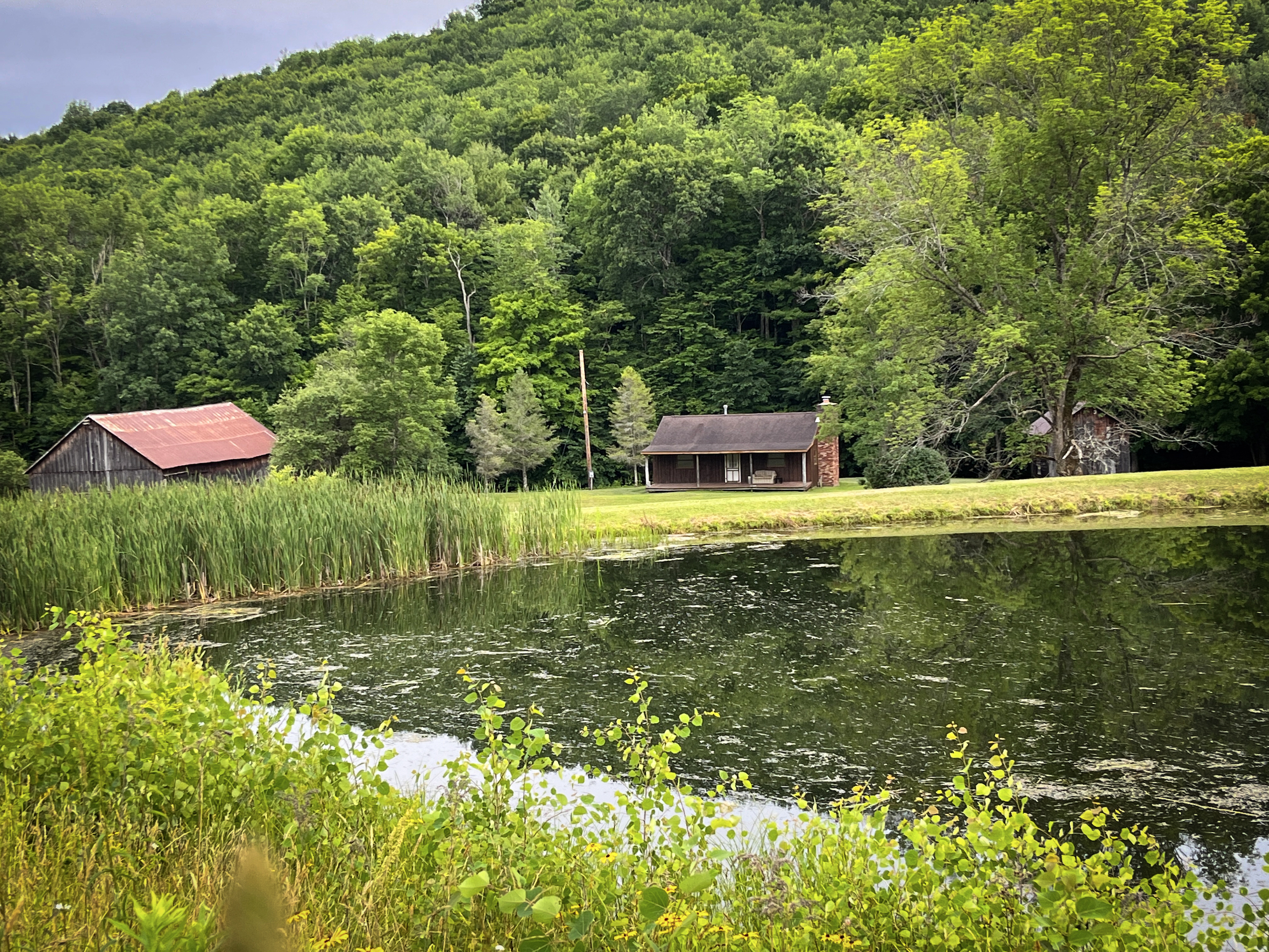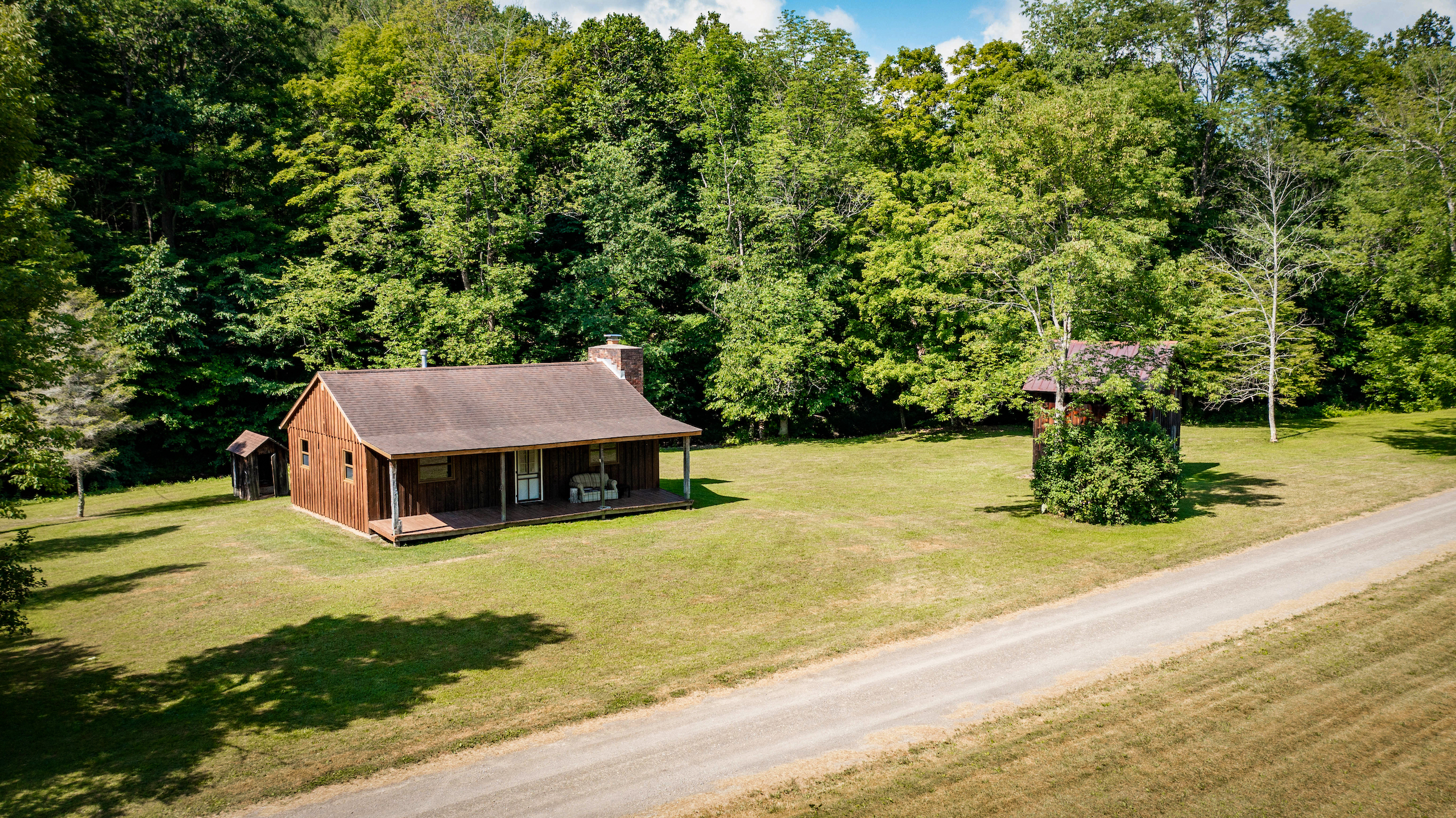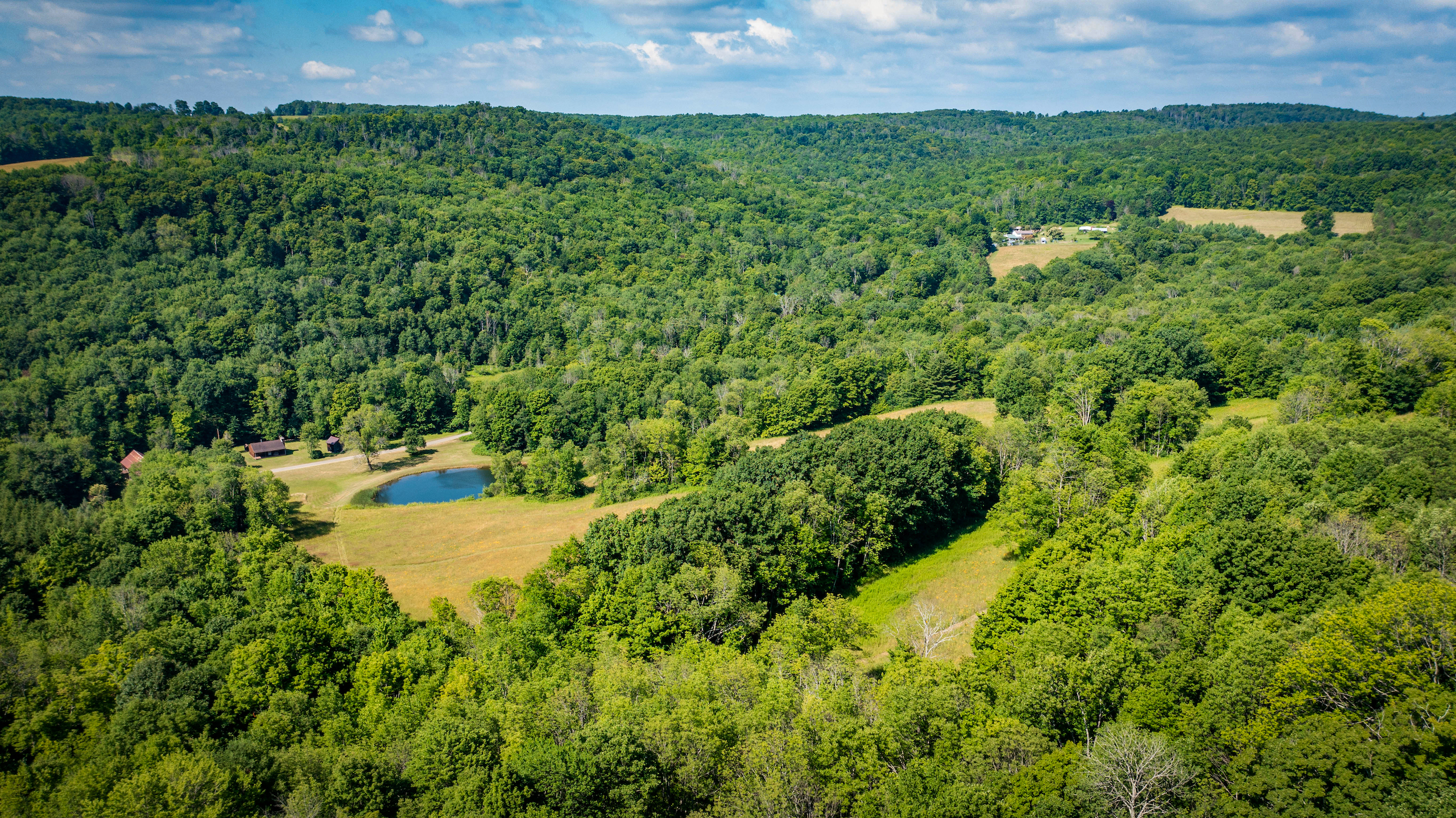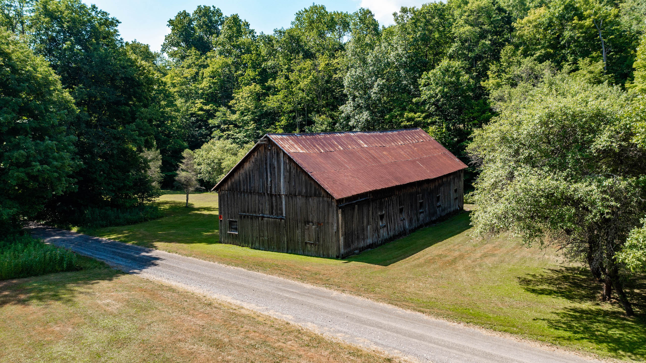 Arrive to admire this spacious grassland camp and disappear from the life’s hustle and bustle, while taking in the wide-ranging scenic views from several locations on this private property. From the deck of the rustic cabin, peer at the rolling hills with varied elevations. Behind the cabin sits a seasonal creek with a rock-bed bottom. Take a view from the higher elevation stand of a well-maintained half-acre bass-stocked pond situated among the valley retreat. The cabin features a fully furnished open floor living space to rest and refresh with family and friends. Rough-cut barn siding details the interior walls, doors and cabinets, all curated from the old stable that was on the property and repurposed to enhance the retreat’s rustic look and feel. The focal point fireplace allows for additional warmth and comfort on cold winter nights. On either side of the camp, you will find two sturdy and well-maintained 1850s barns presenting extensive storage options. Eastbound and up the hill, wind through the various wooded trails to find places to hike, hunt or use ATVs. Beyond the woods, there is a considerable amount of potential tillable acreage once planted with several different crops, including corn, hay and beans. Explore and find several different tree species and wild flowers blooming in spring, summer and fall. For the passionate hunter, this property allows for a vast number of locations to take a seat in a tree stand or blind for a rewarding pursuit. The ample acreage of this peaceful property with nearly 3,000 feet of road frontage allows for a wide range of recreation and seclusion to recharge and appreciate life. The maintained and plowed dead-end road allows for the camp to be accessible year-round. Located less than 30 minutes from Ithaca and 2 miles from Speedsville. Please contact us today to embark on the experiences that this property has to offer.
