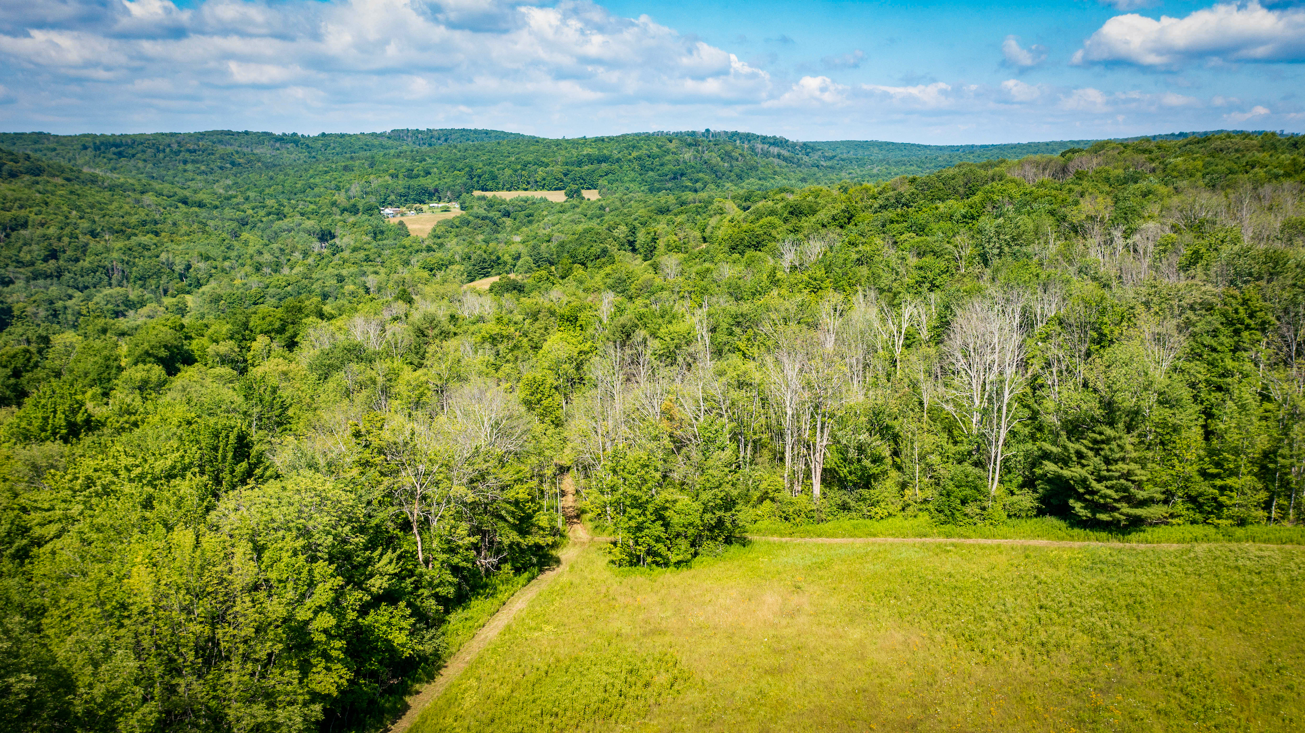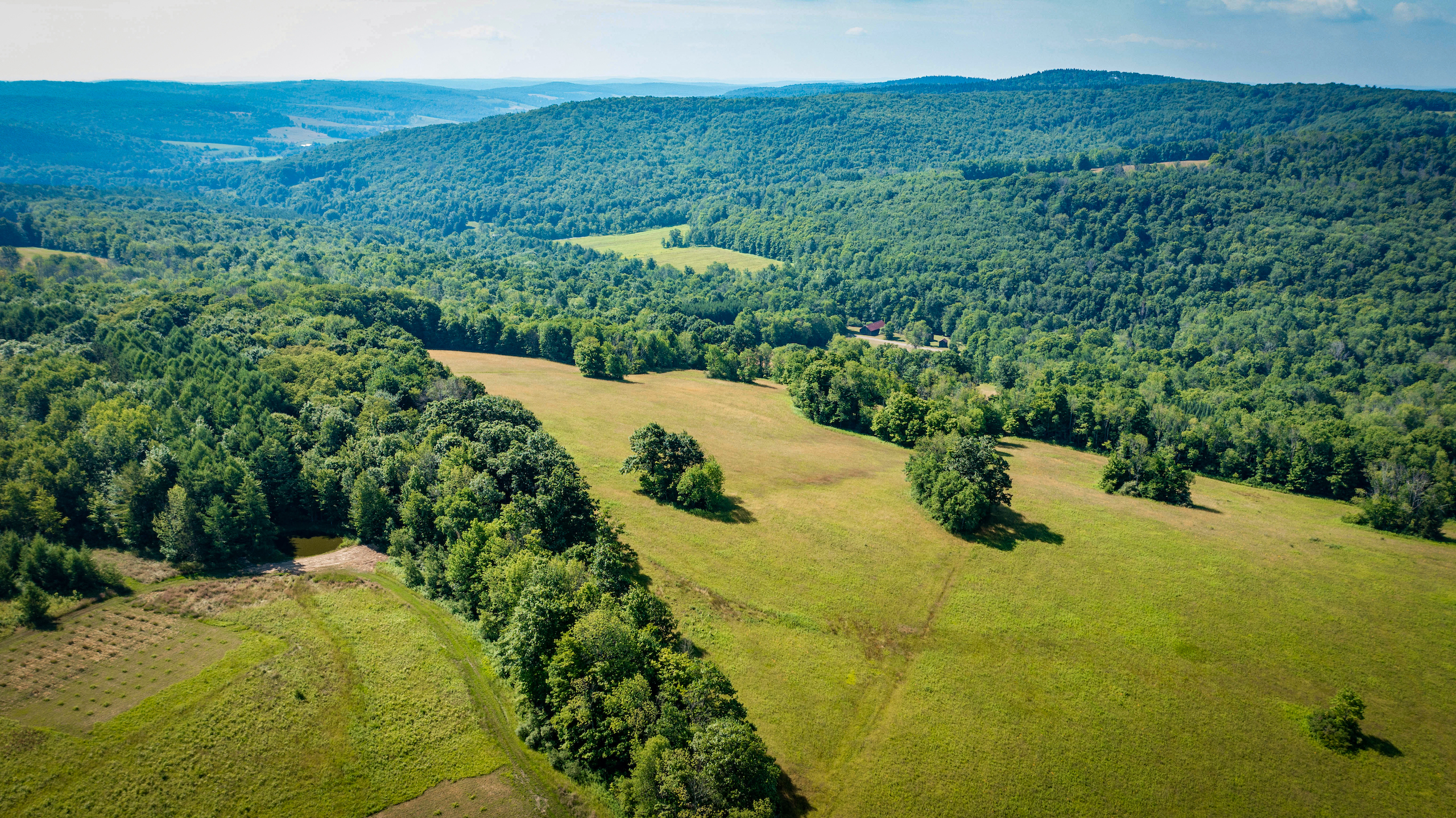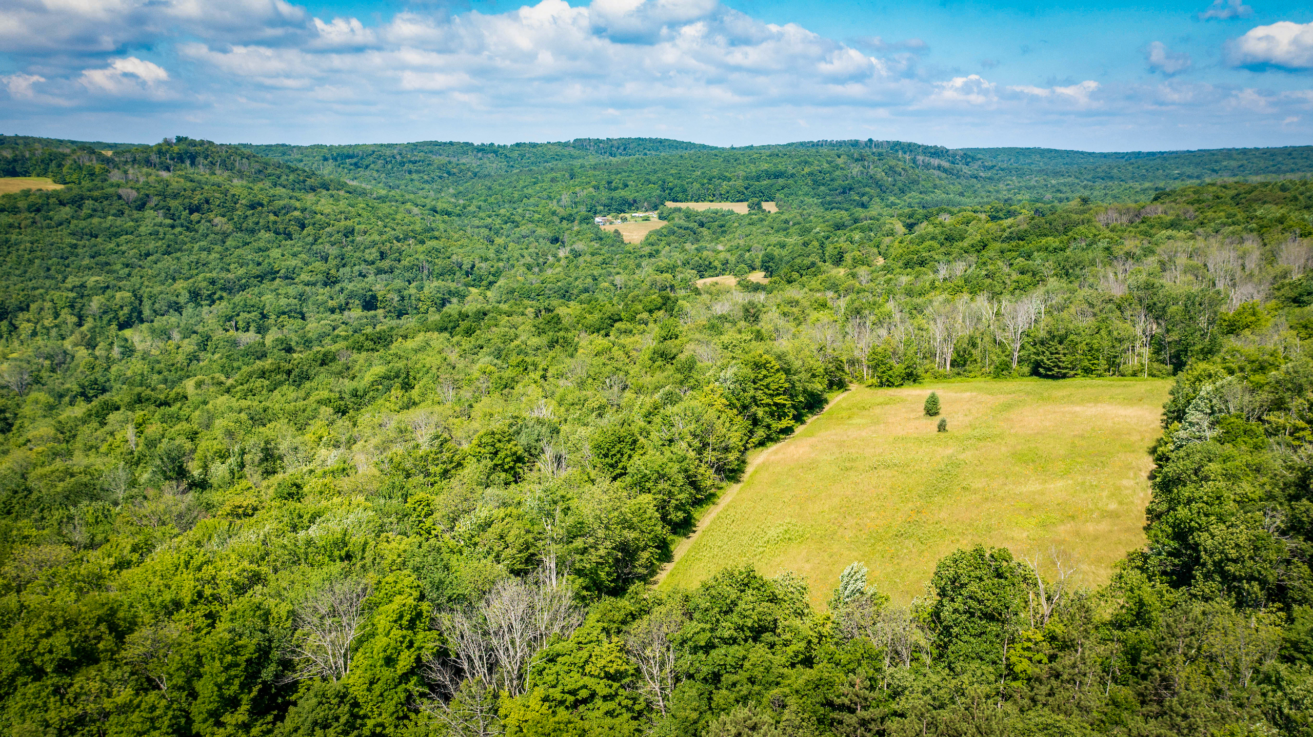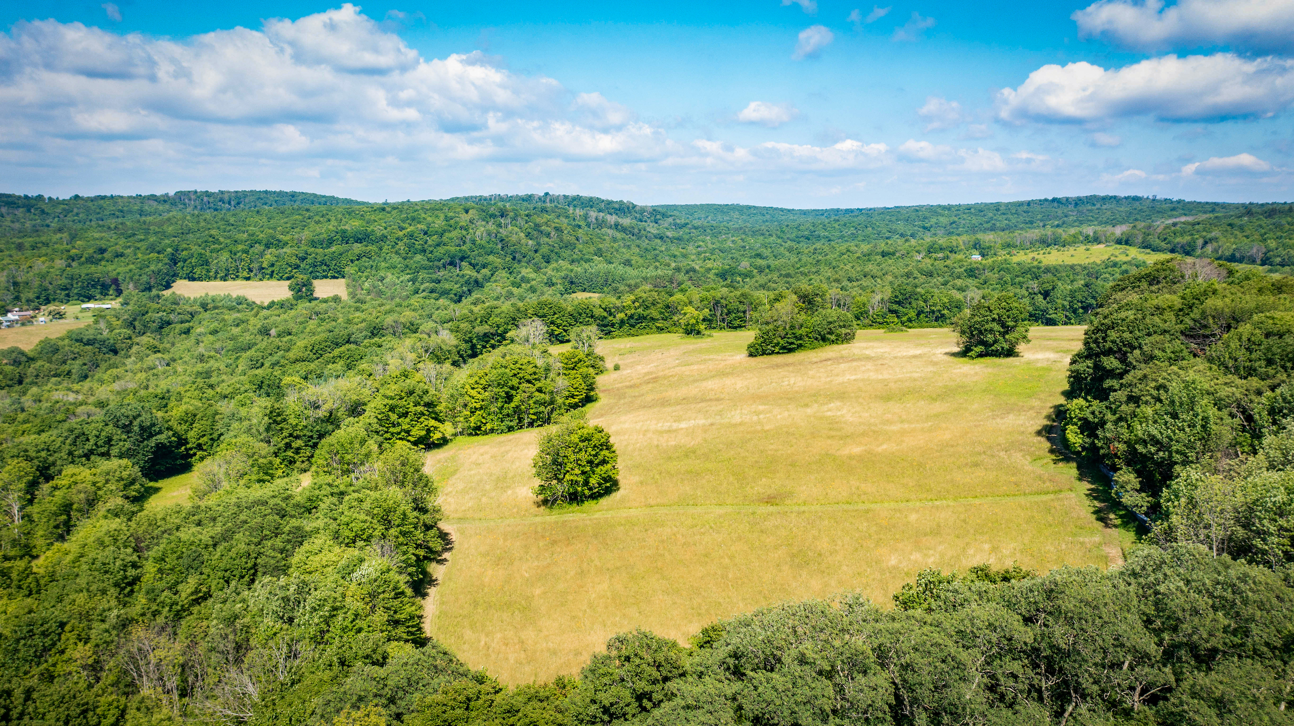 Arrive to admire this spacious grassland camp and disappear from the life’s hustle and bustle, while taking in the wide-ranging scenic views from several locations on this private property. From the deck of the rustic cabin, peer at the rolling hills with varied elevations. Behind the cabin sits a seasonal creek with a rock-bed bottom. Take a view from the higher elevation stand of a well-maintained half-acre bass-stocked pond situated among the valley retreat. The cabin features a fully furnished open floor living space to rest and refresh with family and friends. Rough-cut barn siding details the interior walls, doors and cabinets, all curated from the old stable that was on the property and repurposed to enhance the retreat’s rustic look and feel. The focal point fireplace allows for additional warmth and comfort on cold winter nights. On either side of the camp, you will find two sturdy and well-maintained 1850s barns presenting extensive storage options. Eastbound and up the hill, wind through the various wooded trails to find places to hike, hunt or use ATVs. Beyond the woods, there is a considerable amount of potential tillable acreage once planted with several different crops, including corn, hay and beans. Explore and find several different tree species and wild flowers blooming in spring, summer and fall. For the passionate hunter, this property allows for a vast number of locations to take a seat in a tree stand or blind for a rewarding pursuit. The ample acreage of this peaceful property with nearly 3,000 feet of road frontage allows for a wide range of recreation and seclusion to recharge and appreciate life. The maintained and plowed dead-end road allows for the camp to be accessible year-round. Located less than 30 minutes from Ithaca and 2 miles from Speedsville. Please contact us today to embark on the experiences that this property has to offer.