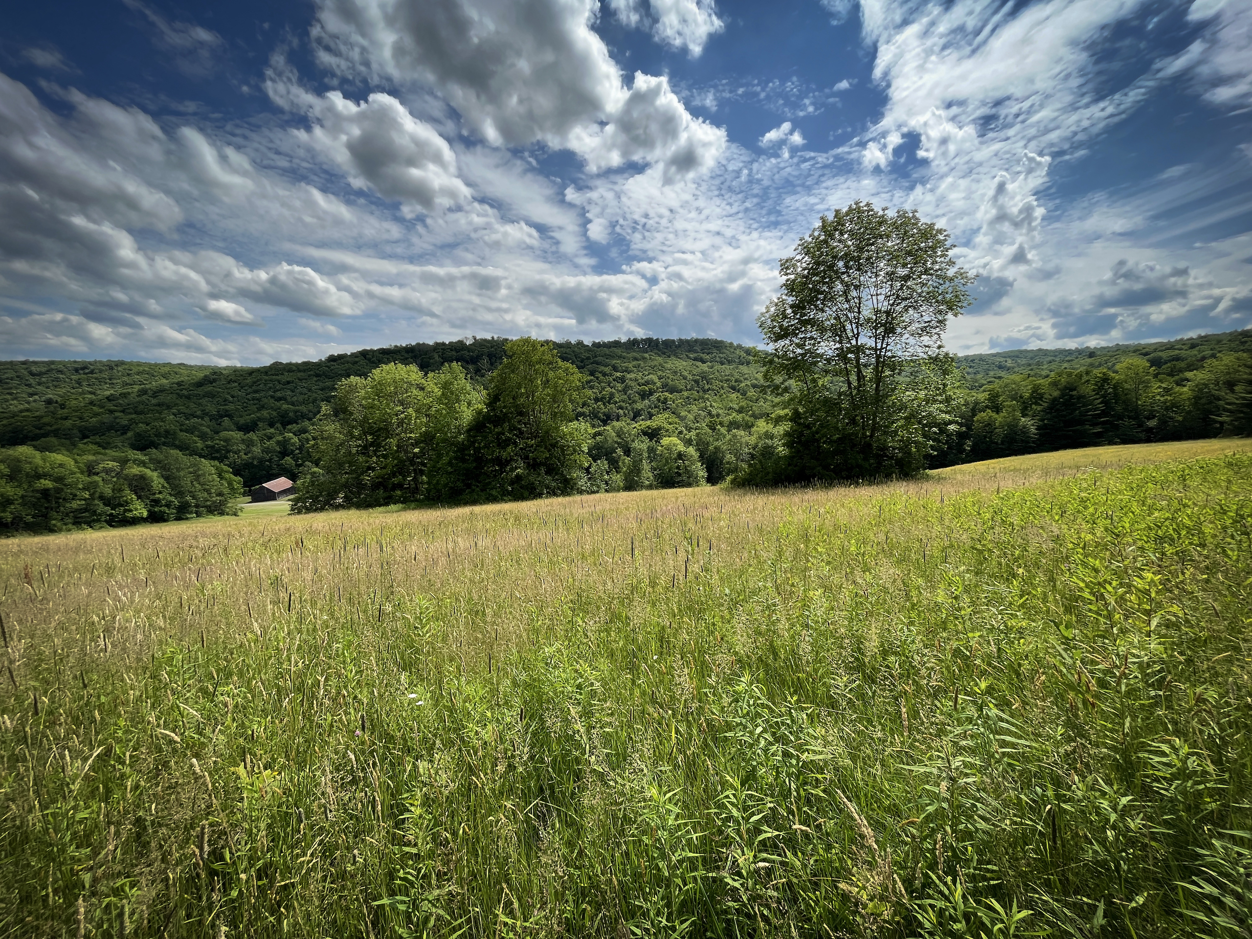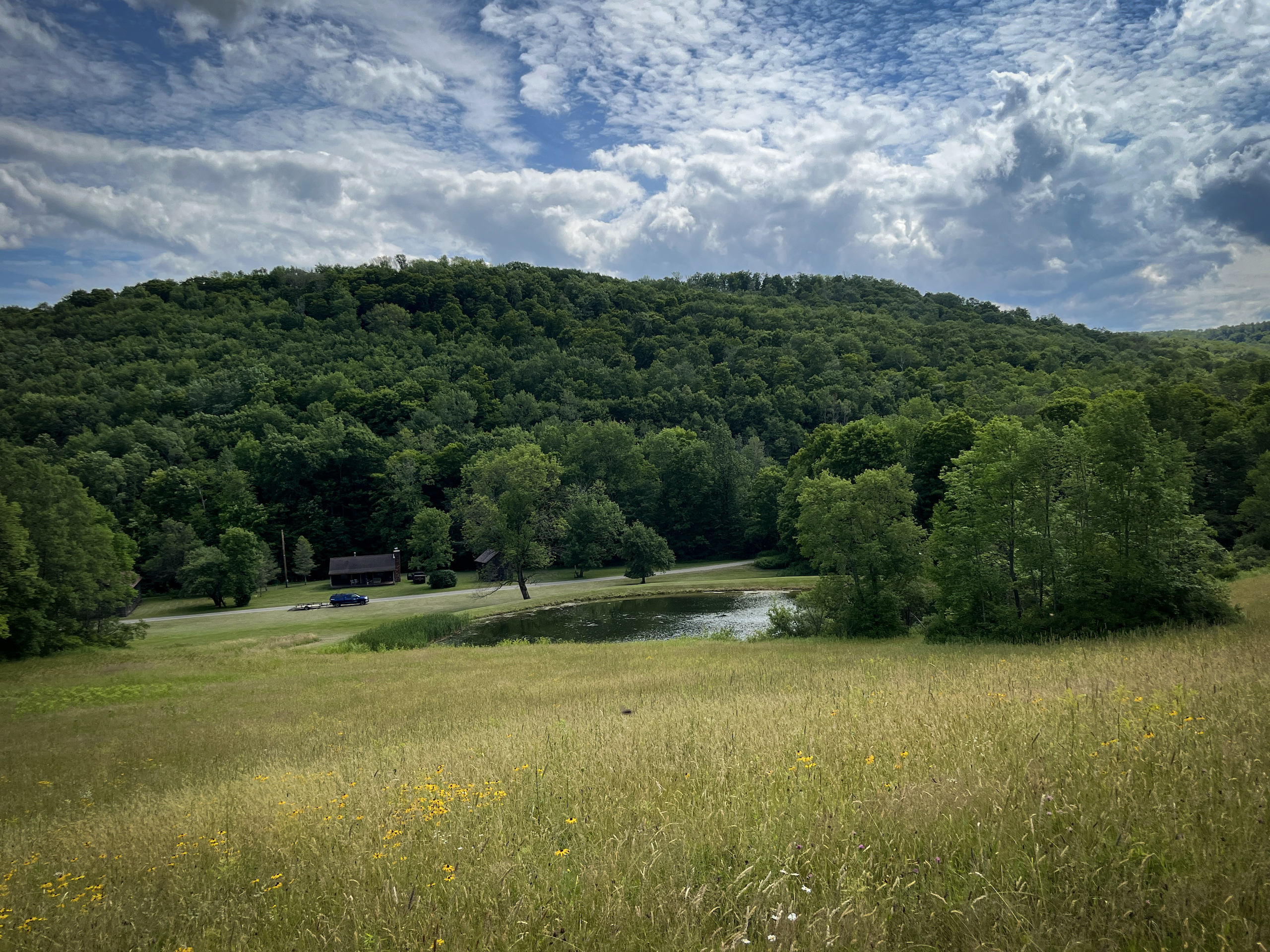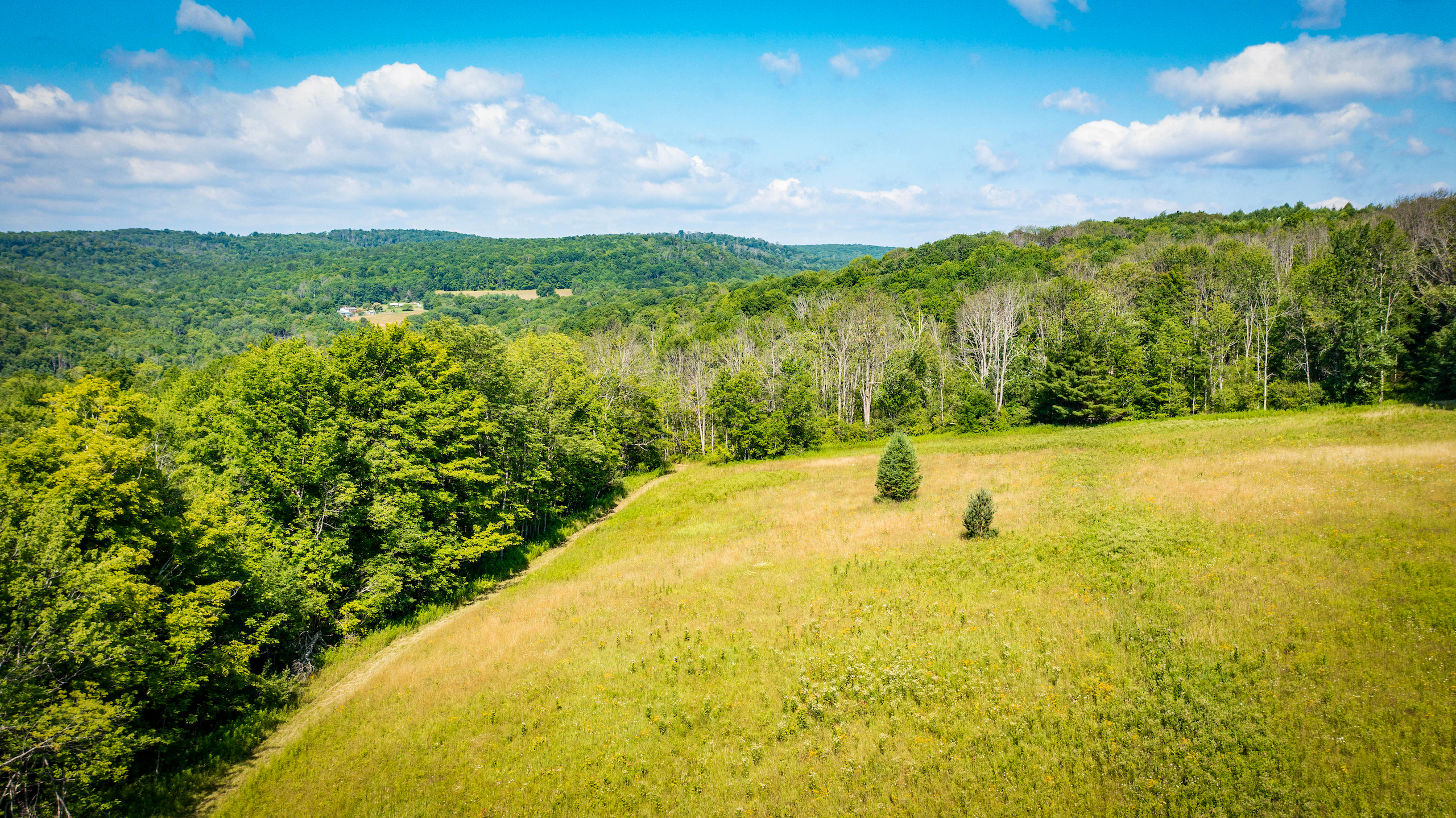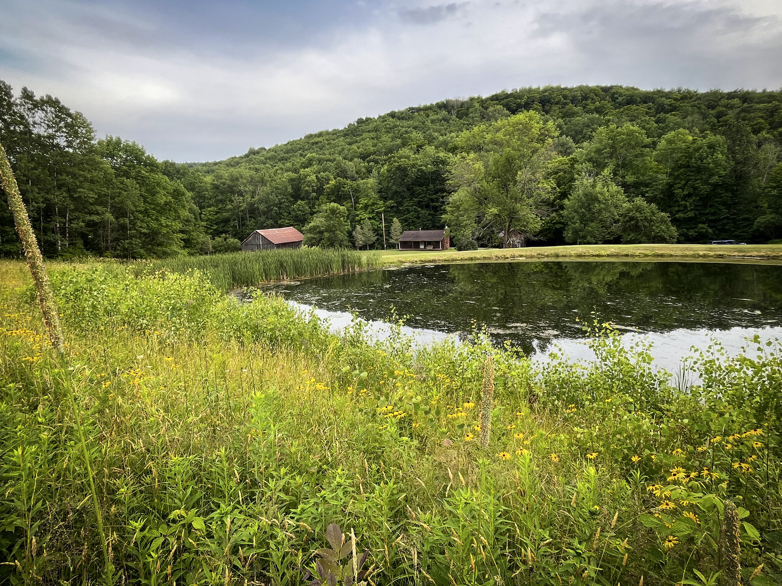 Arrive to admire this spacious grassland camp and disappear from the life’s hustle and bustle, while taking in the wide-ranging scenic views from several locations on this private property. From the deck of the rustic cabin, peer at the rolling hills with varied elevations. Behind the cabin sits a seasonal creek with a rock-bed bottom. Take a view from the higher elevation stand of a well-maintained half-acre bass-stocked pond situated among the valley retreat. The cabin features a fully furnished open floor living space to rest and refresh with family and friends. Rough-cut barn siding details the interior walls, doors and cabinets, all curated from the old stable that was on the property and repurposed to enhance the retreat’s rustic look and feel. The focal point fireplace allows for additional warmth and comfort on cold winter nights. On either side of the camp, you will find two sturdy and well-maintained 1850s barns presenting extensive storage options. Eastbound and up the hill, wind through the various wooded trails to find places to hike, hunt or use ATVs. Beyond the woods, there is a considerable amount of potential tillable acreage once planted with several different crops, including corn, hay and beans. Explore and find several different tree species and wild flowers blooming in spring, summer and fall. For the passionate hunter, this property allows for a vast number of locations to take a seat in a tree stand or blind for a rewarding pursuit. The ample acreage of this peaceful property with nearly 3,000 feet of road frontage allows for a wide range of recreation and seclusion to recharge and appreciate life. The maintained and plowed dead-end road allows for the camp to be accessible year-round. Located less than 30 minutes from Ithaca and 2 miles from Speedsville. Please contact us today to embark on the experiences that this property has to offer.