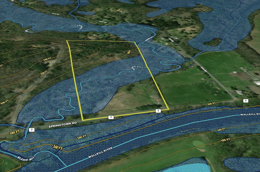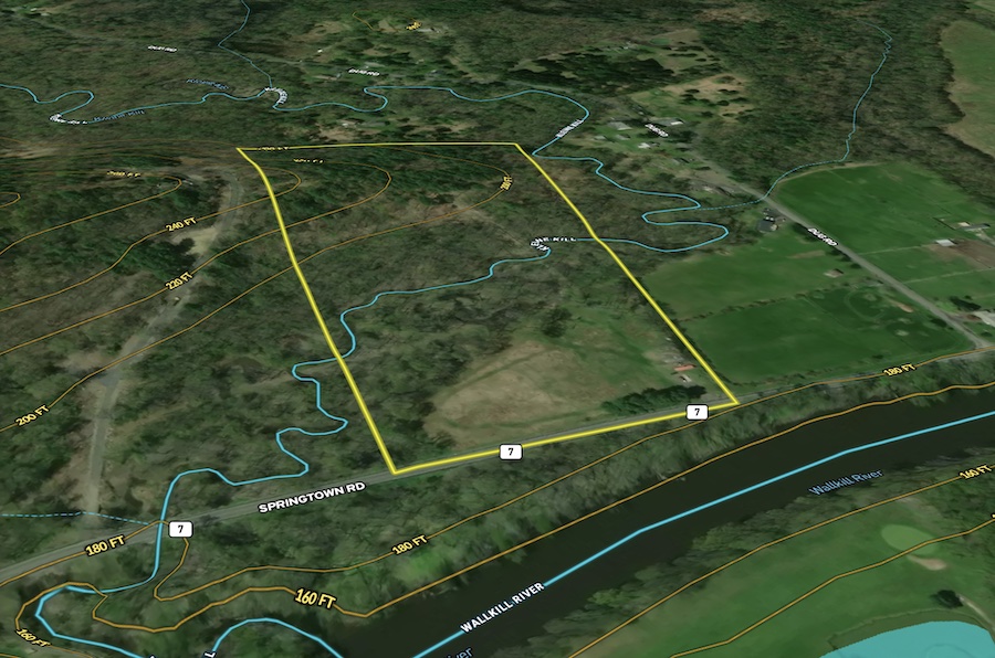 This property is located just minutes from the town of New Paltz, which offers a variety of amenities. Located on Springtown Road directly across from the Wallkill River, this property offers +/- 680’ of road frontage with a gentle increase of elevation of +/- 40 from the road to the back of the property. The open field area in the front has two 40’ storage containers, a drilled well, and an electrical service on the property. This area has potential for agricultural uses. Transitioning from the field area through the wetland leading to Kleine Kill that bisects the property, this area is made up of mixed hardwoods, with species of oak and hickory being the most dominant. From that point, the elevation increases. The forest is made up of smaller hardwoods mixed with large white pines throughout. The southwestern corner is located out of the wetland and floodplain and offers the potential to build your own private country retreat. A long driveway and a bridge would be required to access this area. Please call the town of New Paltz for all possibilities. This parcel offers a multitude of recreational uses. With trail systems in place and large Ibeams placed over the kill, access is easy by foot or ATV. Whether you want to come for the weekends with your family to ride, hike, or hunt, the potential is there. There are a lot of deer sign present on the property, and on a mast crop year, the oaks provide a great source of food for whitetail deer and many other wildlife species. The slow-moving kill that flows through the property has its own ecosystem to explore, providing a great water source for many wildlife species. The area has many of its own desirable features. The DEC boat launch on the Wallkill River allows public access for fishing and boating. The Wallkill Valley Rail Trail allows a place to run, bike or walk the dog. The Mohonk Preserve offers a great location for day trips. With all of this at your fingertips, don’t miss out. Call the listing agent today to schedule your own private showing.