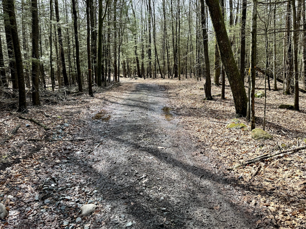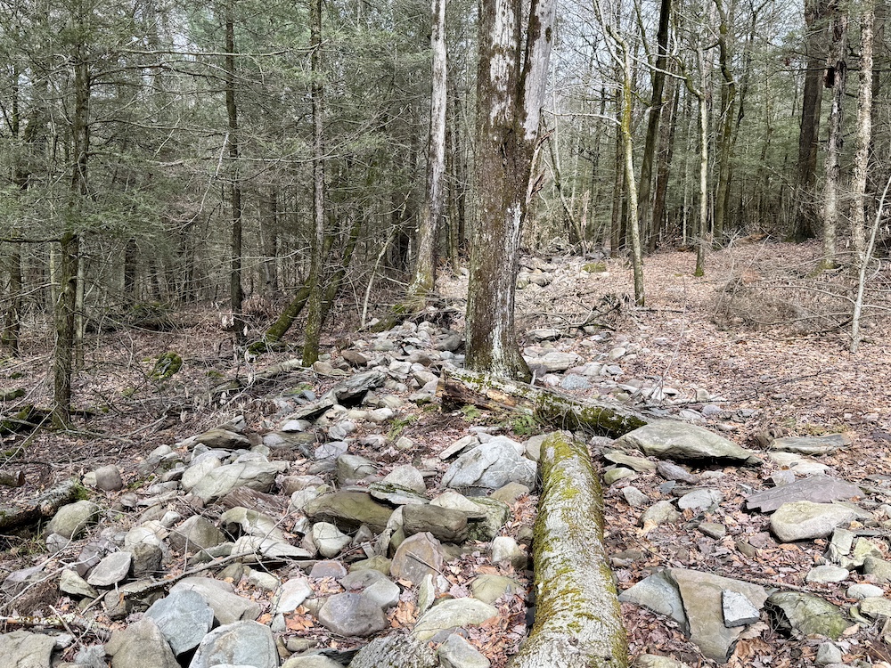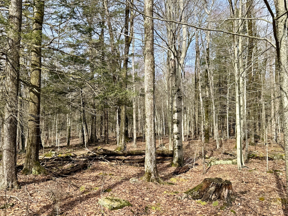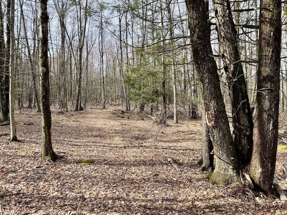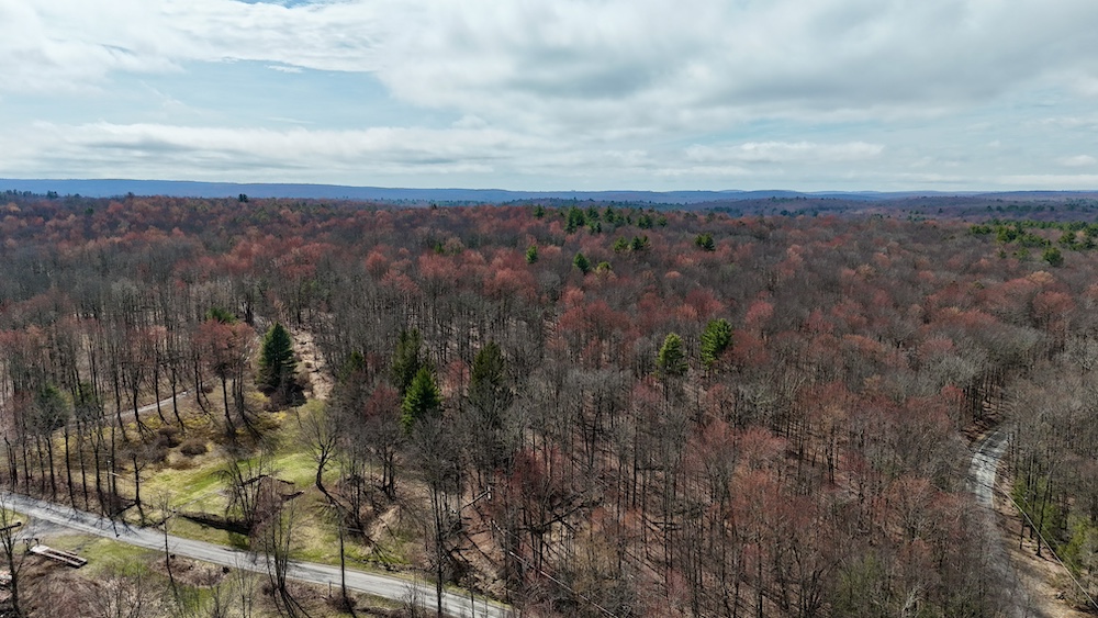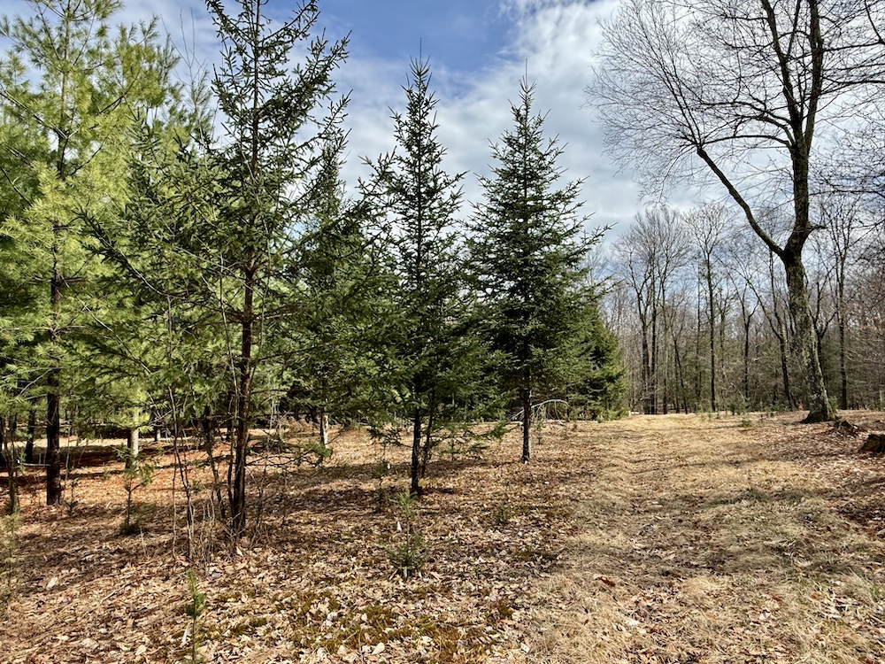 Entering the property on Cranberry Road, there is an easement that leads through the land to a neighboring property in Mountaindale. The road is approximately 3,100’ long and gives access to a well-laid-out trail system that meanders throughout the property. One of the first trails that you will see will lead to the north to a +/- 1acre clearing where there is a small Christmas tree farm. The next owner can take this to the next level or just enjoy family Christmas trees for years to come.