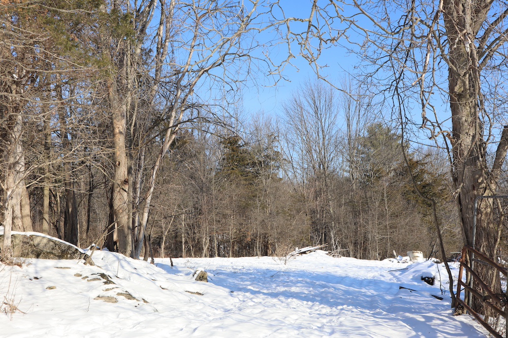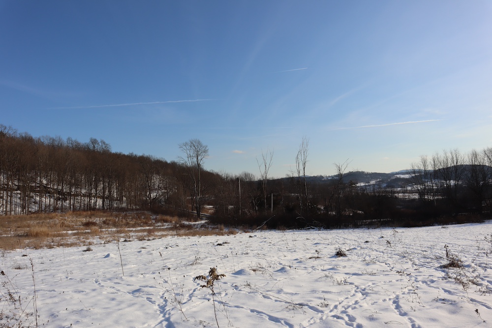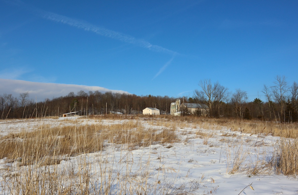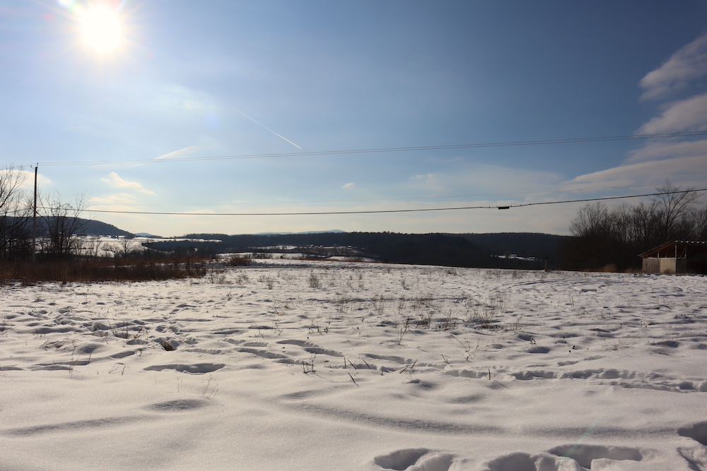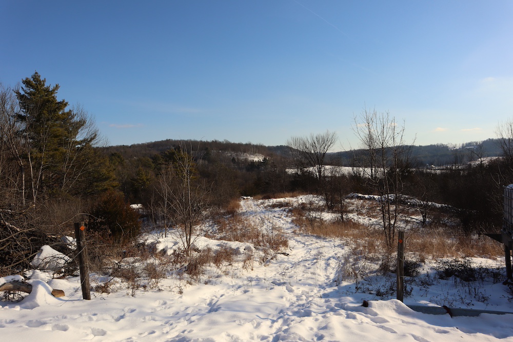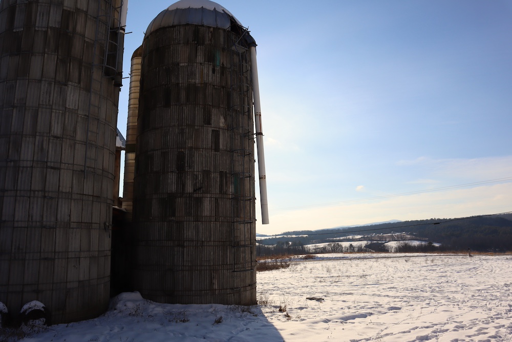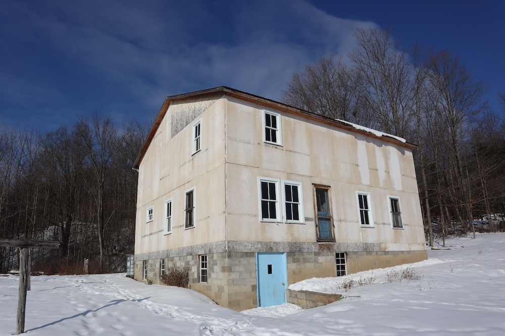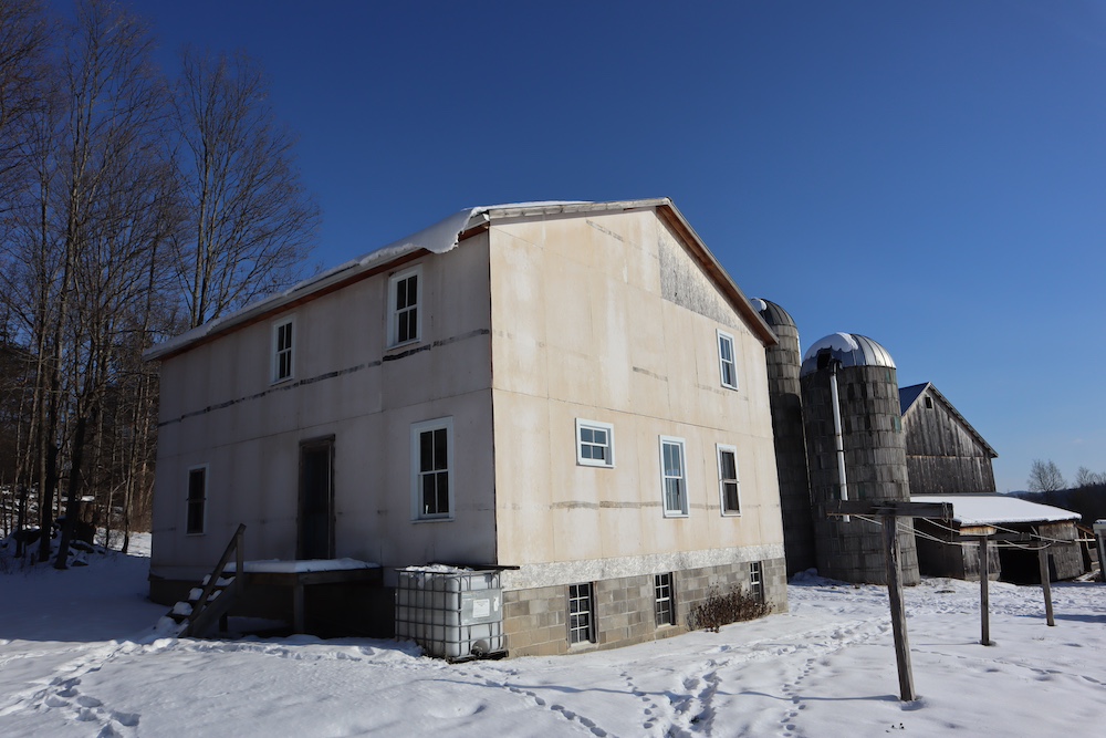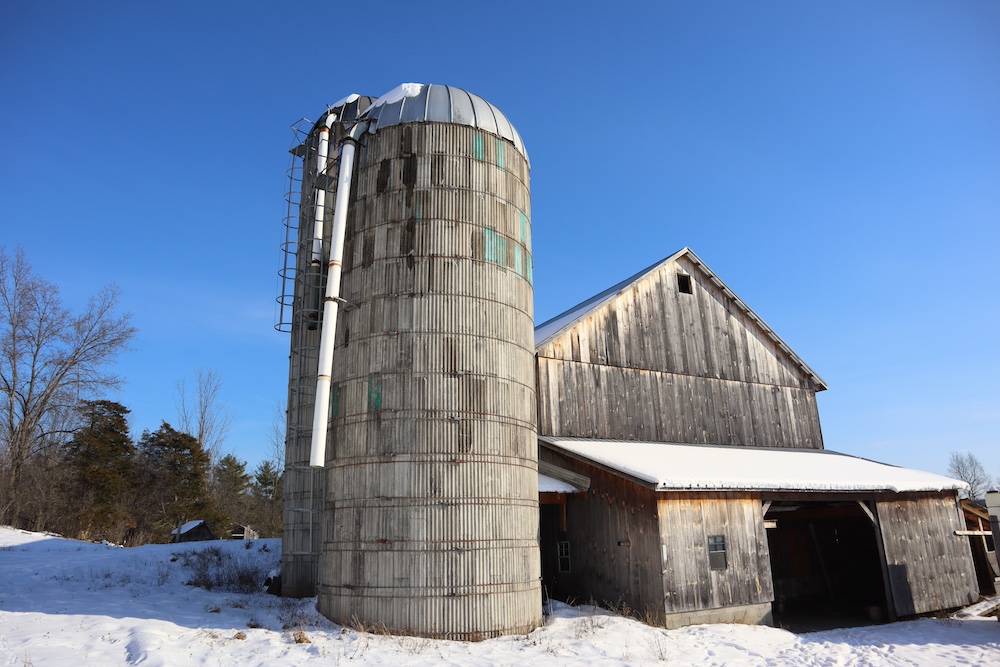 Perched on a hilltop with sweeping west-facing views near the Vermont border is this dairy and maple syrup farm, complete with house, barn, workshop, corncrib, milk processing building, 500 maple taps, trails, and pastures. The barn is set up for dairy with stantions and a gutter in place as well as several horse stalls. The massive hayloft provides ample space for storage and includes a grain bin. There are also two silos for grain/corn storage. Across the road from the barn is a large corn crib that could also be used for machine storage or modified for calves/heifers. The 3,450 sq. ft. farmhouse overlooks the farm and has an open floor plan and a large basement with great light. The house was built in 2020, but does not have electricity, plumbing, or a heating source. The property is a mixture of pasture and timber with roughly 41+ acres of open tillable/pastures. The timber consists of maple, red oak, cedar, and some cherry. There is moderate timber value. Currently, there are over 500 maple taps and collection lines in place for maple syrup production, which gravity feed to a sugar shack located behind the barn. Numerous other maple trees provide an opportunity for expansion of taps. Hunters, take notice, the property sets up well for deer and turkey with excellent cover and food. There is a small seasonal stream on the southeast area of the property. Down the hill from the barn is a separate milk processing building with a drilled well, electric, hot water, and milk processing equipment in place. The property runs uphill from west to east with an elevation gain of 220’ to a maximum elevation of 320’.