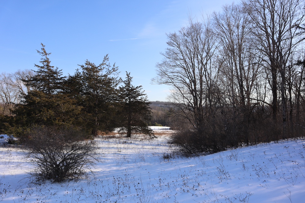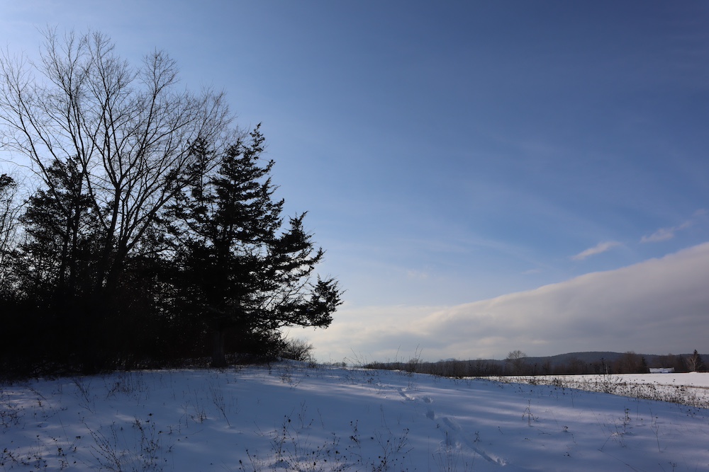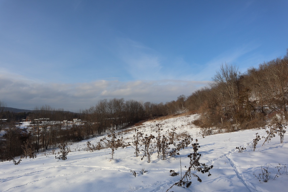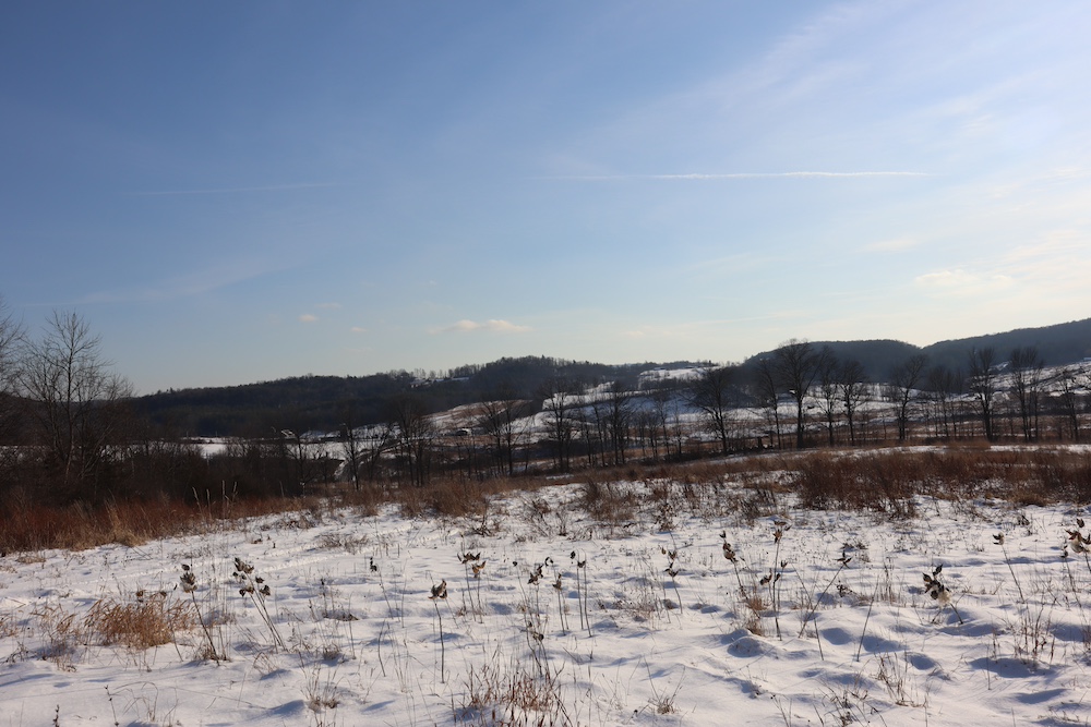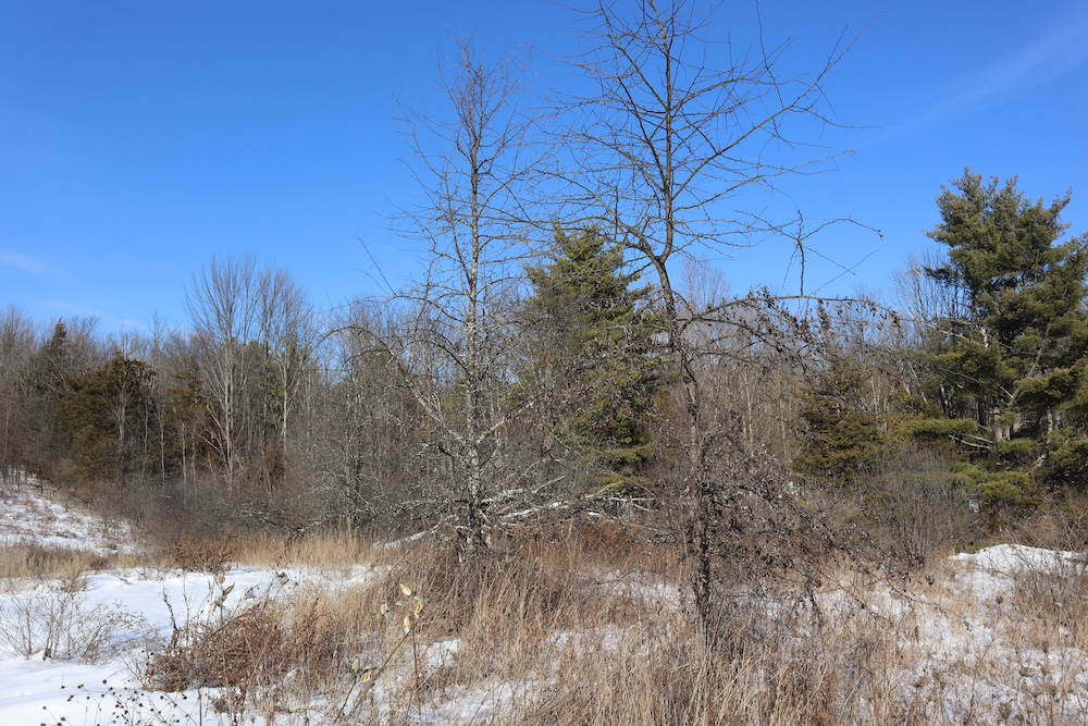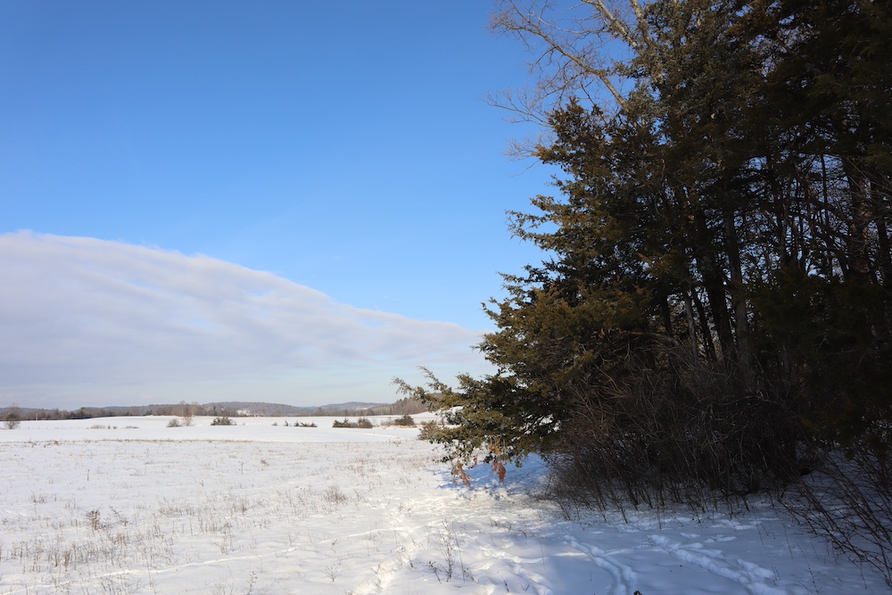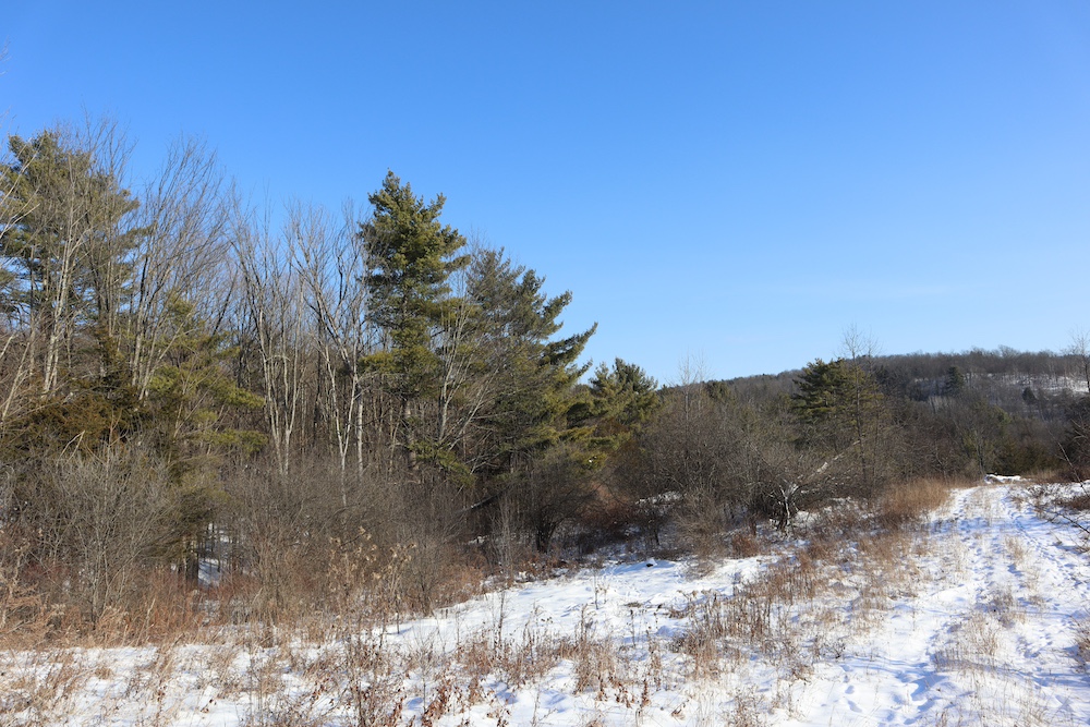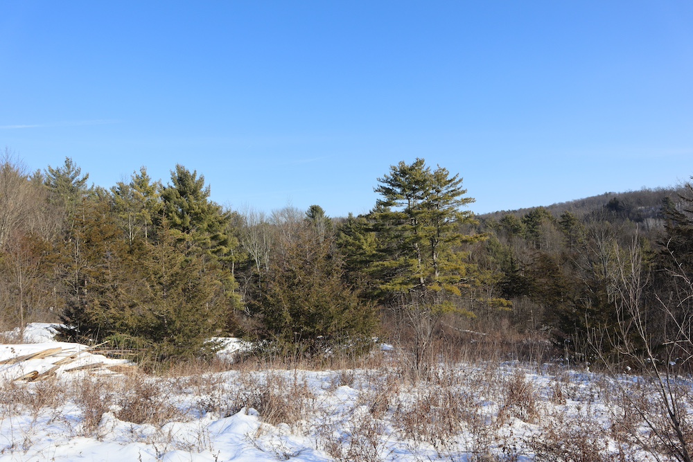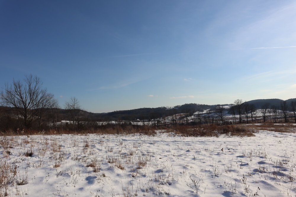 Perched on a hilltop with sweeping west-facing views near the Vermont border is this dairy and maple syrup farm, complete with house, barn, workshop, corncrib, milk processing building, 500 maple taps, trails, and pastures. The barn is set up for dairy with stantions and a gutter in place as well as several horse stalls. The massive hayloft provides ample space for storage and includes a grain bin. There are also two silos for grain/corn storage. Across the road from the barn is a large corn crib that could also be used for machine storage or modified for calves/heifers. The 3,450 sq. ft. farmhouse overlooks the farm and has an open floor plan and a large basement with great light. The house was built in 2020, but does not have electricity, plumbing, or a heating source. The property is a mixture of pasture and timber with roughly 41+ acres of open tillable/pastures. The timber consists of maple, red oak, cedar, and some cherry. There is moderate timber value. Currently, there are over 500 maple taps and collection lines in place for maple syrup production, which gravity feed to a sugar shack located behind the barn. Numerous other maple trees provide an opportunity for expansion of taps. Hunters, take notice, the property sets up well for deer and turkey with excellent cover and food. There is a small seasonal stream on the southeast area of the property. Down the hill from the barn is a separate milk processing building with a drilled well, electric, hot water, and milk processing equipment in place. The property runs uphill from west to east with an elevation gain of 220’ to a maximum elevation of 320’.