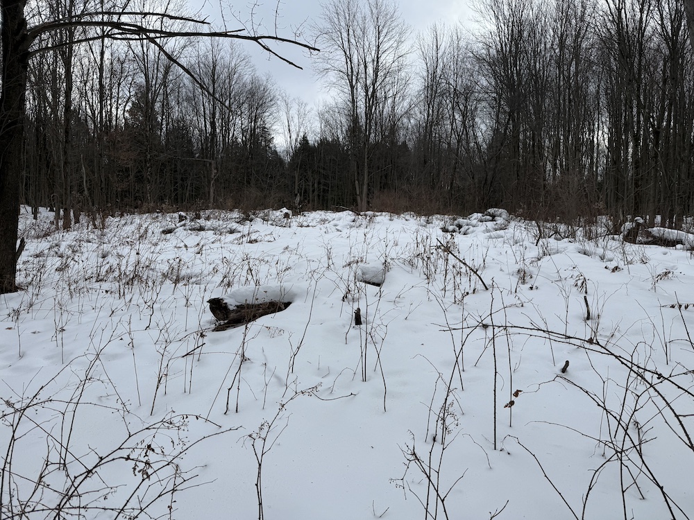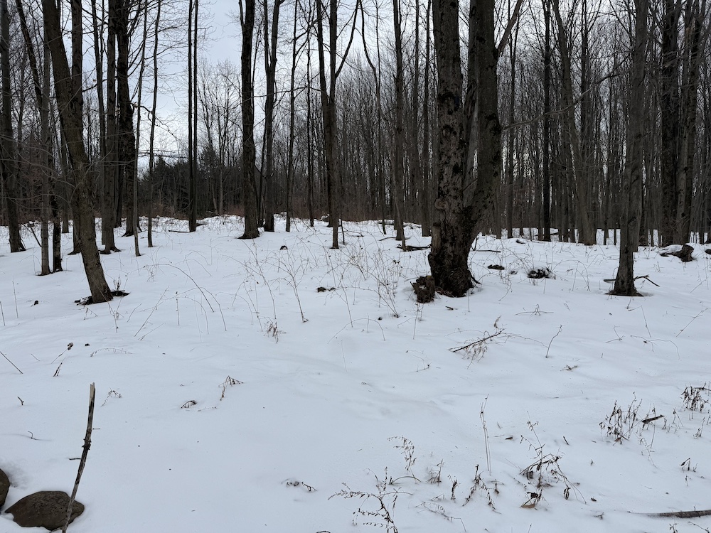 - Natural clearing surrounded by hardwoods suitable for a future home or cabin site