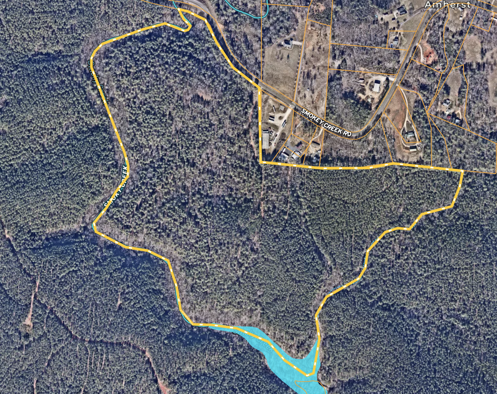 - Smokey Creek forms the property line
