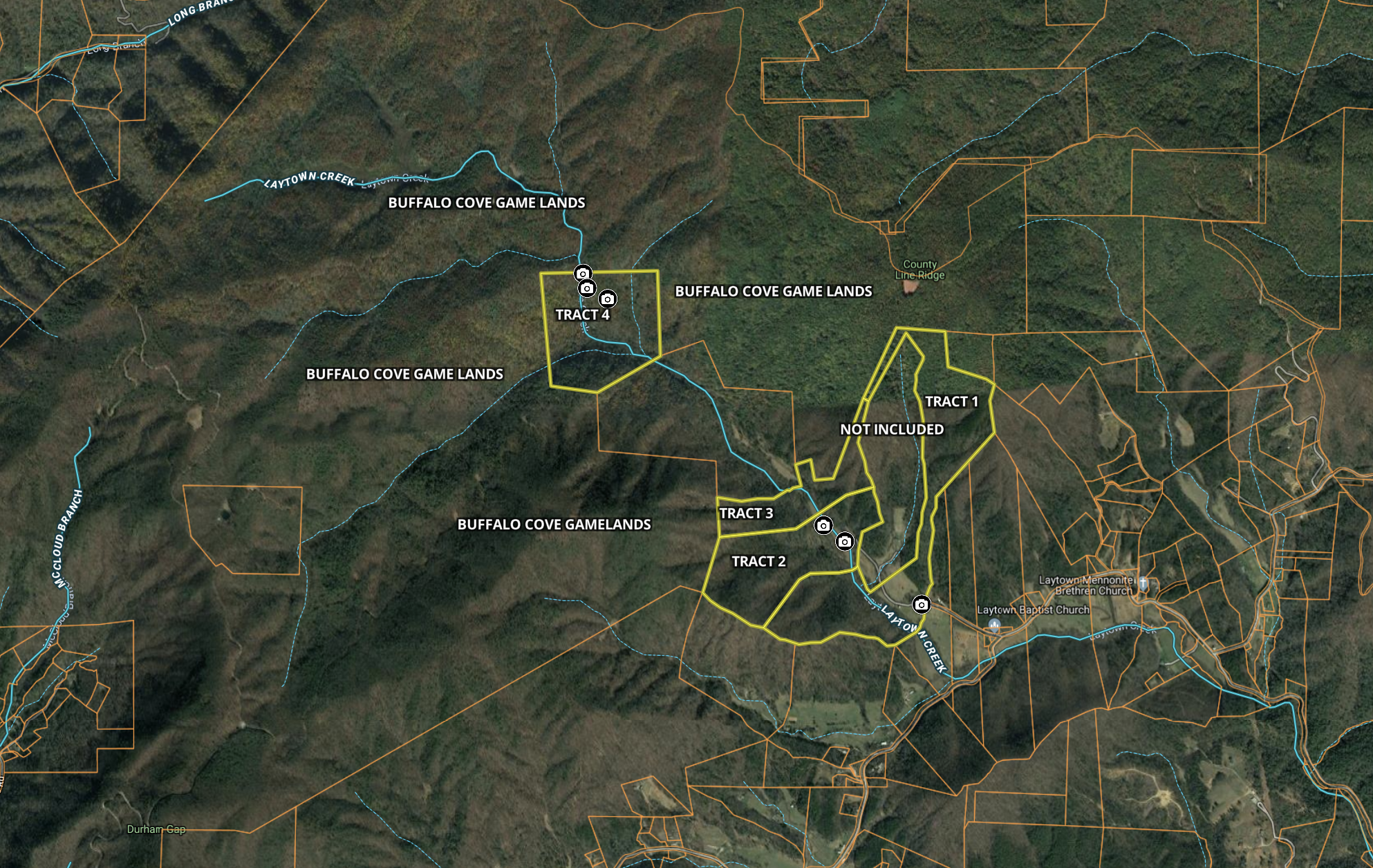 - Surrounded on three sides by the Buffalo Cove Game Lands