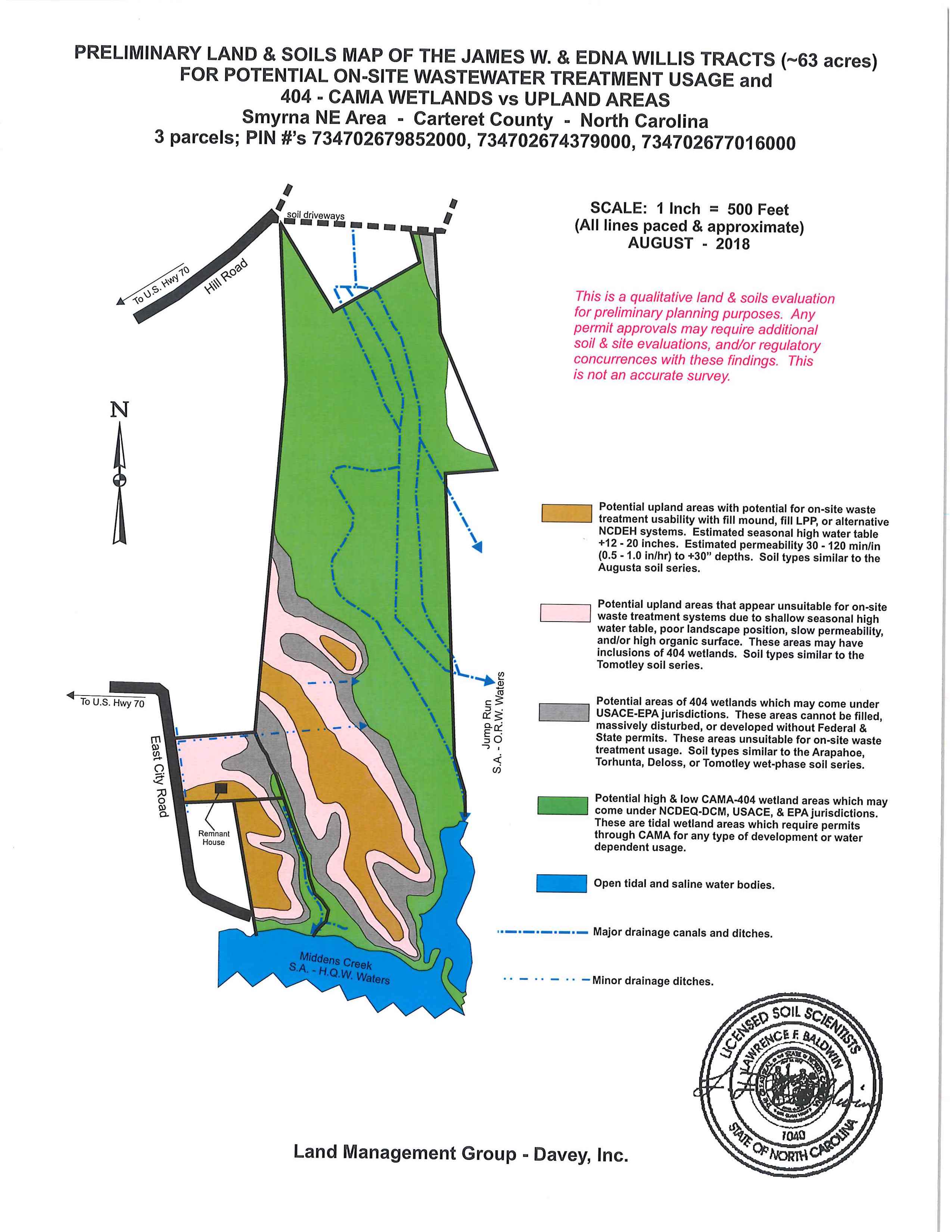 Located in the community of Smyrna, this potential waterfront lot offers a 1600’ water frontage overlooking Jarrett Bay. Down a quiet gravel road, this lot can be accessed via an easement off Highway 70. A soil test is needed to confirm whether or not septic soils are suitable for building your home here, but it appears as though they could be as per USGS maps. The land is wooded and offers privacy with easy access down highway 70 to Morehead City and Beaufort. The property also offers easy access to offices in Morehead City, Beaufort and New Bern on several major corridors without getting caught in traffic from Harrisons Creek Road into downtown New Bern on weekday mornings. Call today for more information about this amazing lot!