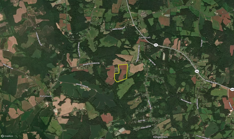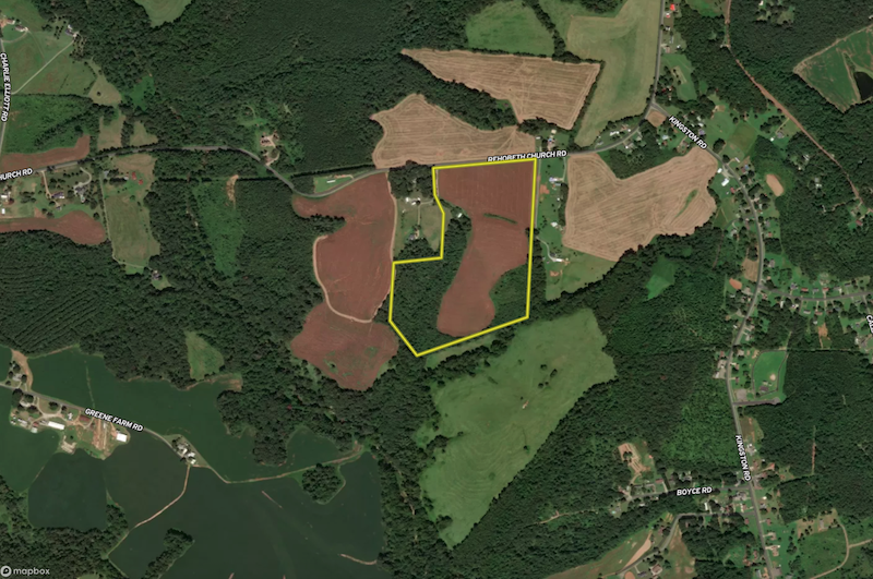 The land features rolling topography and roughly 1,000± feet of frontage along Rehobeth Church Road, with county water available at the road and above-ground electricity already on-site. An old homestead remains on the property with little value but adds a touch of history and potential for future use.