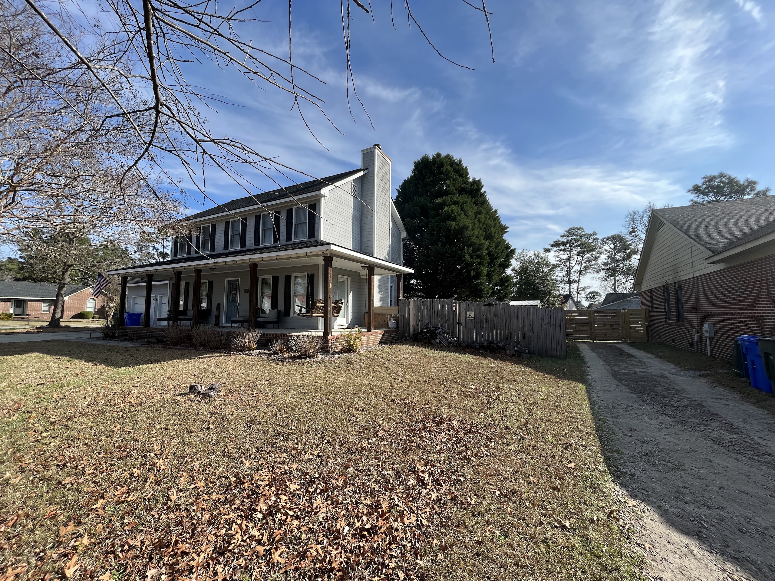 Look at this very well-kept 2-story, 3 bedroom 2.5 bath home close to all your needs and only 15 minutes to the All-American gate to Fort Bragg. This home has a covered front porch extending across the whole front and partially wrapping around the side to another entrance into the living room. A concrete driveway leading up to the sheetrocked 2-car garage with a rear service door straight to the fenced-in backyard makes shuffling kids and pets easy. As you enter the home, the left side is a very open kitchen with an island and flowing to the dining area with a bay window to the backyard. On the opposite side, the open living area leads to double French doors out to the deck. The laundry room and garage door are conveniently off the kitchen dining area, a pantry, and a half bath. All bedrooms and 2 full baths are on the second-floor level. Give us a call today for your private showing.