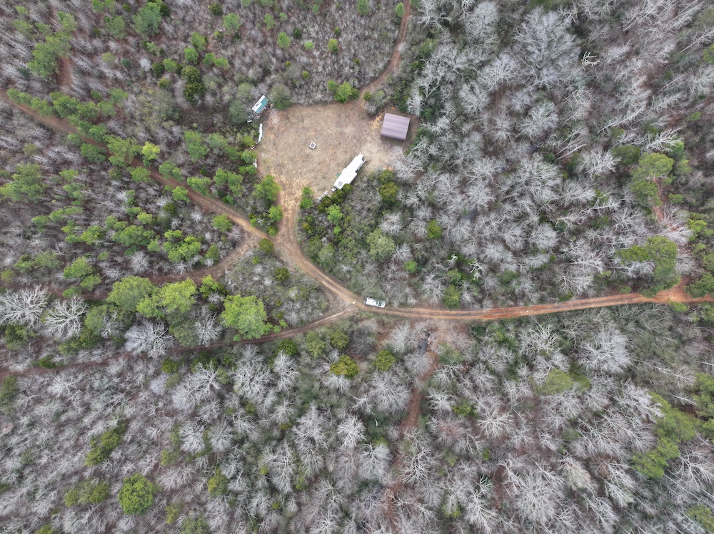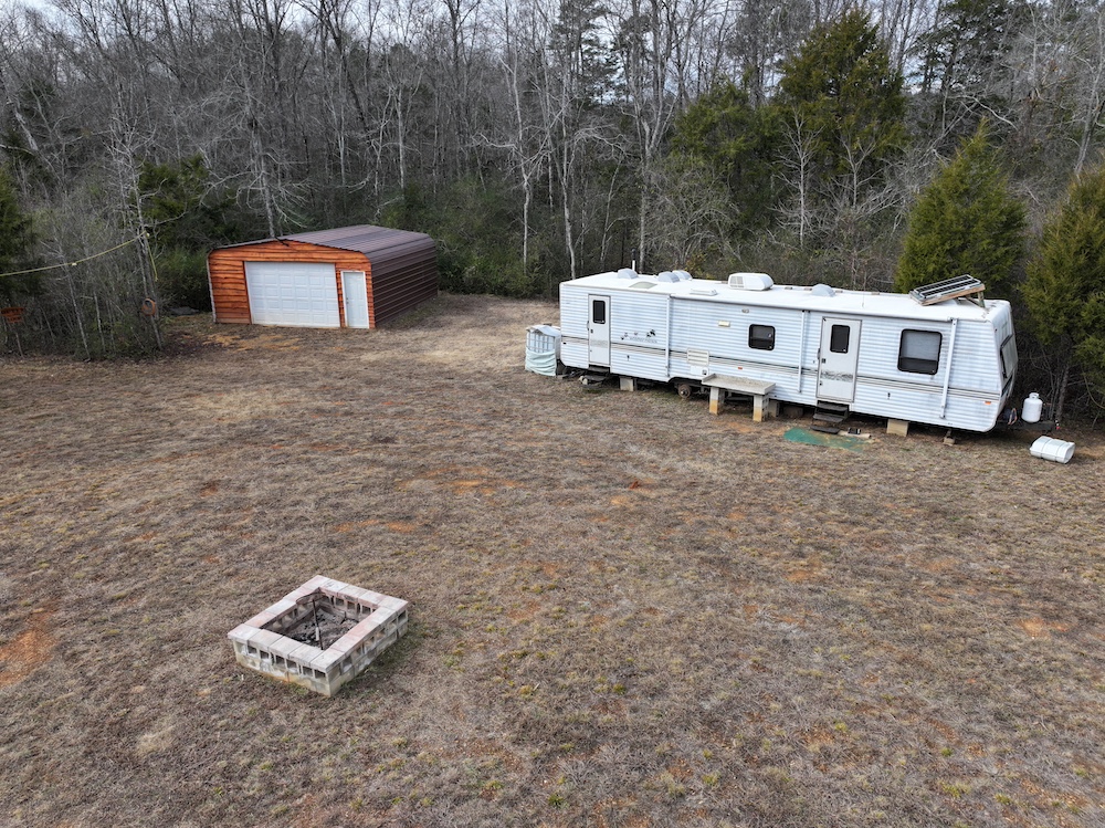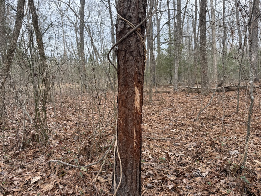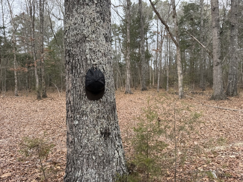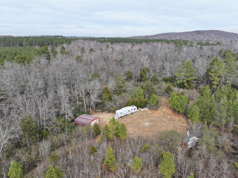Improvements on the property include an established deer camp area that provides a functional base for hunting activities. A storage shed and a packed woodshed are also included and convey with the property. Two box blinds are strategically positioned and will remain with the land. The property shows consistent signs of deer activity, including scrapes and rubs observed throughout the tract. In addition to deer hunting, the habitat and terrain also support opportunities for turkey hunting.
