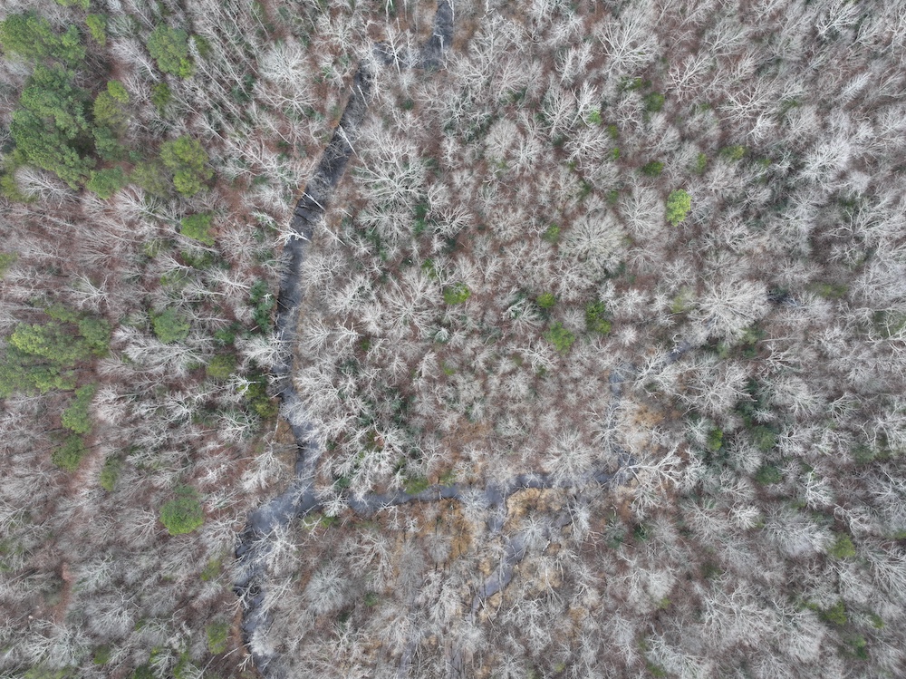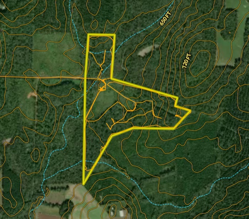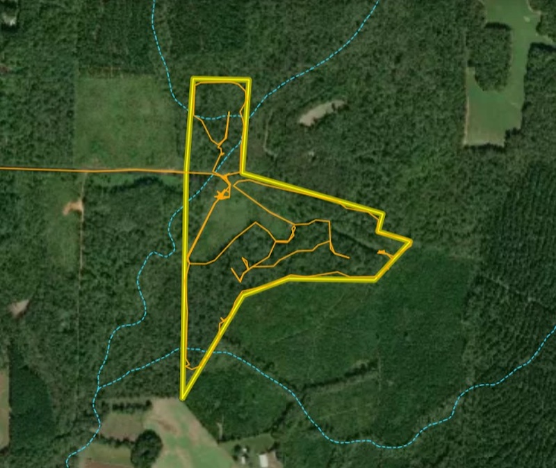 An extensive trail system provides excellent access throughout the property. A border trail runs along the perimeter, allowing for easy navigation and maintenance, while multiple interior trails connect key areas such as food plots, hunting locations, and the creek. This trail layout allows for efficient movement by foot, ATV, or utility vehicle.