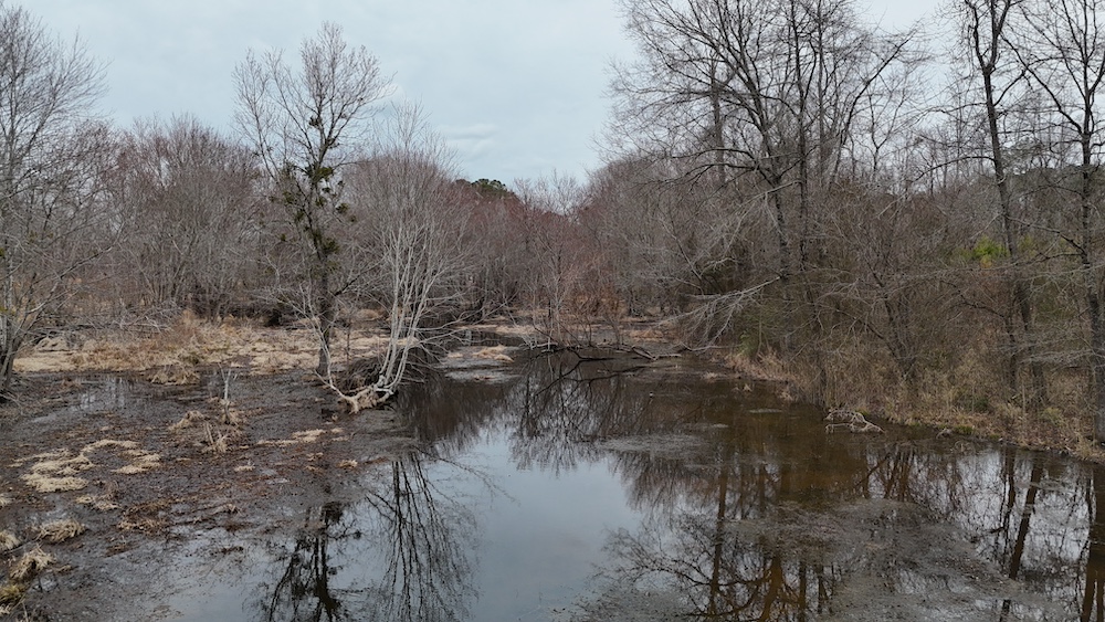 Lying just below the companion tract along Walnut Grove Church Road, this 9.88± acre parcel settles into the lower end of the field where the cultivated ground tapers toward the Cypress Creek bottom. The terrain softens and falls away here, creating a sheltered feel and a natural transition from open field into a diverse mix of wetland cover, early successional growth, and mature timber along the creek corridor. The upper portion offers manageable tillable acres that could continue in rotation, be seeded into pasture, or serve as a clean slate for food plots and wildlife openings, while the lower ground provides thick bedding and natural screening that many buyers spend years trying to create.