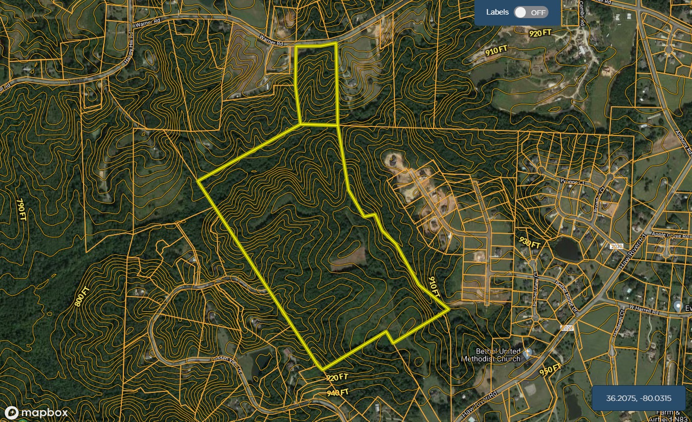 Here is a beautiful large tract in the ETJ of Oak Ridge. This area of Guilford County is growing while still maintaining its small-town charm. Made up of a 13-acre tract with approximately 500 feet of road frontage on Warner Rd that gives access to a larger 93-acre tract. There is a small creek that runs through the property to go along with hardwood ridges to provide a very picturesque setting. Large deer and turkey can be found on the property. There are a couple of food plots already in place. The property is currently in a tax-deferred program. Homes in the immediate area are generally selling for approximately $500,000 and up. An older home is located on the smaller tract that is being sold as-is and offers no value. Homes in the area are on well and septic. Downtown Oak Ridge can be reached in under 10 minutes. Piedmont Triad International Airport is only 15 minutes away.