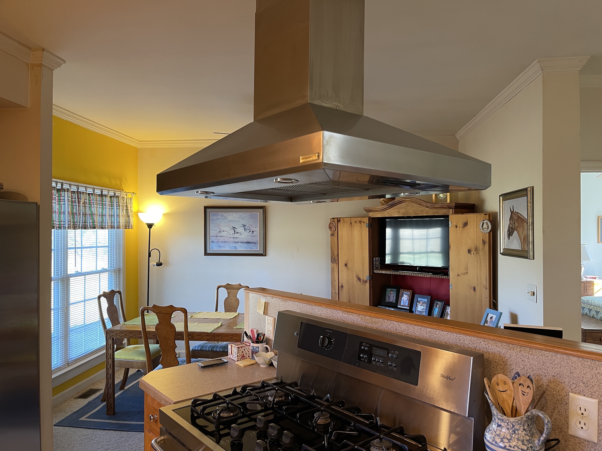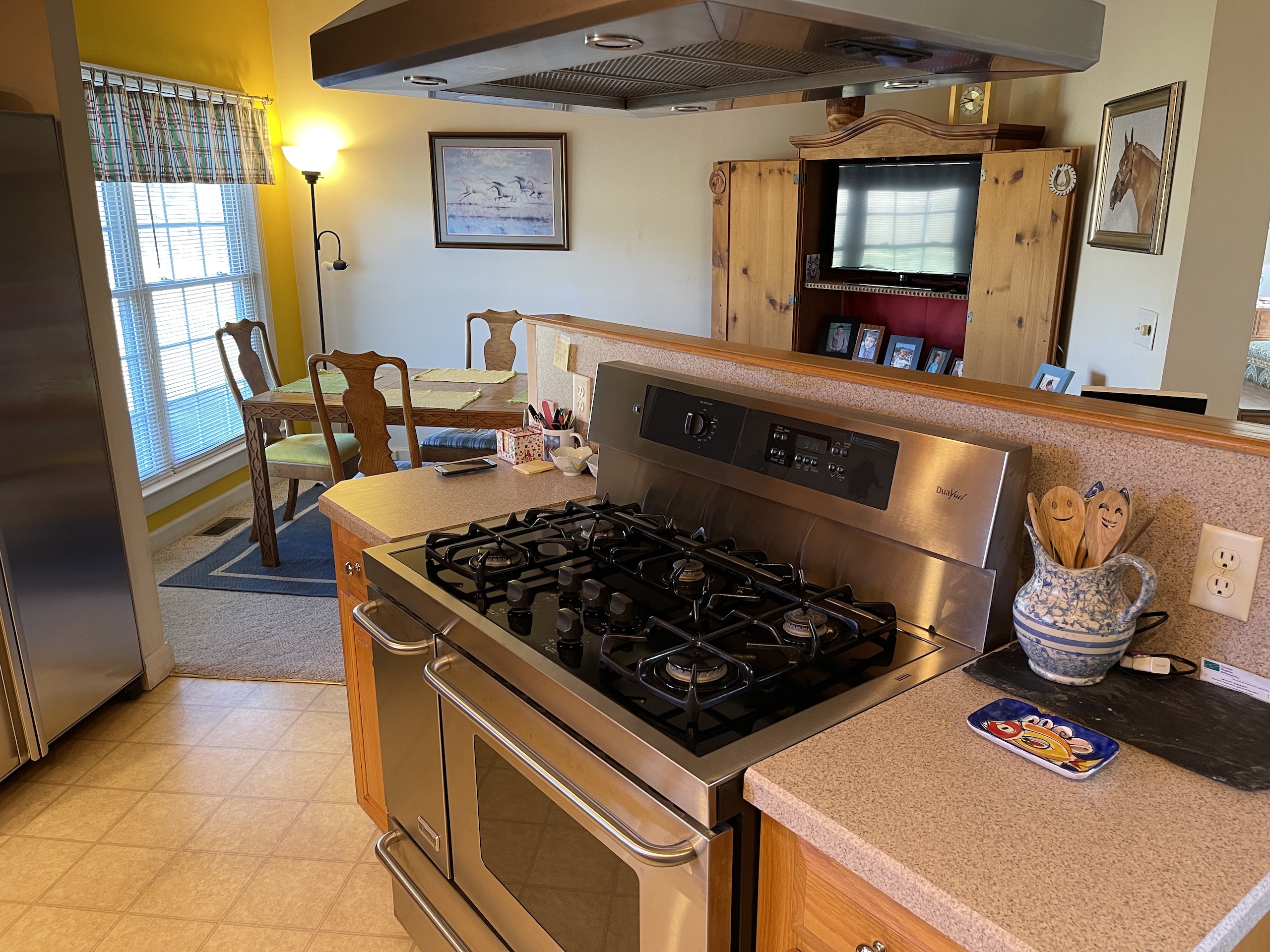 - The kitchen range is gas and electric