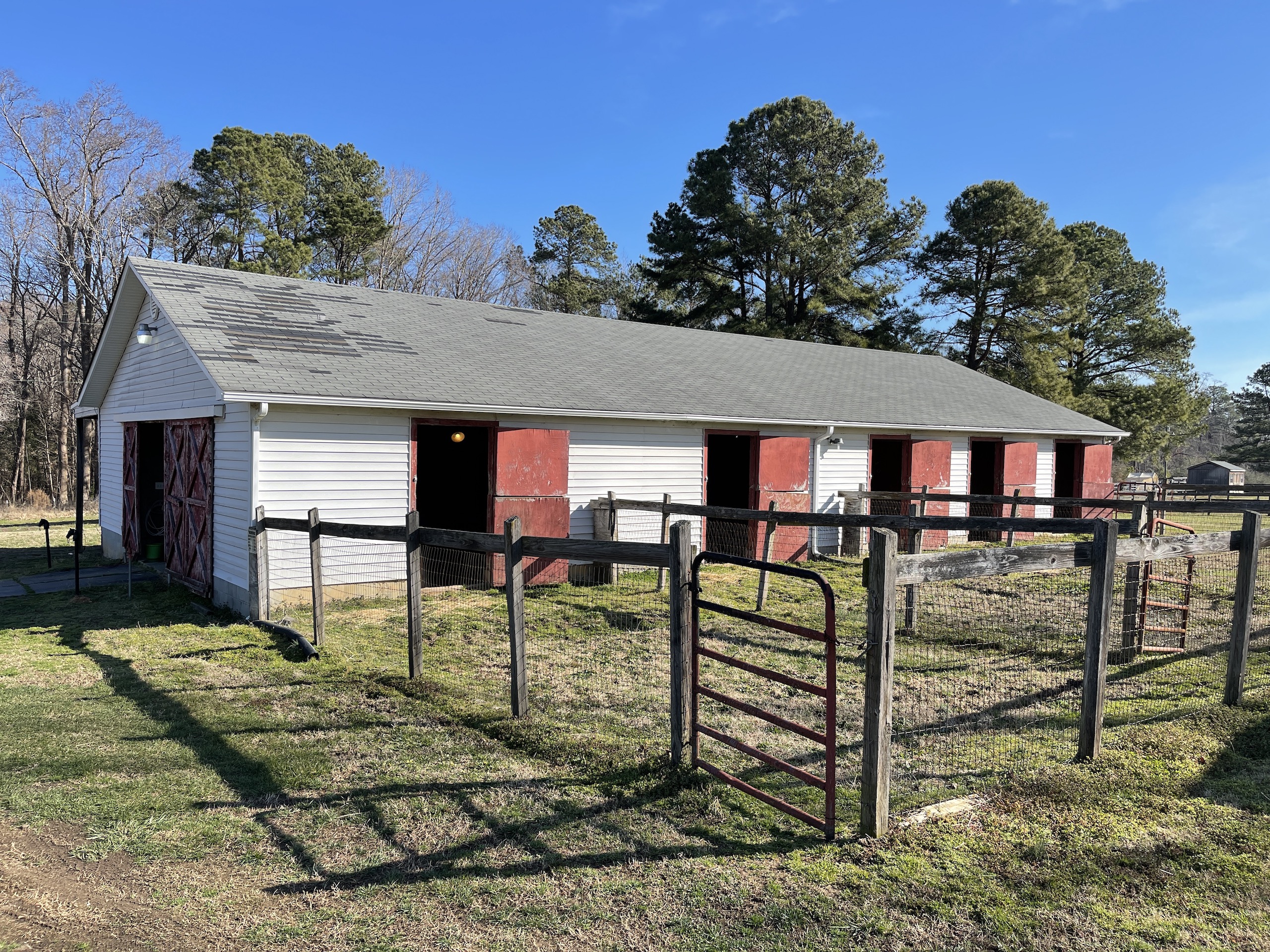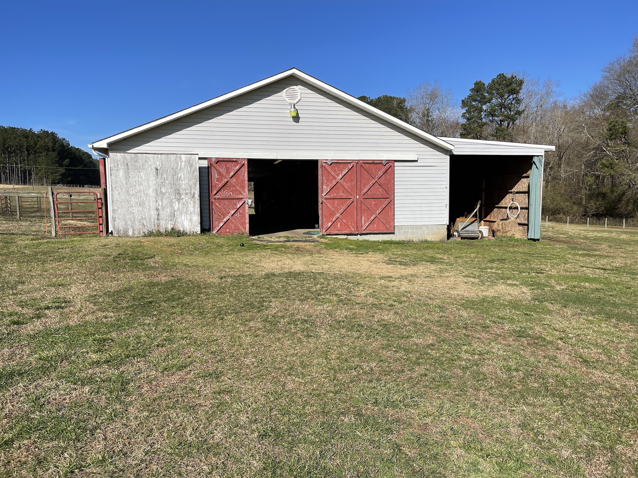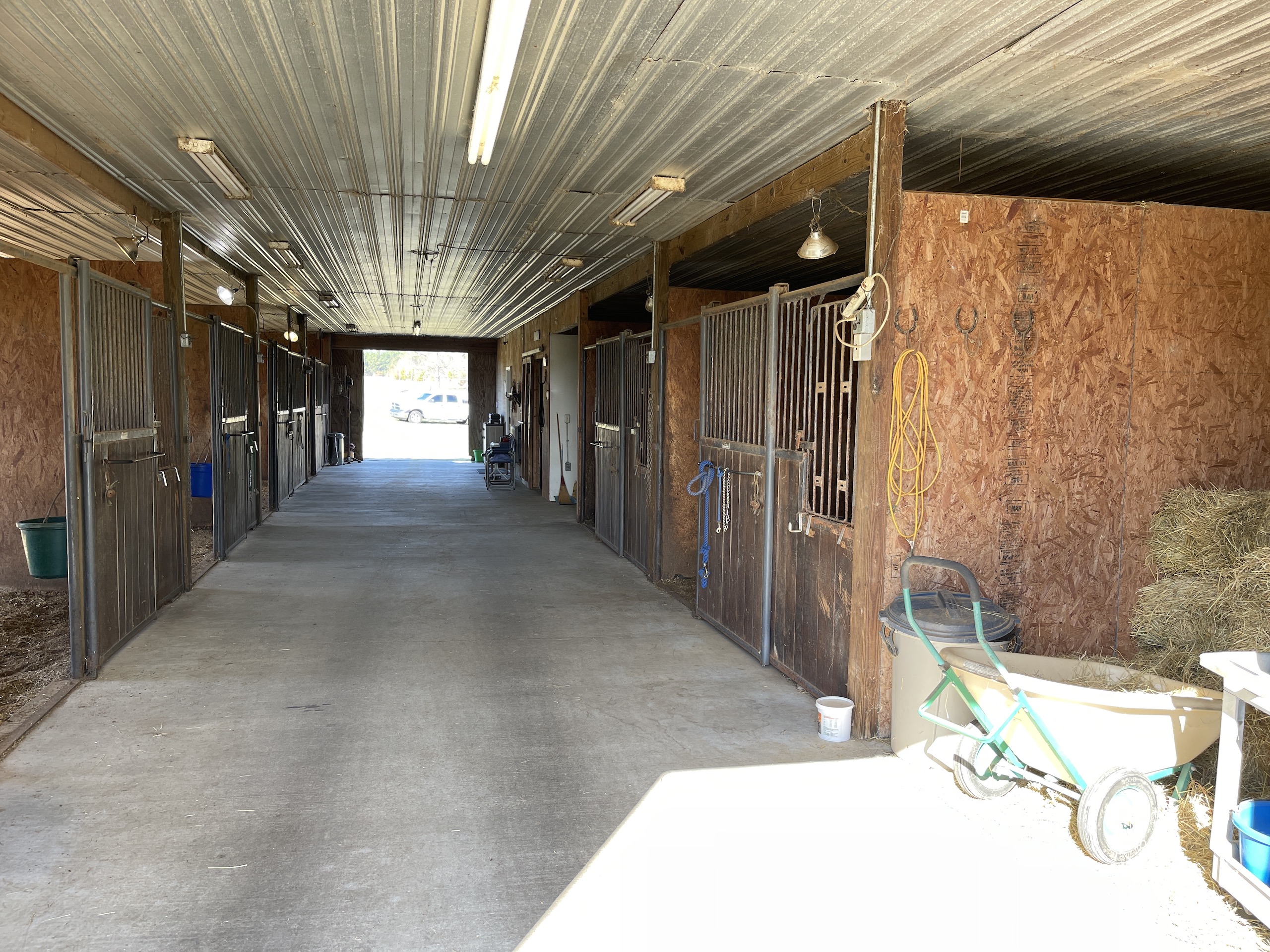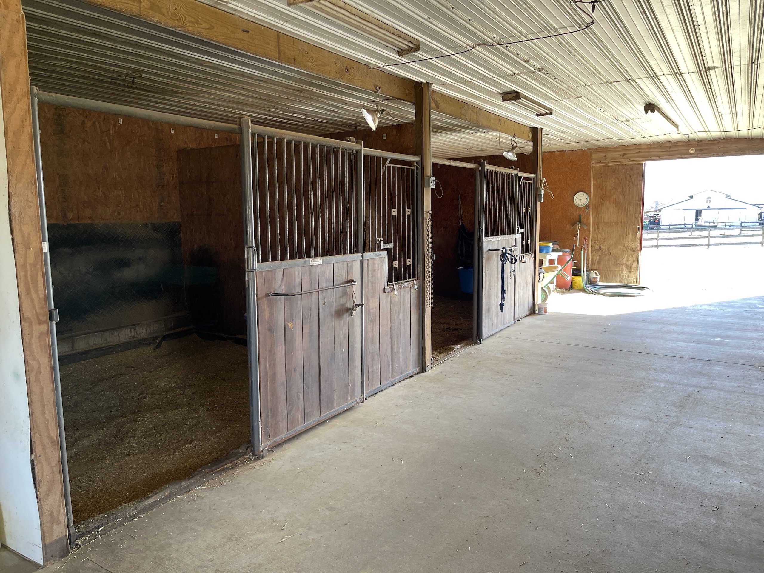 - Nice horse barn with concrete wash bay and concrete aisle way