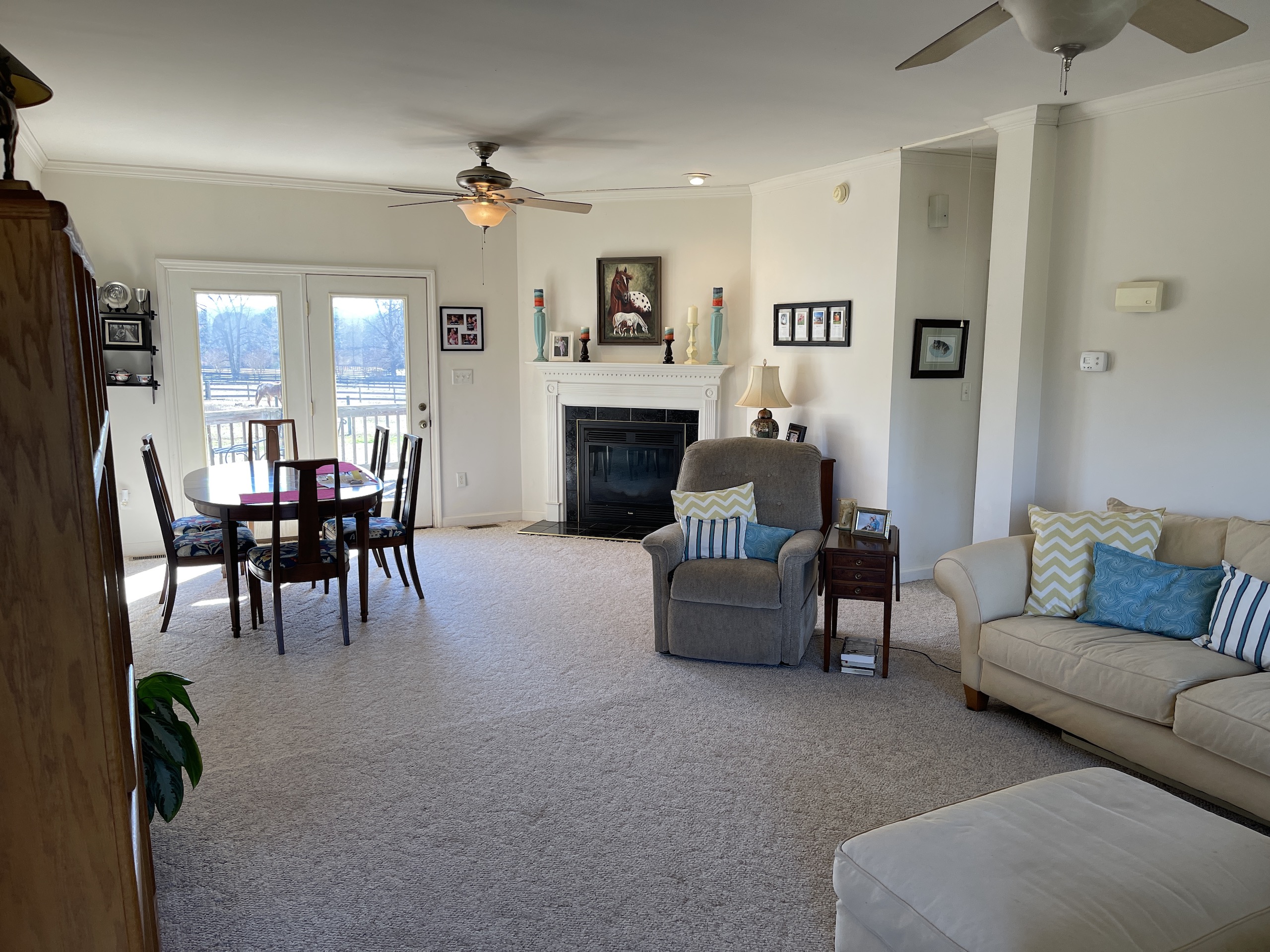 The home offers 3 bedrooms and 2 full baths, and a detached 2 car garage. There is a covered front porch and a large rear deck, too. All the appliances are stainless steel and convey with the property. Outside is a barn with a concrete main aisle way, 5 large single horse stalls and two mare/foal stalls. There is a nice office or tack room, a wash bay with hot and cold water, and an area to store all your hay. There is even a fly spray system in the barn to help keep the flies off your livestock. There are fenced and gated pastures all over the farm and a water source in each pasture.
