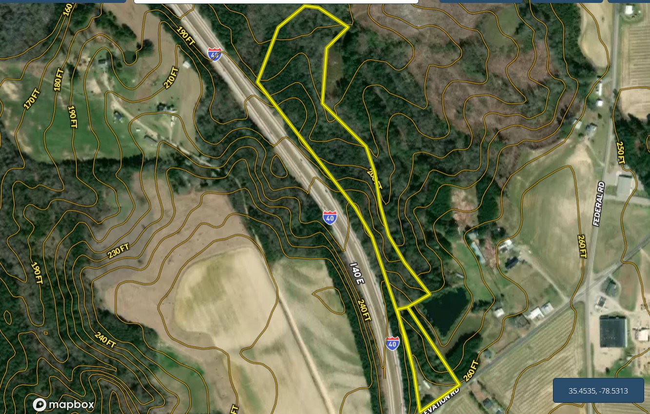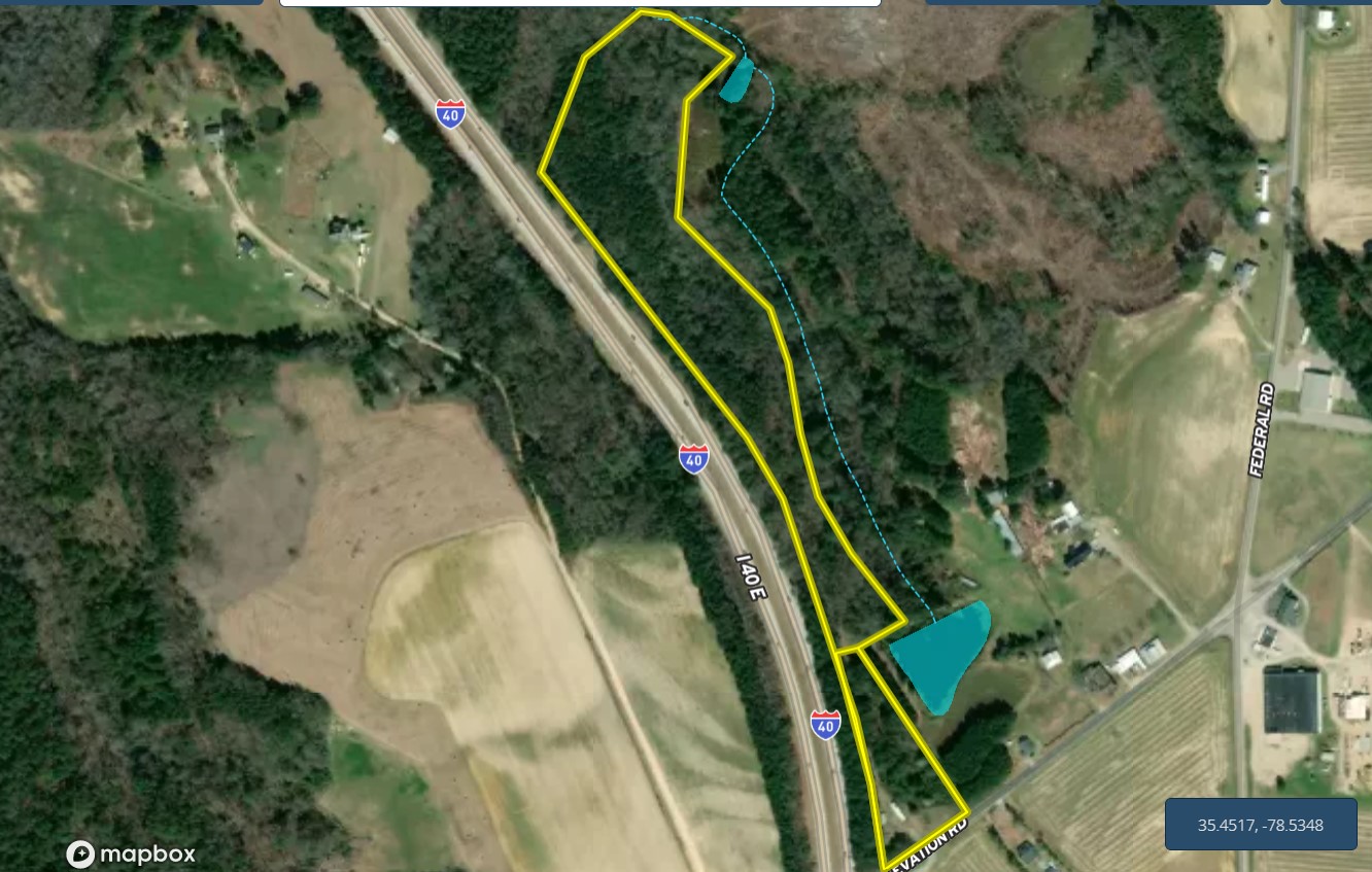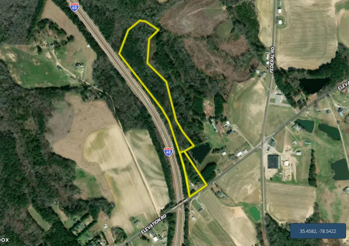 Location, location, location is the right description for this property. 2 parcels are being sold together with easy access to I-40 and I-95. Over 300 feet of road frontage on Elevation Rd provides easy access to this parcel that goes over 2500 feet deep from the highway. There is an old mobile home on the property that was used as a rental at one time by the landowner, but it no longer has any value. However, there is a 3 bedroom septic system that was put in during 2010 and has been used very little. County water and electricity hookups can be found at the road. The back of the property is fully wooded, with a small creek running through the property. The timber is older, with many trees having a diameter of close to 2 feet. To the north of the property is a 50-acre parcel of solid timber owned by a timber company. This is a great property to build your dream home while having space in the back for recreation. The current owner has used it for a gun range while deer and turkey can be found on the property, providing plenty of hunting opportunities.