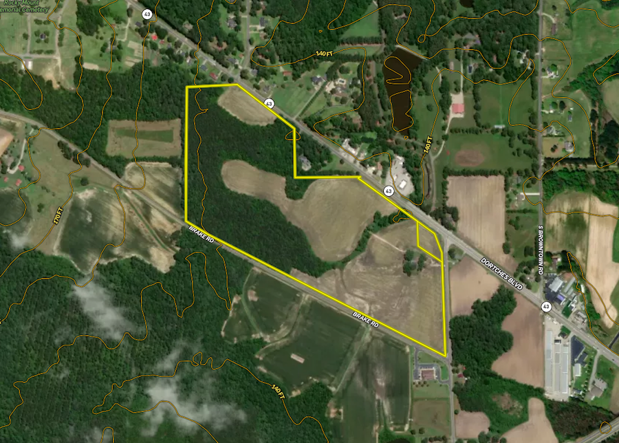 Massive investment potential! Take a look at this vast acreage located within the town limits of Dortches and within one mile of the City of Rocky Mount! Here, you will find over 1,600 feet of total road frontage from two directions, including the main thoroughfare between Rocky Mount and Red Oak, Highway 43. Nash County has been exploding with development lately, and the trend is not slowing down due to the close proximity to Wake County, Interstate 95 and US Highway 64. The NCDOT will soon begin widening Highway 43, allowing for more future growth. With county water available, power lines on all three roads and fiber optic cable, the opportunities are endless. Take advantage of this unique opportunity to be a part of the growth of this community! The entire property's soils have been tested by a licensed soil scientist, showing that there is an area on the eastern edge that would be suitable for septic, although the majority of this lot is not. This is a preliminary lot that has been virtually divided from a larger property. It will require a survey prior to settlement which will be the responsibility of the buyer. There is an active farm lease, and it will continue to be farmed in 2024. A licensed North Carolina Real Estate Agent must be present during all showings. If you are interested or have any questions, please contact Dillon Eckert at 252-717-9788 or Dillon.eckert@whitetailproperties.com.