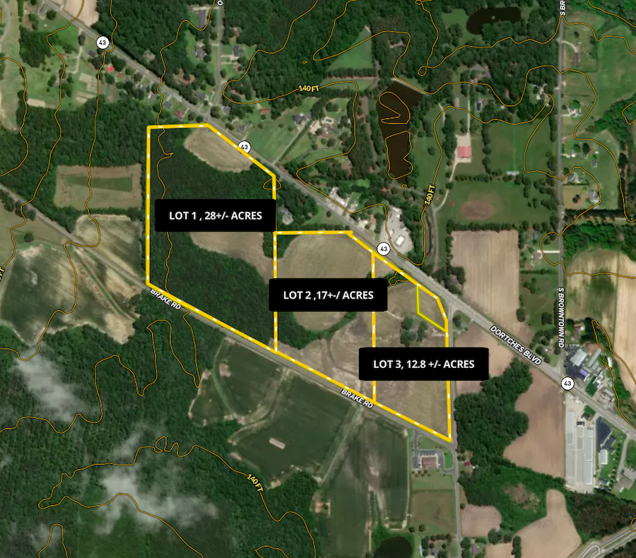 Massive investment potential! Take a look at this vast acreage located within the town limits of Dortches and within one mile of the City of Rocky Mount! Here, you will find over 1,000 feet of total road frontage from two directions, including the main thoroughfare between Rocky Mount and Red Oak, Highway 43. Nash County has been exploding with development lately, and the trend is not slowing down due to the close proximity to Wake County, Interstate 95 and US Highway 64. The NCDOT will soon begin widening Highway 43, allowing for more future growth. With county water available, power lines on all three roads and fiber optic cable, the opportunities are endless. Take advantage of this unique opportunity to be a part of the growth of this community! The entire property's soils have been tested by a licensed soil scientist, showing that over half of the property would be suitable for septic. This is a preliminary lot that has been virtually divided from a larger property. It will require a survey prior to settlement which will be the responsibility of the buyer. There is an active farm lease, and it will continue to be farmed in 2024. A licensed North Carolina Real Estate Agent must be present during all showings. If you are interested or have any questions, please contact Dillon Eckert at 252-717-9788 or Dillon.eckert@whitetailproperties.com.