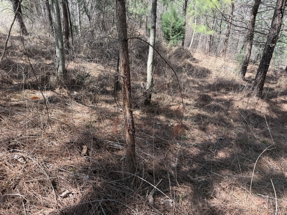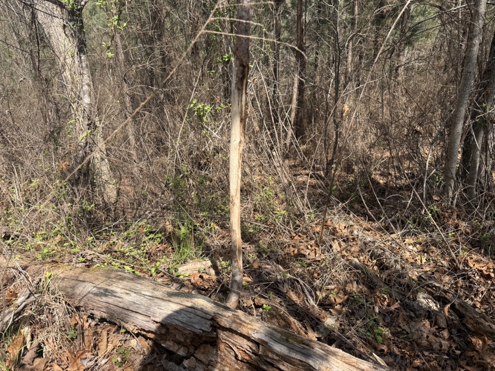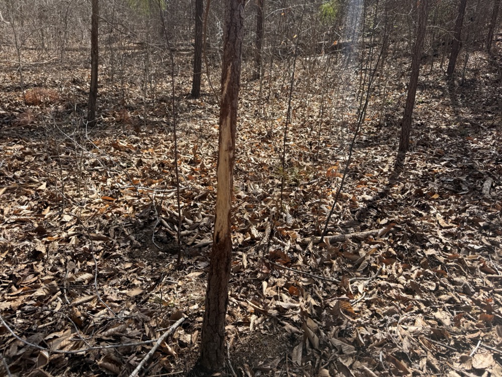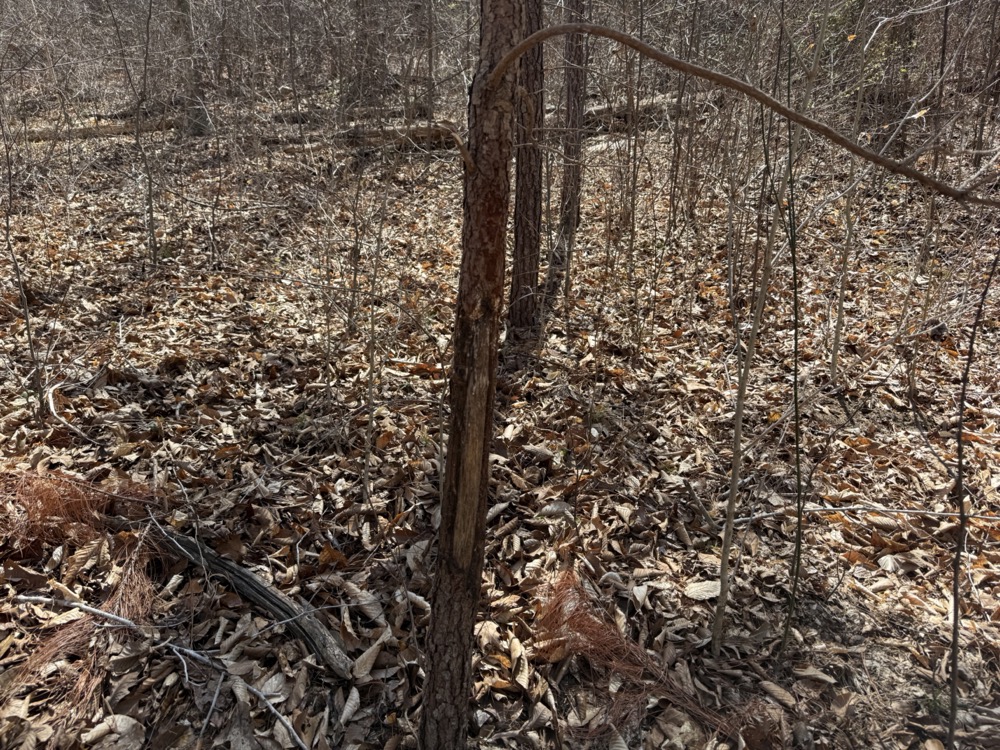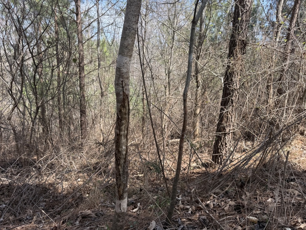 Wildlife activity is evident throughout the tract. The combination of cover, water, and natural food sources creates an environment that supports deer and turkey populations. Observations on the property include rubs, scrapes, and turkey scratching, indicating consistent use by wildlife. This makes the property suitable for hunting or general outdoor recreation.