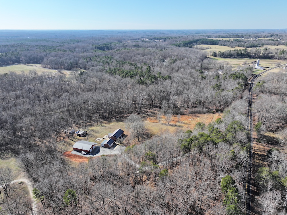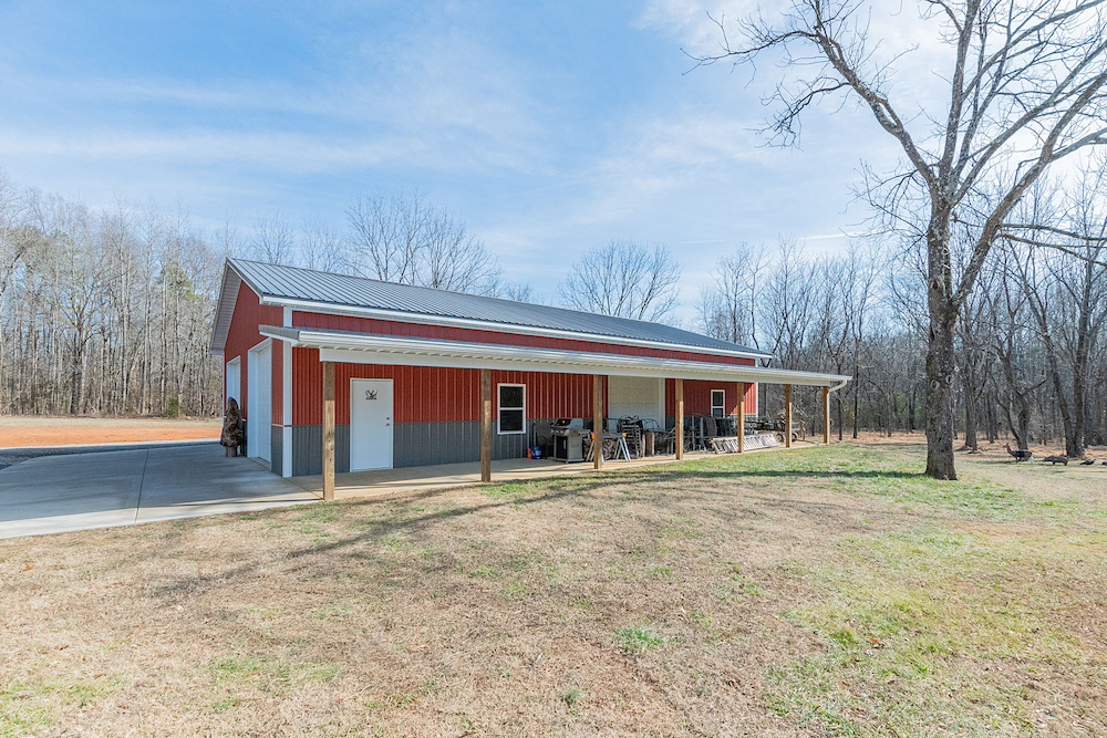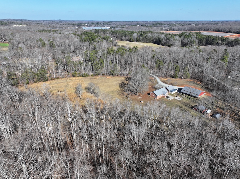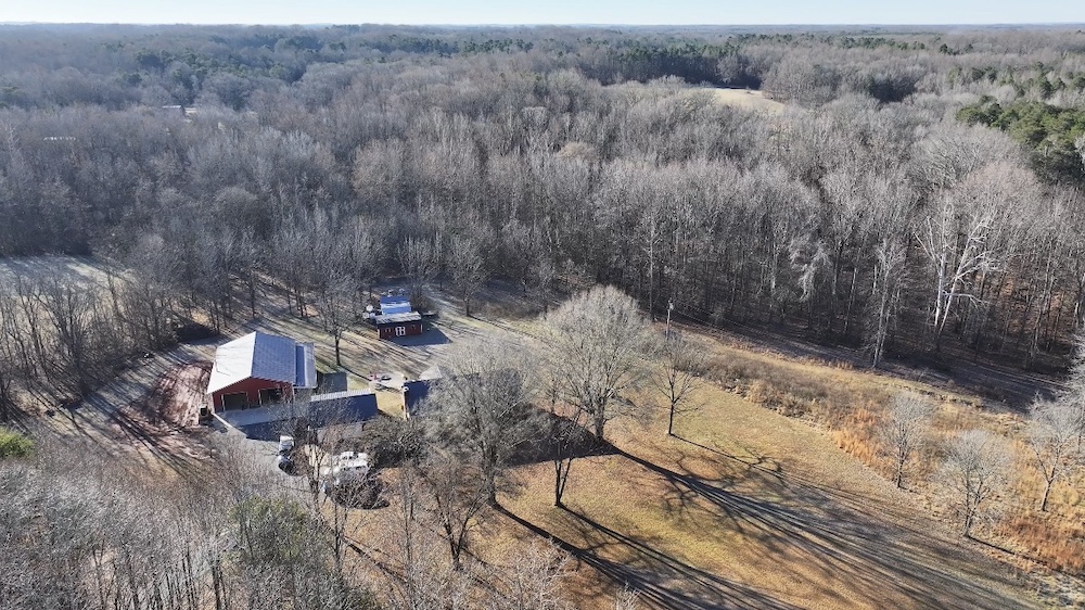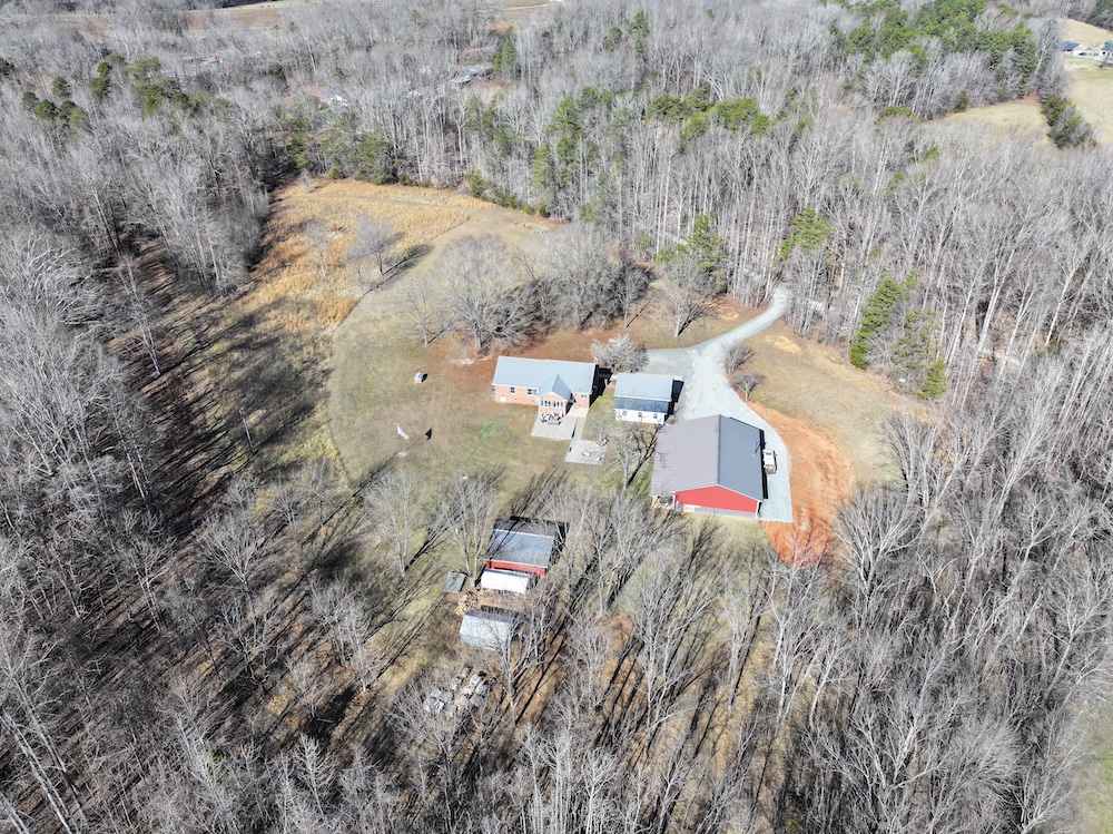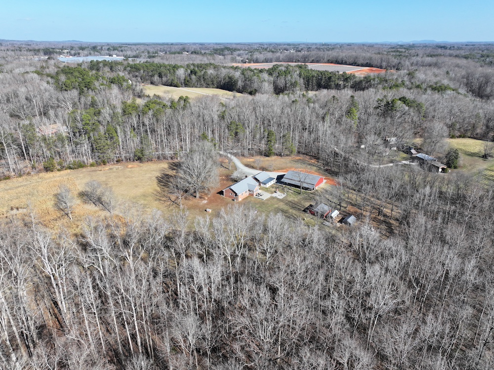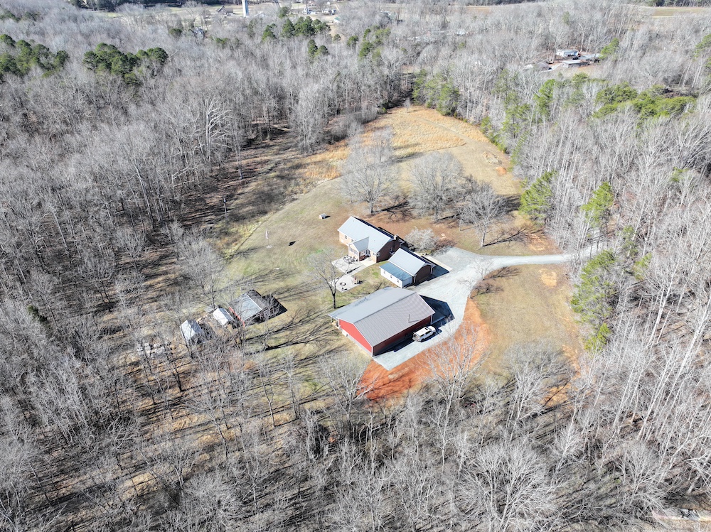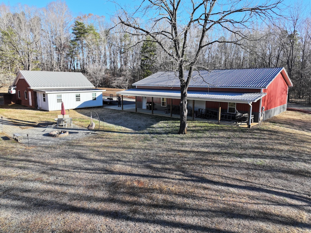 This 12.54+/- acre property is located in the countryside of Rowan County, North Carolina and offers a combination of residential living, recreational land use, and event or workspace opportunities. The property is accessed by a long gravel driveway that passes through a wooded setting before opening to the homesite and associated structures. The setting provides separation from public roads and surrounding properties while maintaining accessibility.