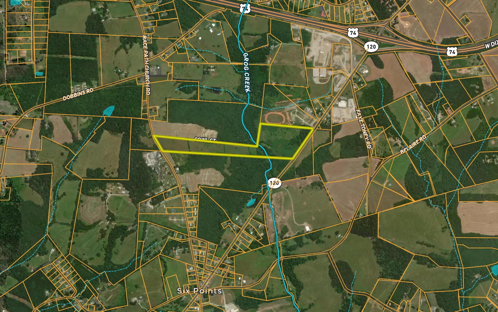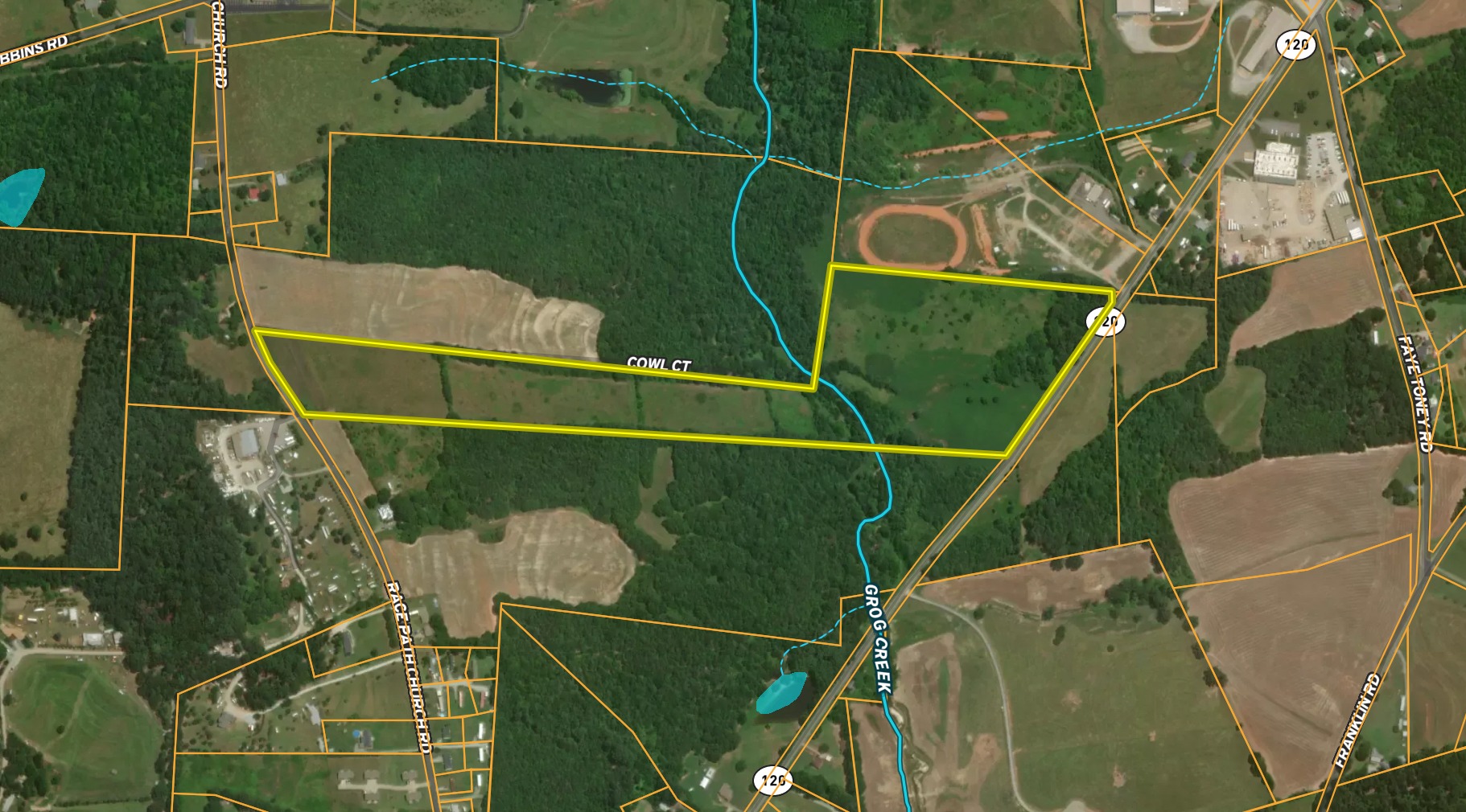 This vacant land tract offers an abundance of tillable ground suitable for farming, pasture or building. Located just half a mile from highway 74 in Mooresboro, this property can be accessed from Highway 120 and Race Path Church Road. Steady-flowing Grog Creek runs through the property. Additional acreage that is adjacent to this tract is for sale. Contact the listing agent for more details.