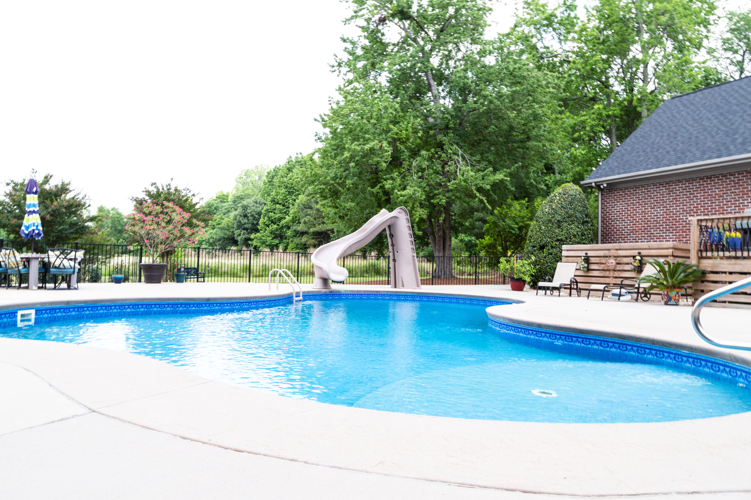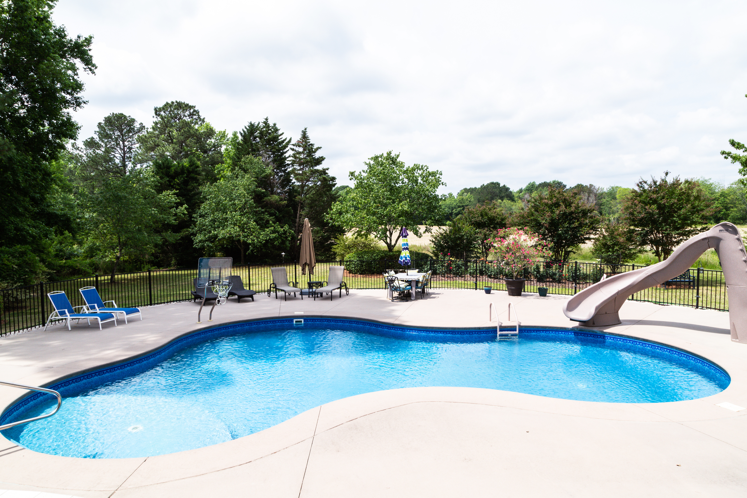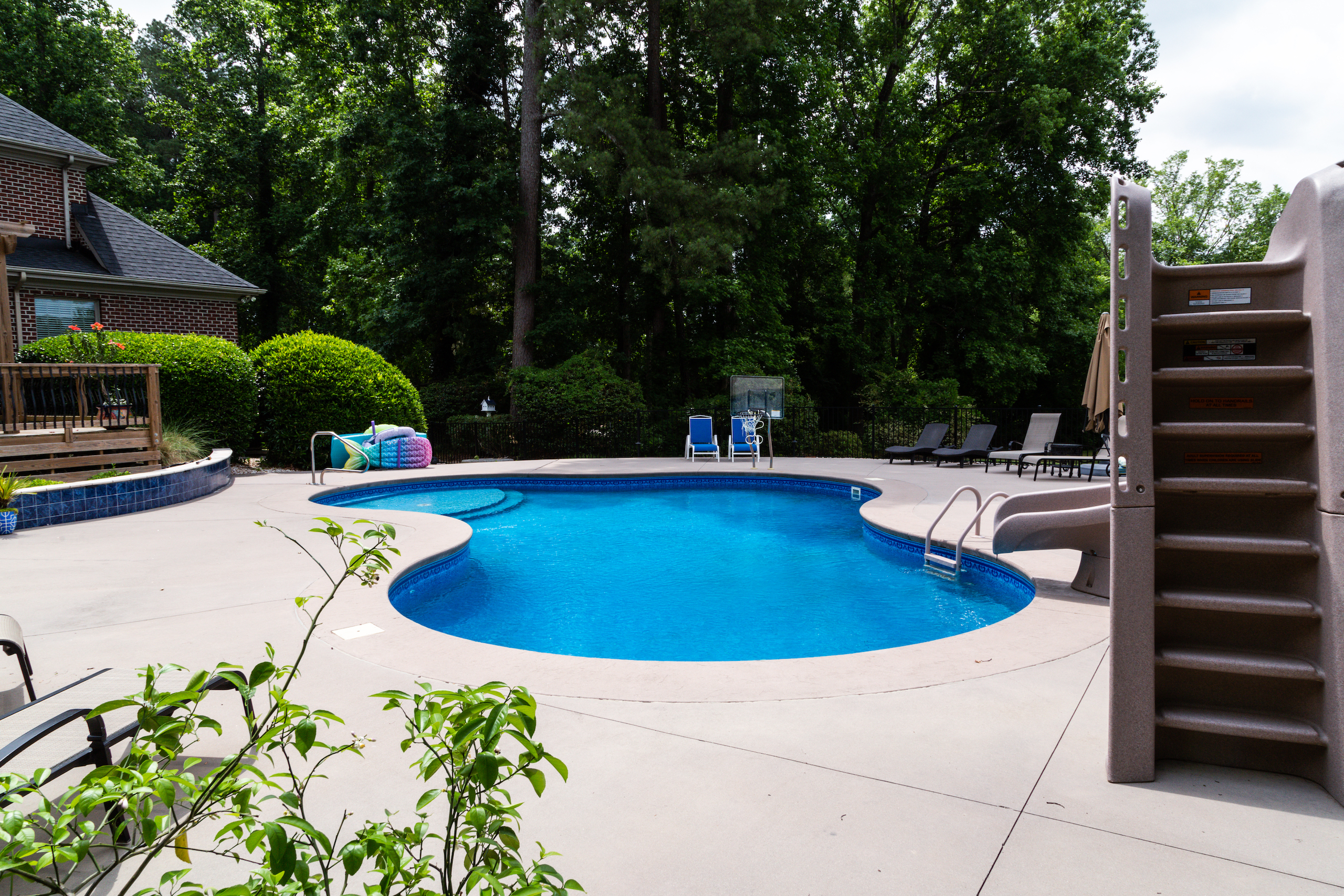 - Salt water in-ground swimming pool with concrete pool deck
