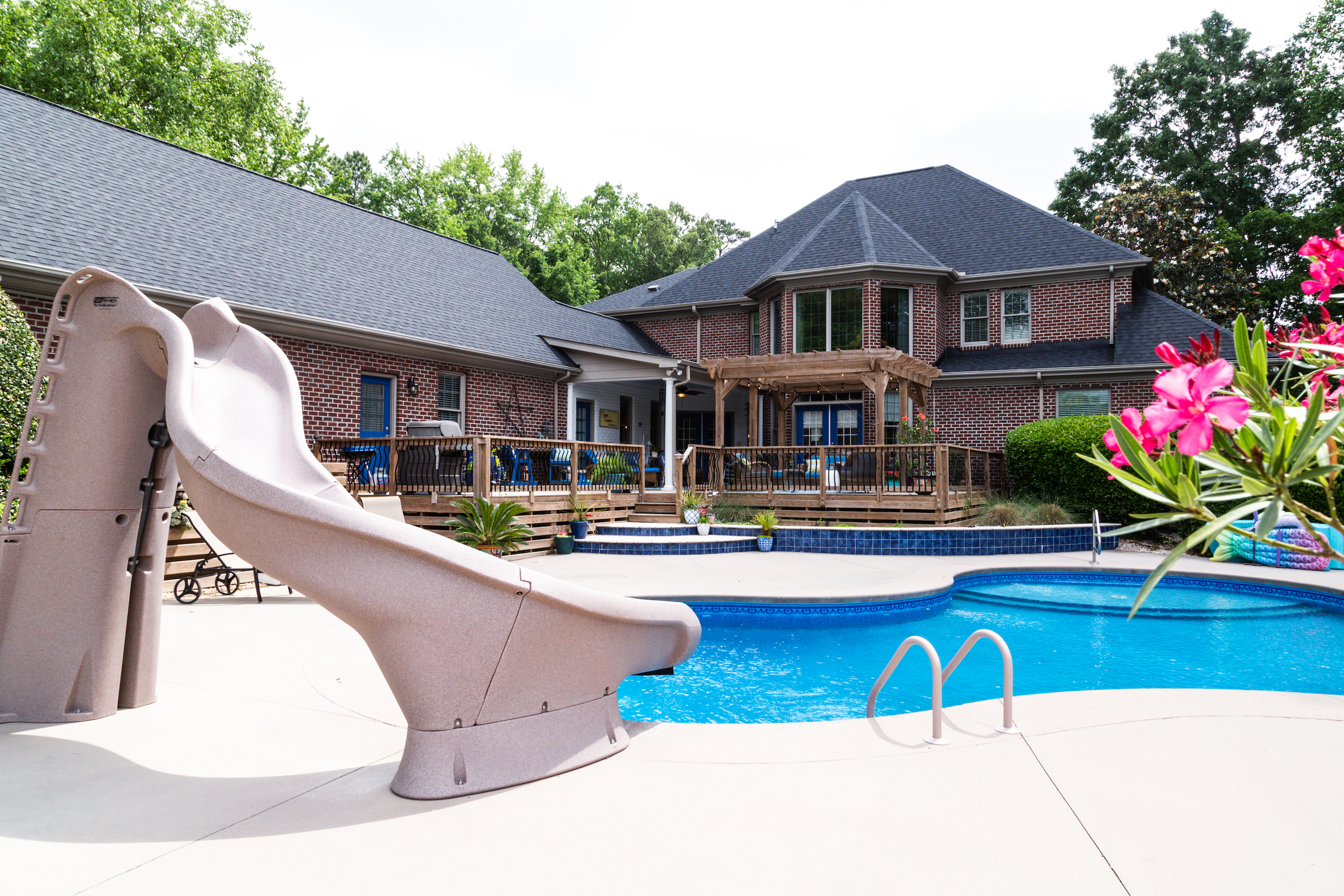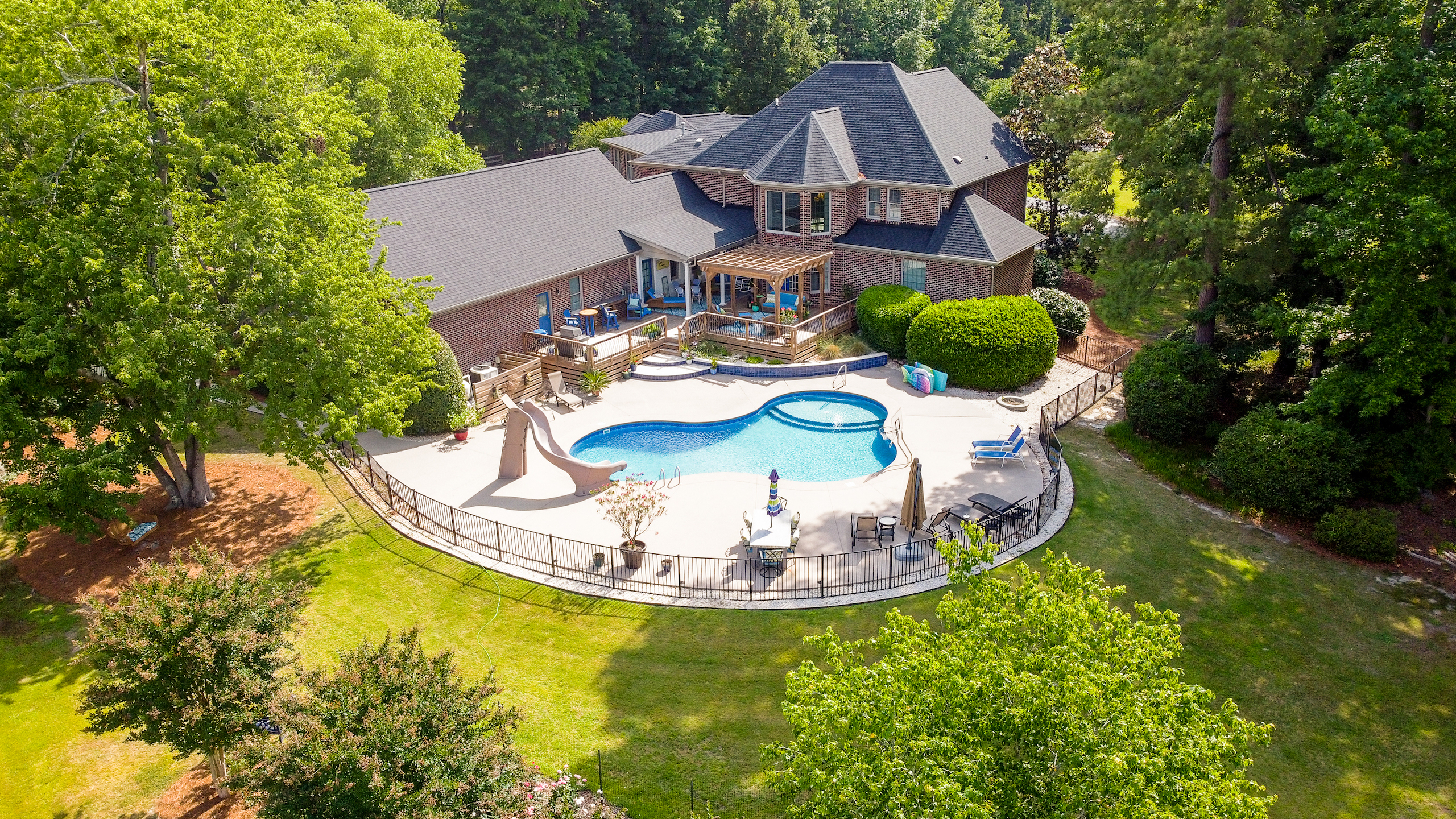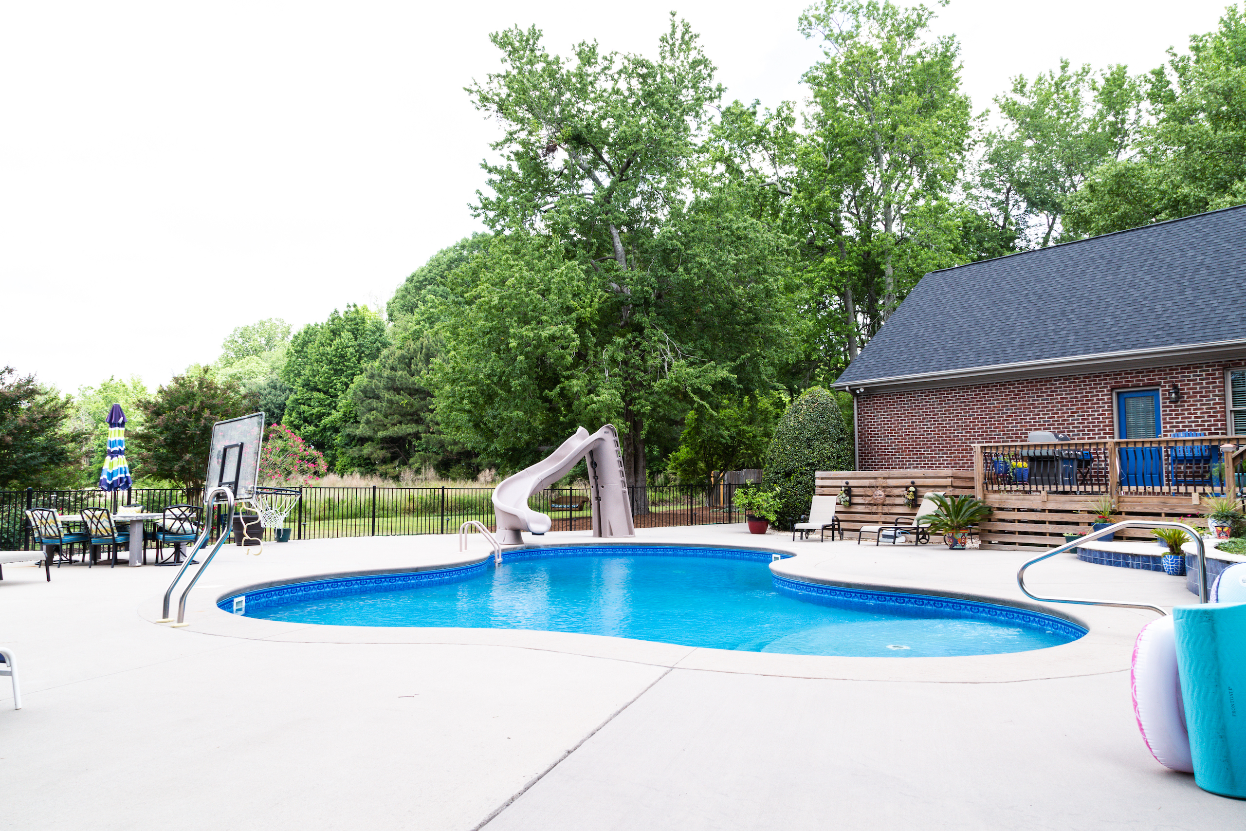 - Salt water in-ground swimming pool with concrete pool deck