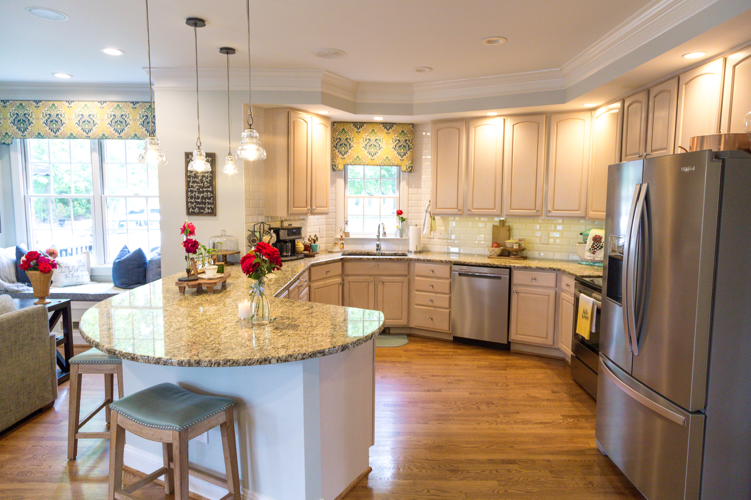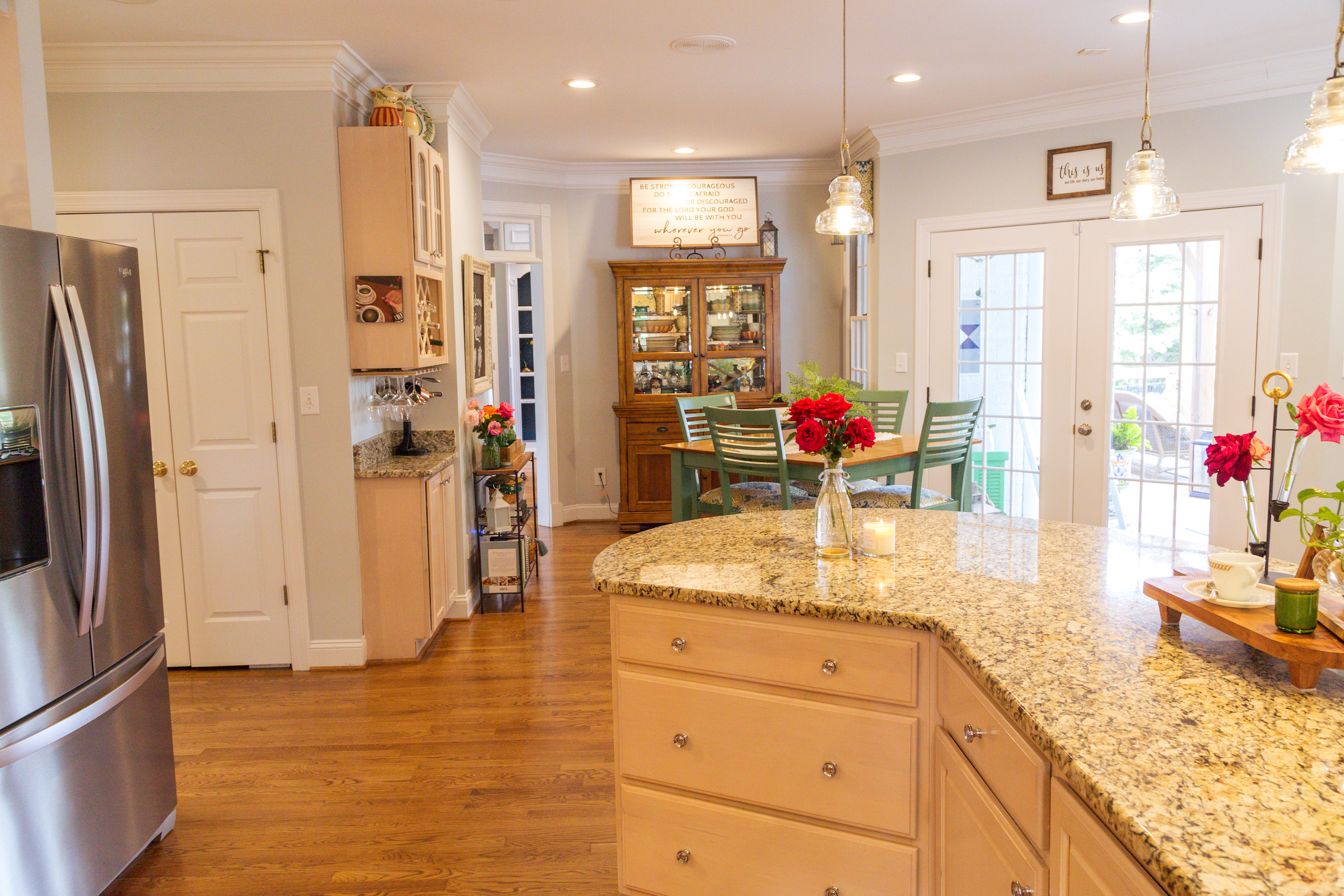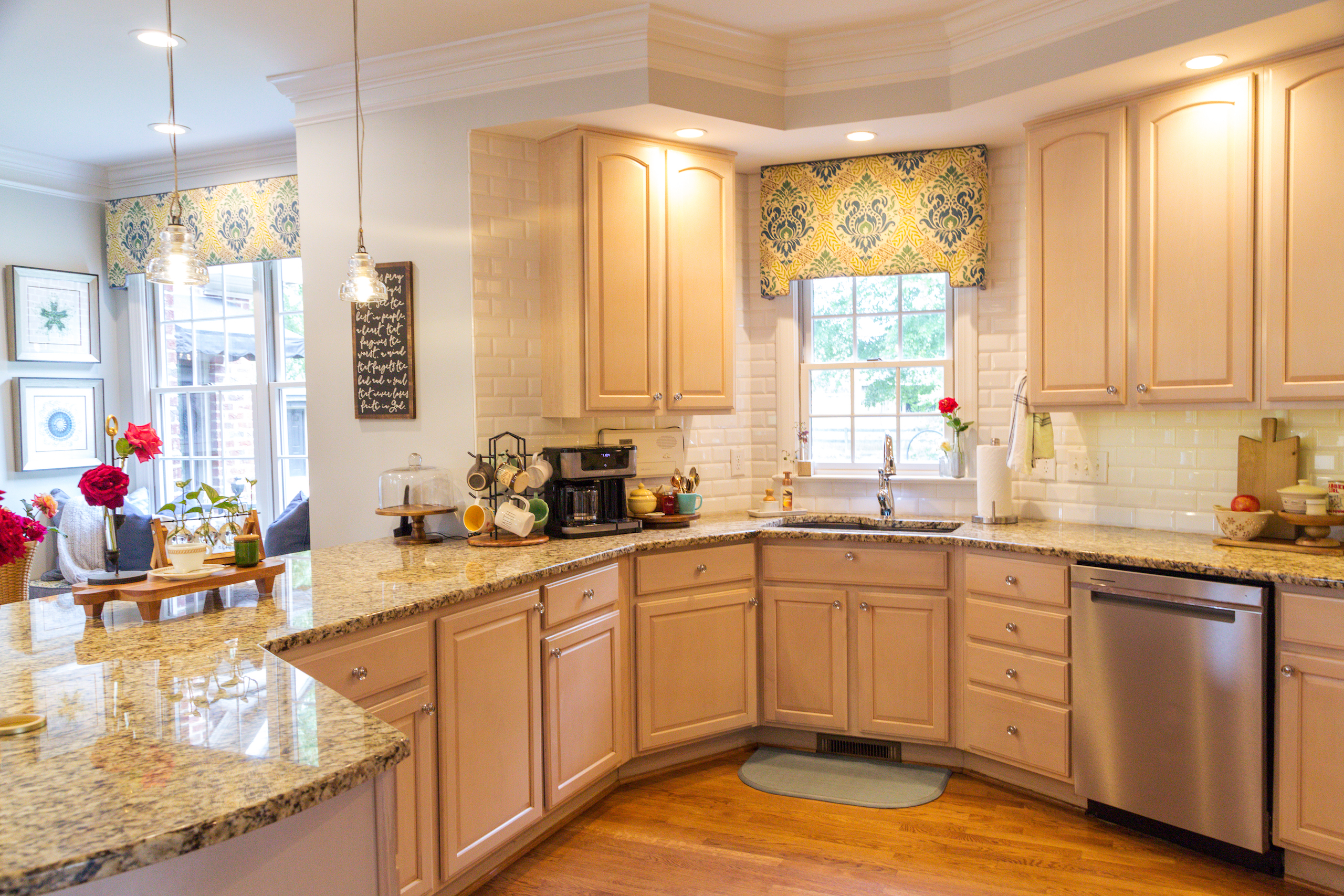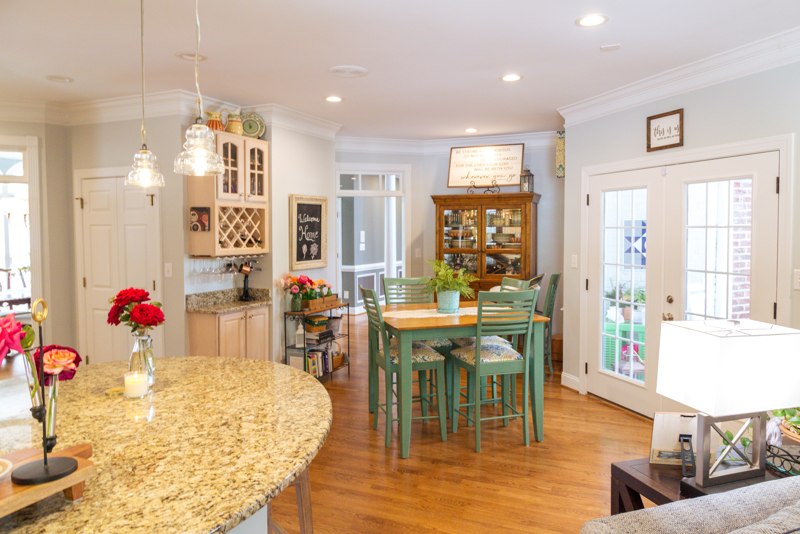 - Granite countertops in kitchen