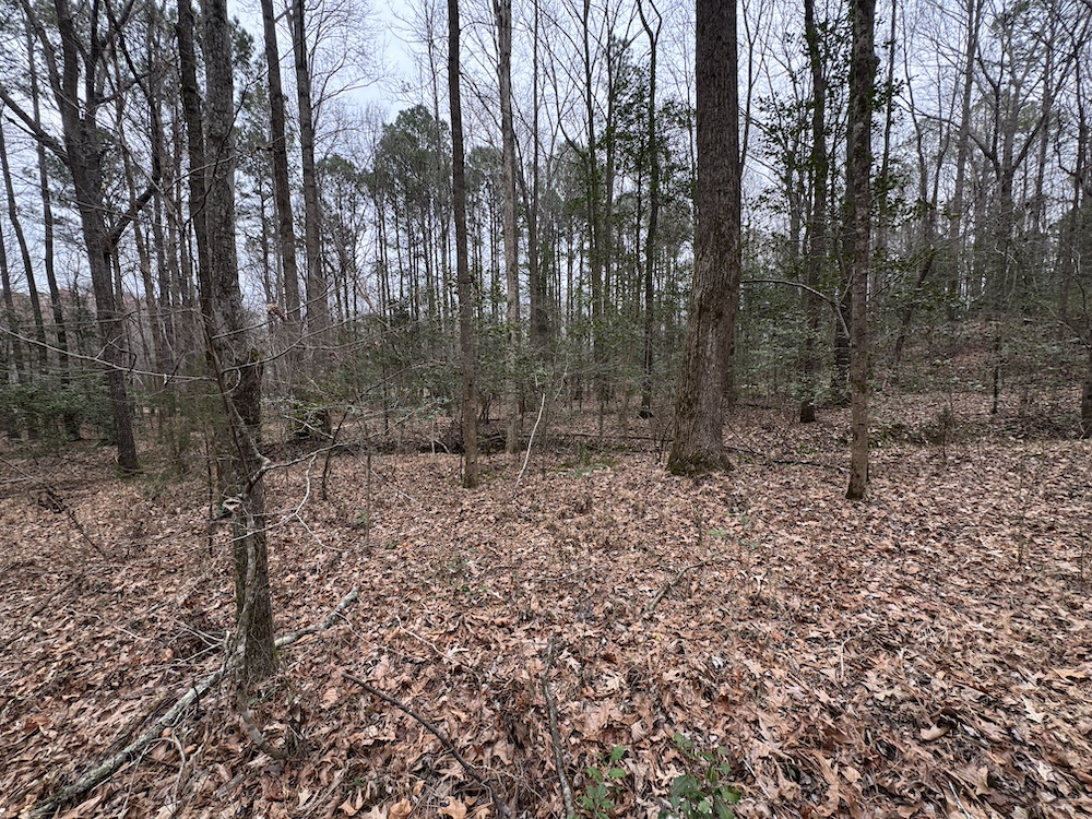 Tucked back off Eatmon Road just outside Zebulon, this 18.21-acre tract has the kind of character and versatility that is getting harder to find in Johnston County. As I walked the property in the middle of the day, a small group of deer slipped through the timber and a handful of ducks lifted off the wetland pocket along the northern boundary, confirming what the maps already suggested – this place naturally holds wildlife. The northern side is defined by a creek corridor and associated wetlands that create a protected, low‑lying habitat zone. It is a beautiful setting to explore, glass for deer at first light, or quietly ease along the edge in the afternoons while listening to the woods settle in.