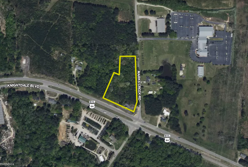 Located in Knightdale, NC, this ±3.23-acre commercial lot is highway business zoned and offers exceptional access, visibility, and development potential. The property features over 1,000 feet of road frontage along Knightdale Boulevard and Marks Creek Road, providing outstanding exposure and easy accessibility for a wide range of commercial uses. City water is available at the intersection, and public sewer is located just down the hill, allowing for a potentially straightforward gravity-flow sewer connection. The site is surrounded by new and expanding developments, positioning it perfectly within a rapidly growing commercial corridor. The Town of Knightdale is one of the fastest-growing communities in North Carolina, known for its pro-business environment, strategic location near Raleigh, and expanding residential and retail growth. With continued population increases, infrastructure improvements, and strong demand for commercial services, Knightdale offers an ideal setting for long-term investment and development. This property presents a rare opportunity to secure a highly visible commercial site in a thriving market with strong future upside.