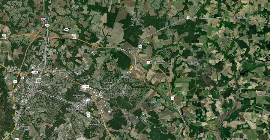 With county water lines running adjacent to Highway 13, the property provides the potential for additional water access, opening doors to further development or business ventures. Its proximity to Goldsboro city limits—merely 2,000 feet away—and an annexed property within the Goldsboro ETJ, less than 1,500 feet distant, offers promising possibilities for expansion or rezoning.