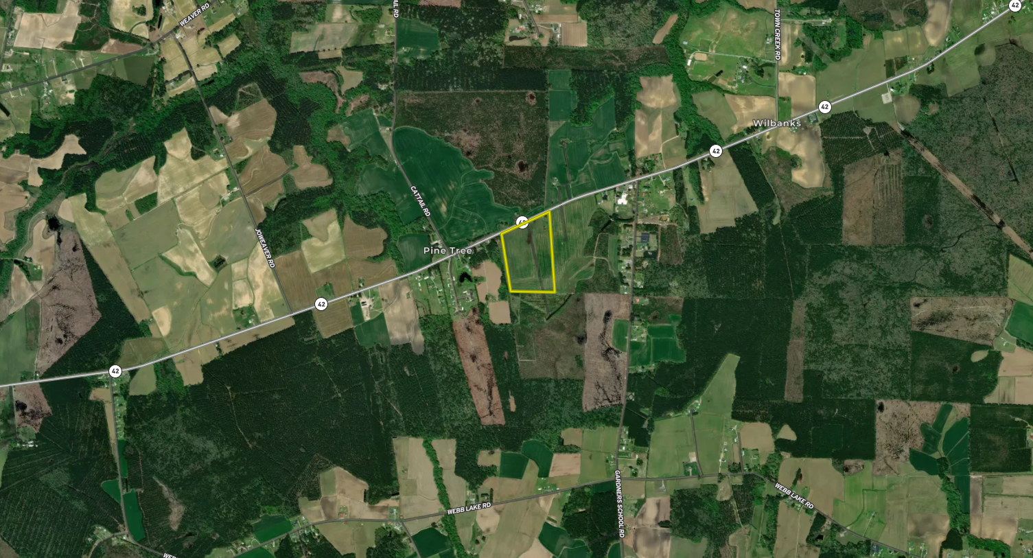 Located just minutes North of Wilson and road front on Highway 42, this farm offers almost 100% tillable, flat, and level ground. Currently planted in tobacco and soybean mix, this soil has great crop yield potential and appears septic suitable for a small development or multiple homes. (per USGS soils report) Soils would need to be tested to confirm septic potential. With over 1,100 feet of road front, there is the potential for a multi-entrance community. There is also 3-phase power at the road, county water at the road and the Gardener’s Elementary School is a rock’s throw away and within eyesight of this parcel. Mostly level and 100% open ground, this site would offer an easy start for a builder or custom home. Give us a call today to schedule your private showing.