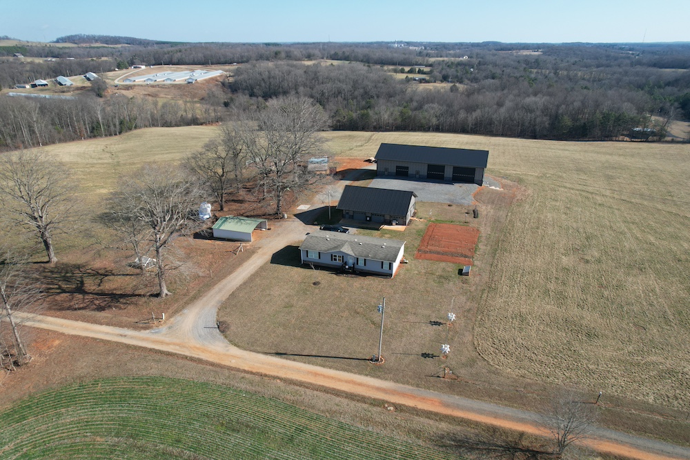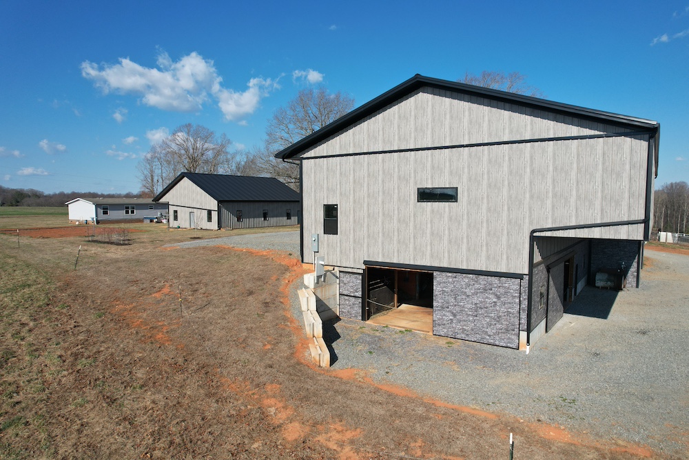 The land includes 28–30 acres of fully fenced pasture, ideal for horses or livestock, along with multiple well-built agricultural and shop structures. The main agricultural barn offers 6 stalls with room to expand to 7, a wash area, a tack room, and a 38x55 horse stall area with a 55x12 overhang. A built-in BulkTech feeder adds efficiency for livestock operations. All agricultural structures have passed Yadkin Electrical inspection.